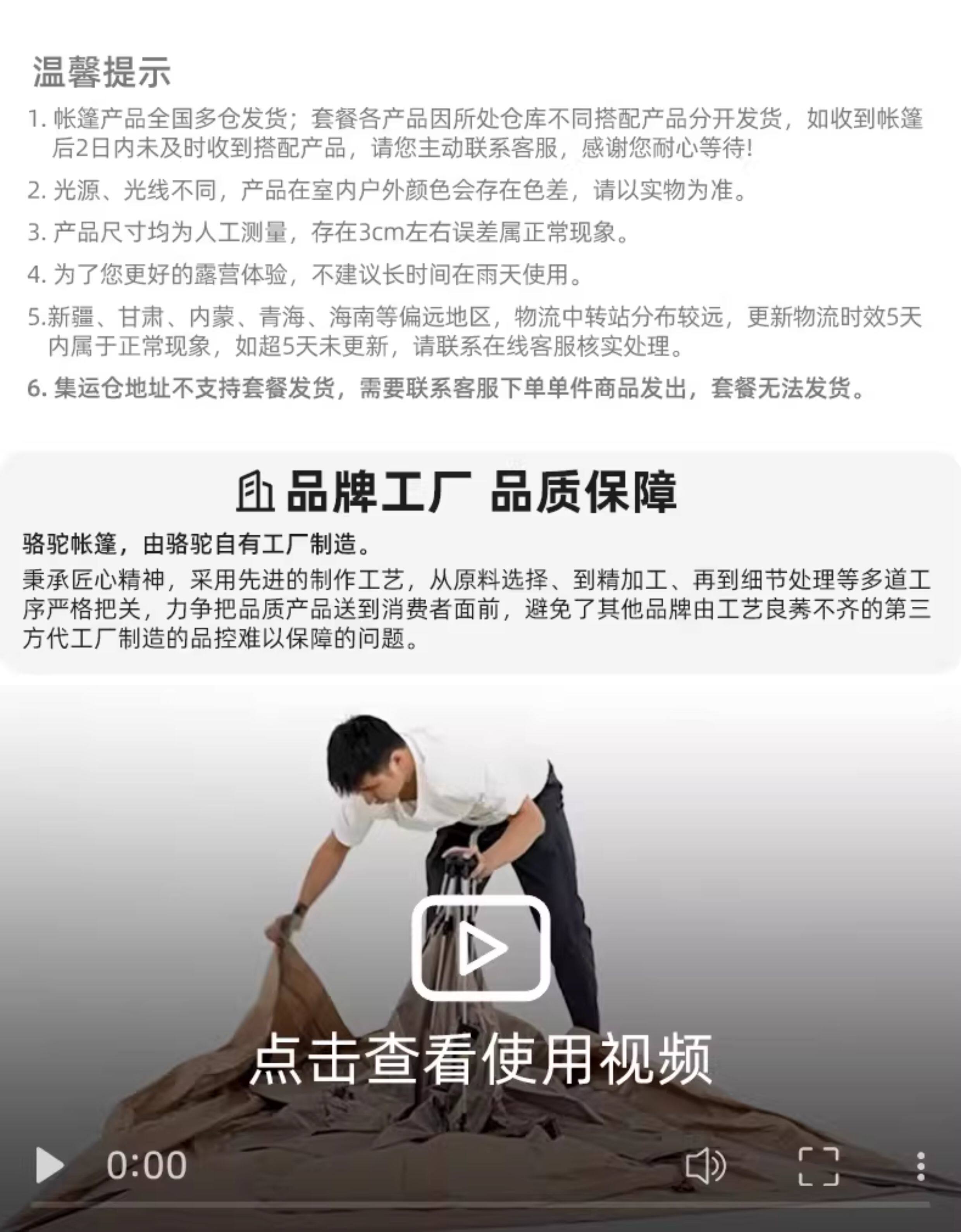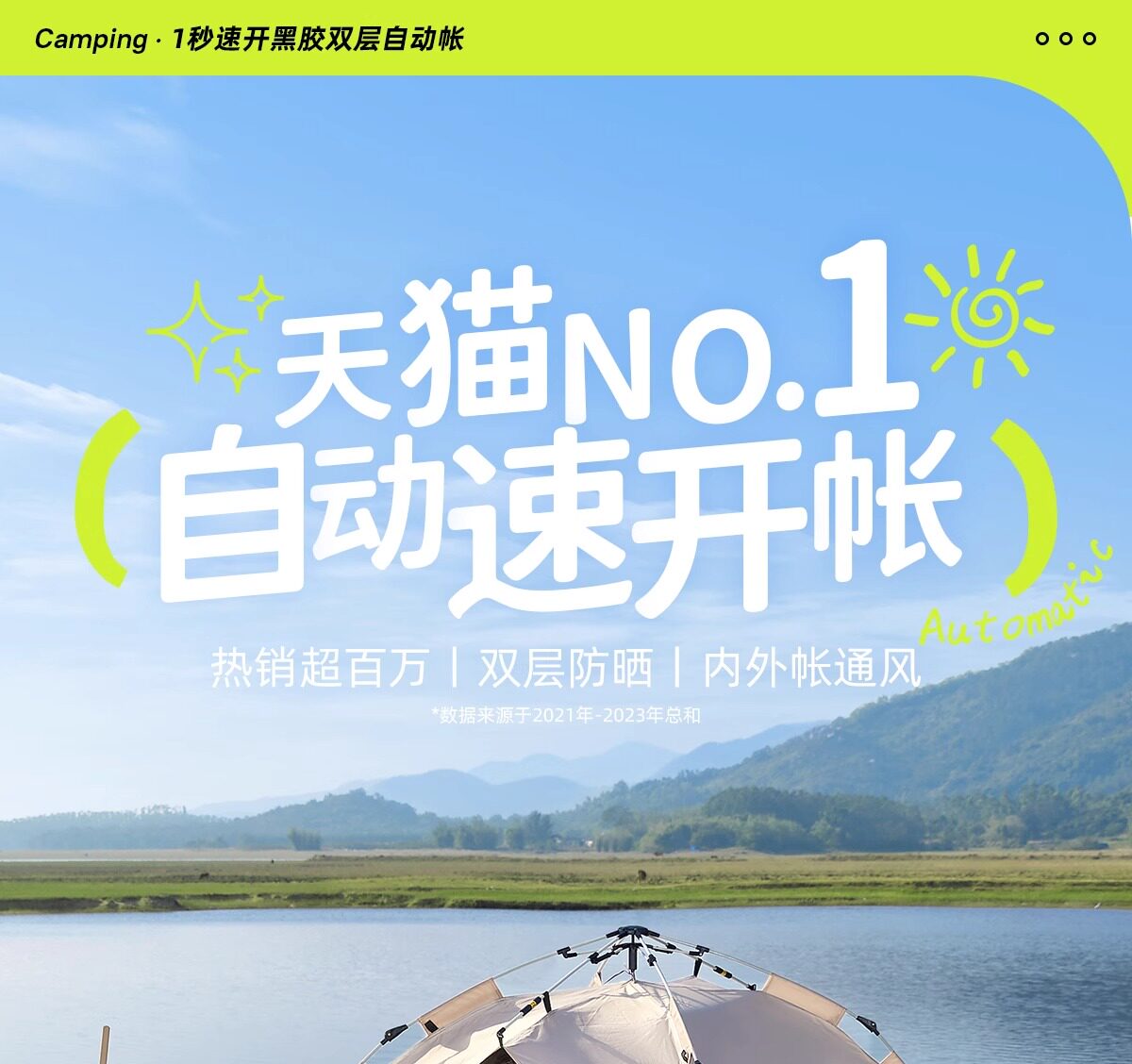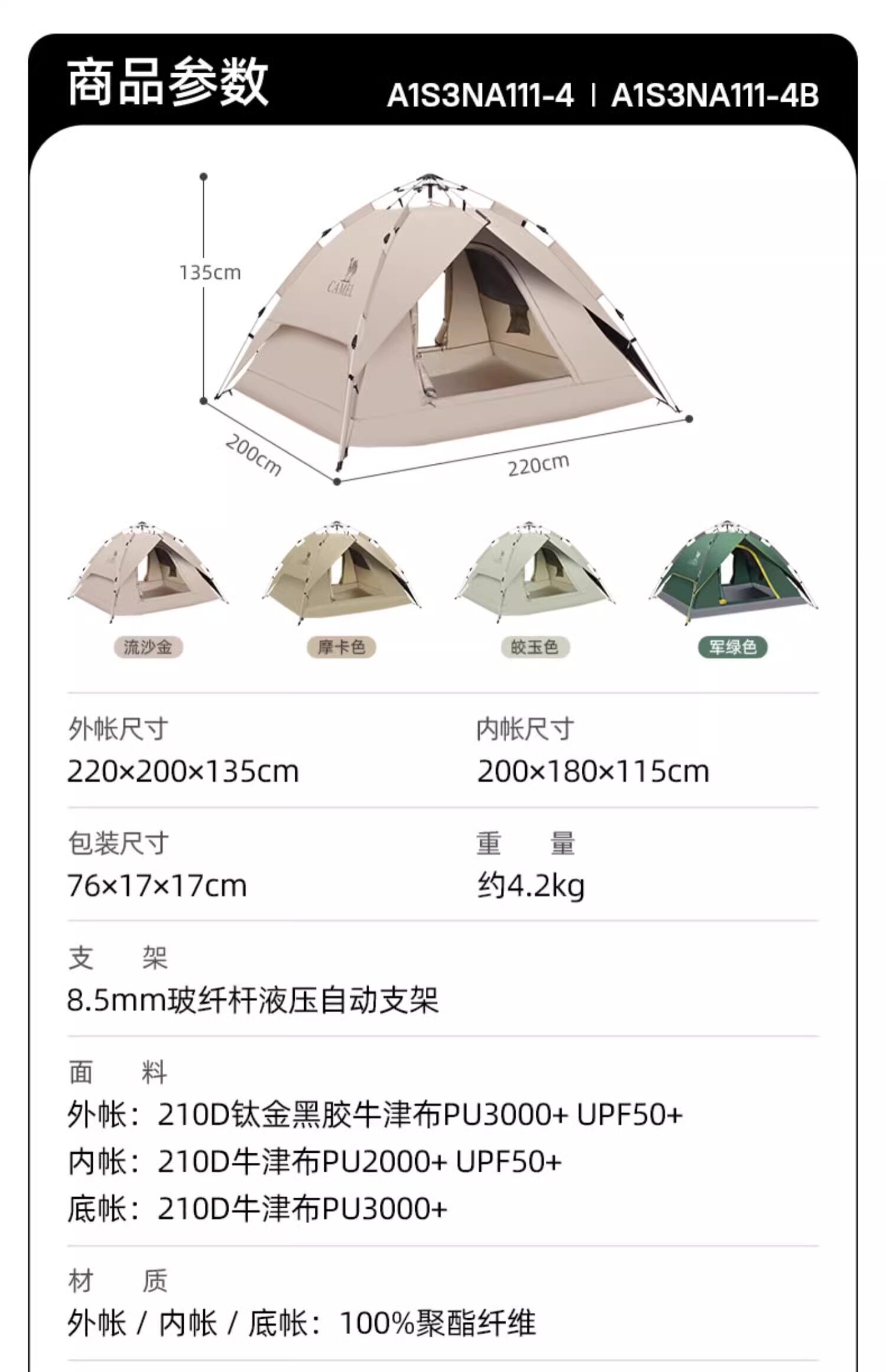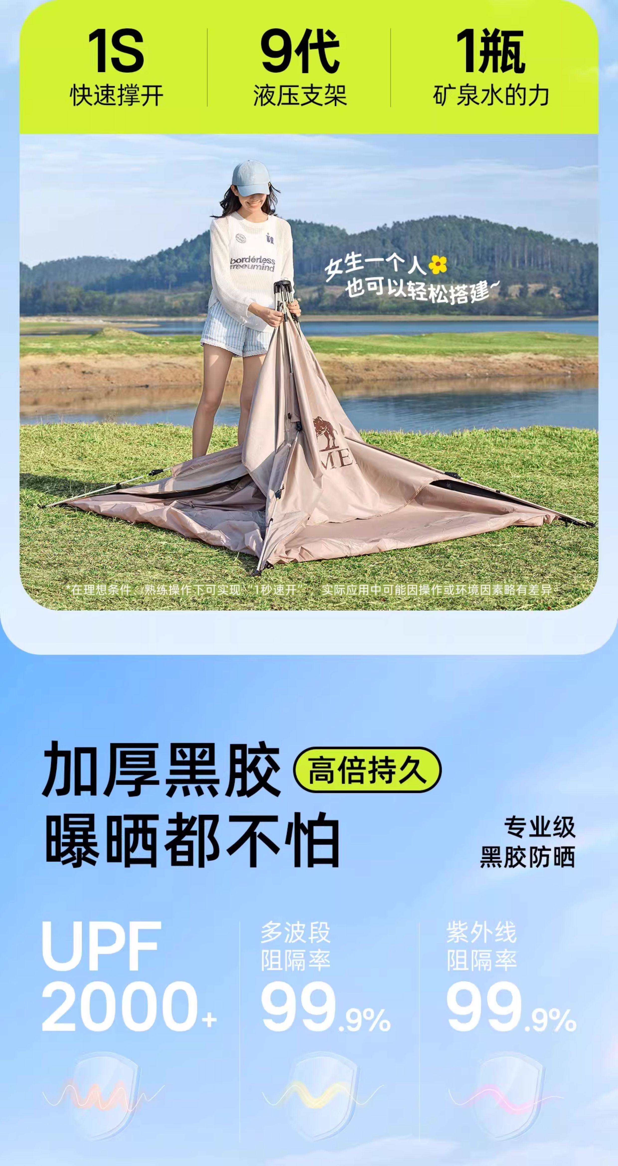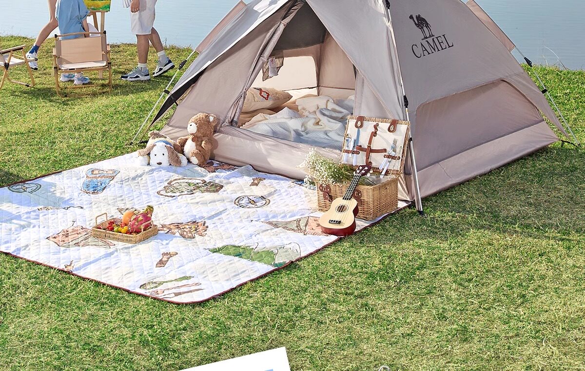 駱駝黑膠防曬帳篷全自動速開可攜式公園野餐戶外過夜防雨露營裝備