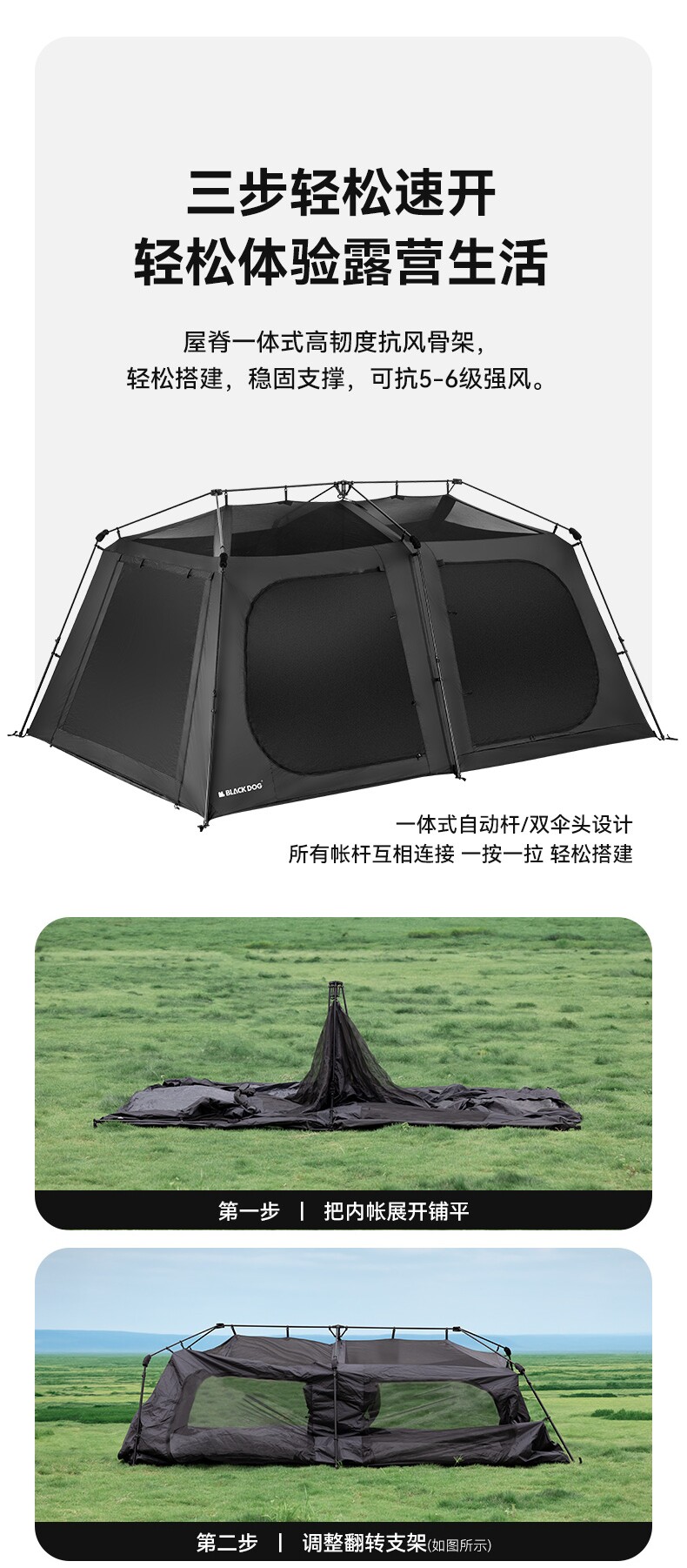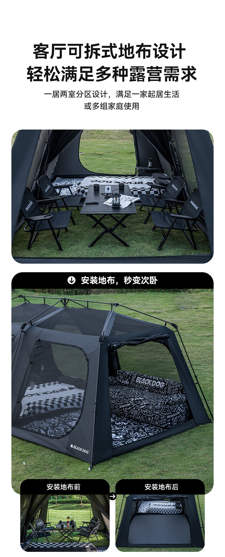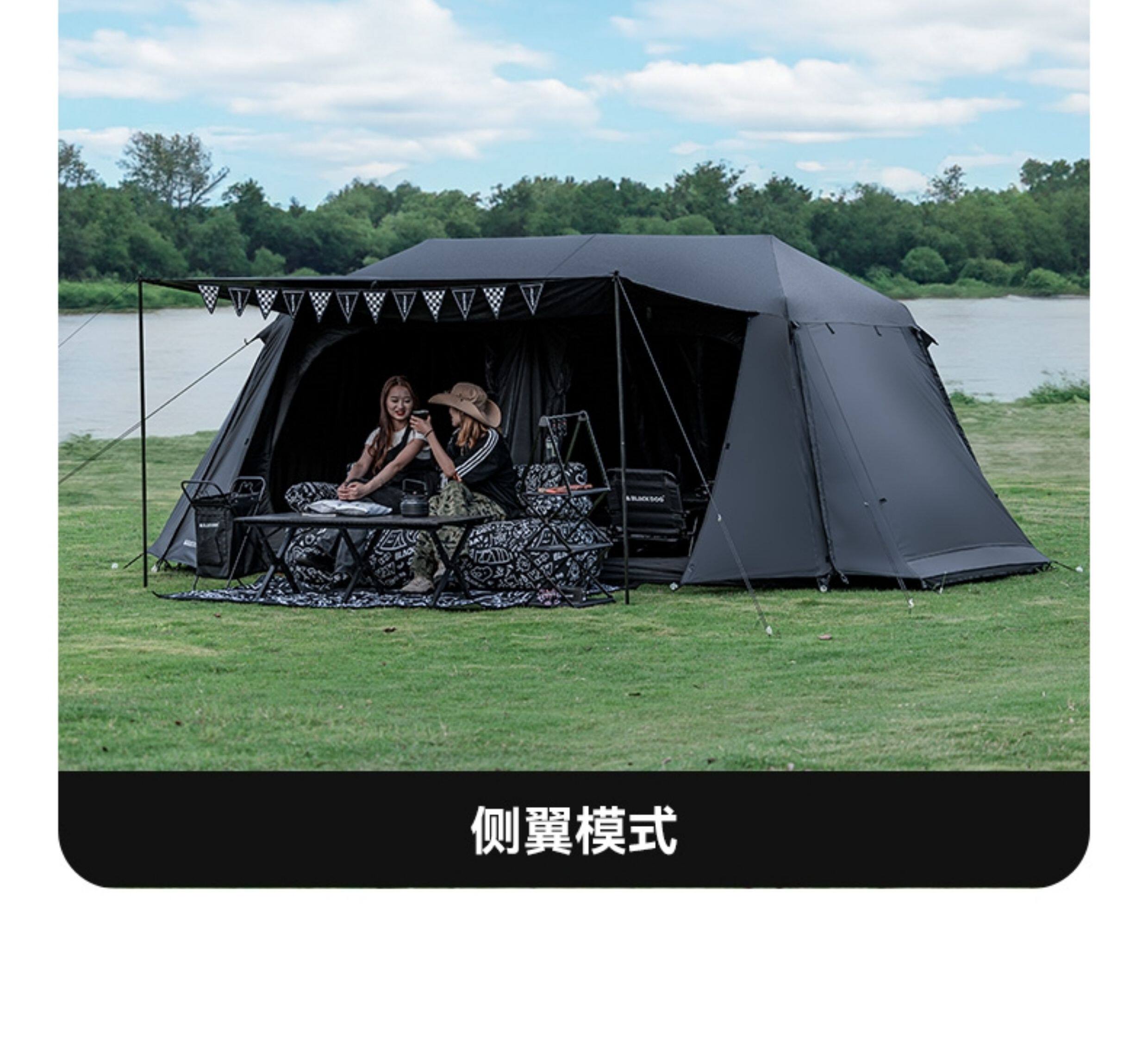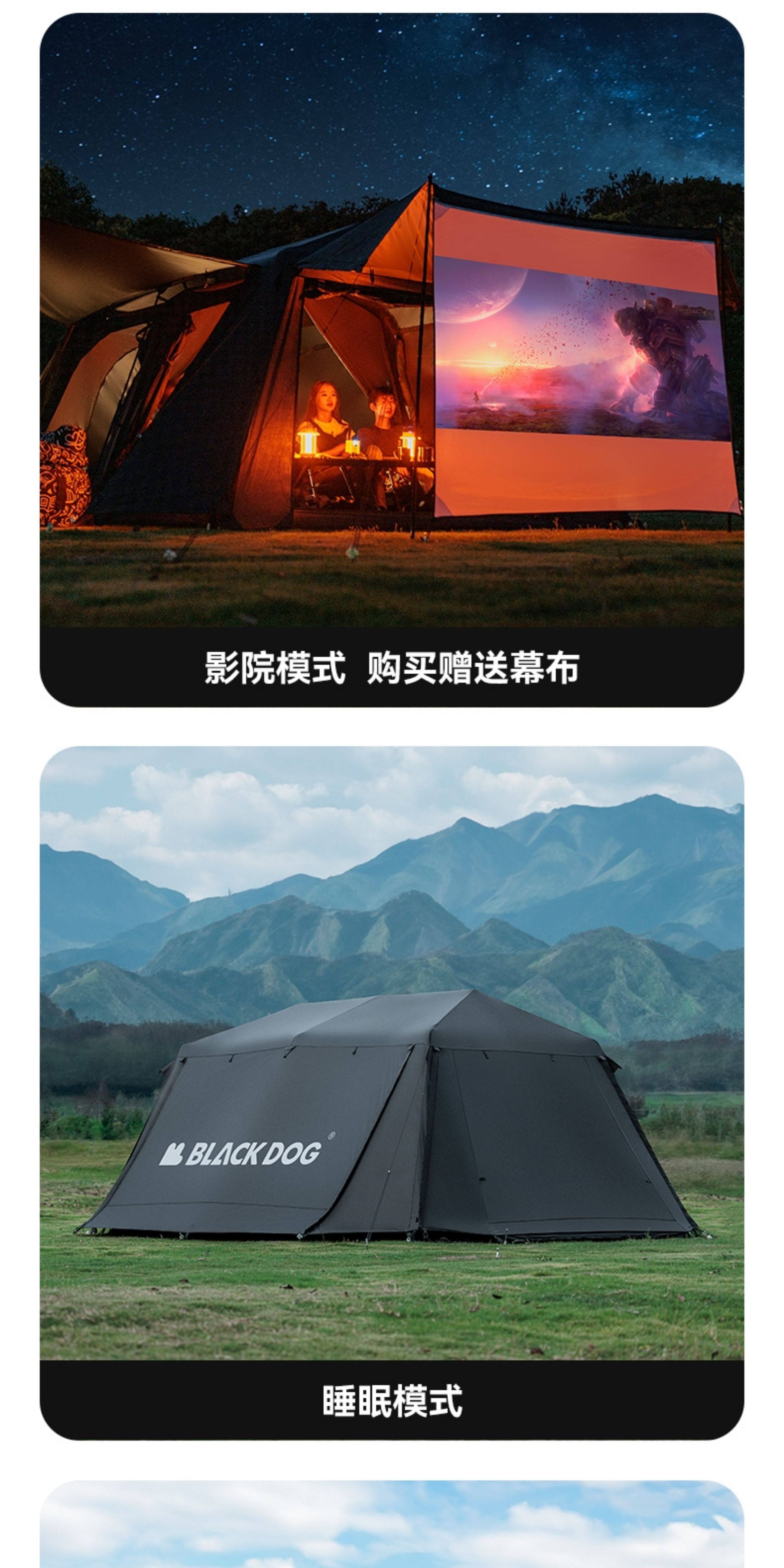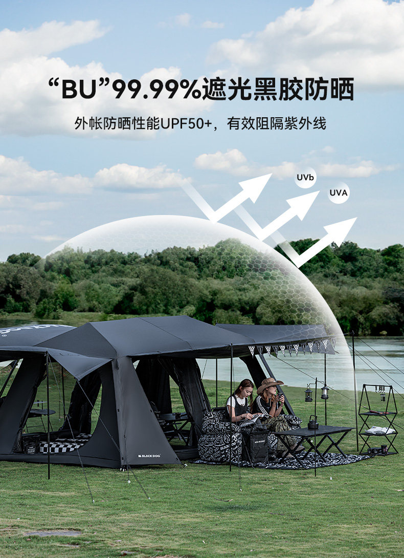 BLACKDOG黑狗星逐自動速開兩室四廳房式戶外露營防曬折疊黑膠帳篷