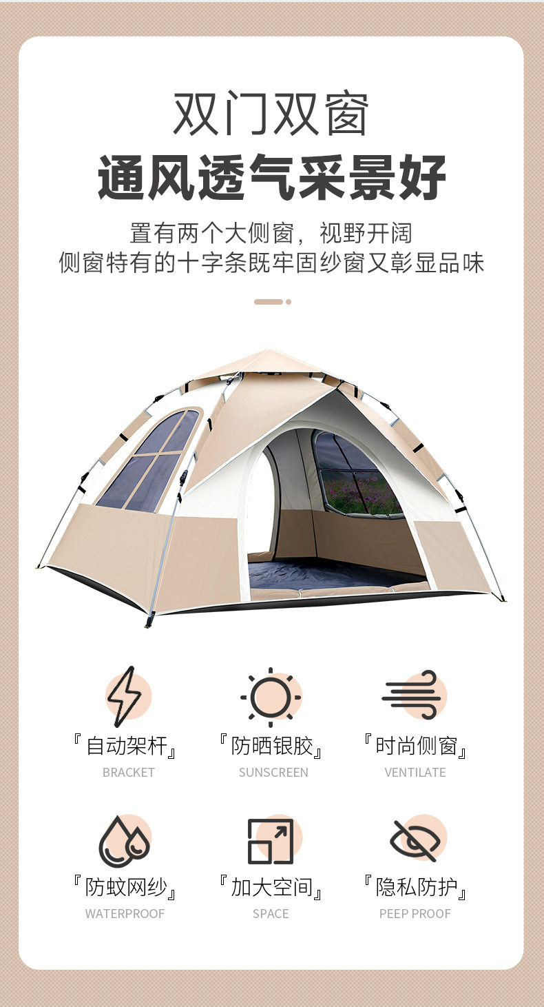 春遊可攜式帳篷戶外露營折疊全自動速開野營雙人雙開門防雨免搭建