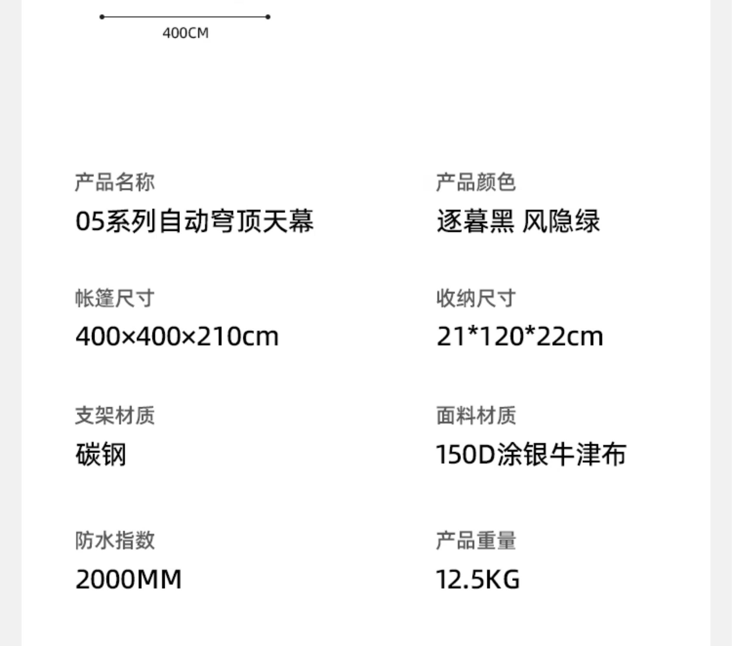 | 展開尺寸(長*寬*高 cm) | 400*400*210cm |