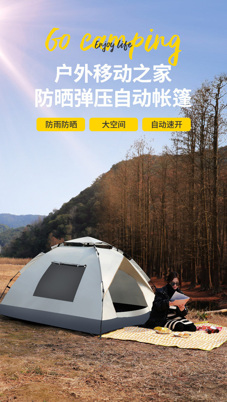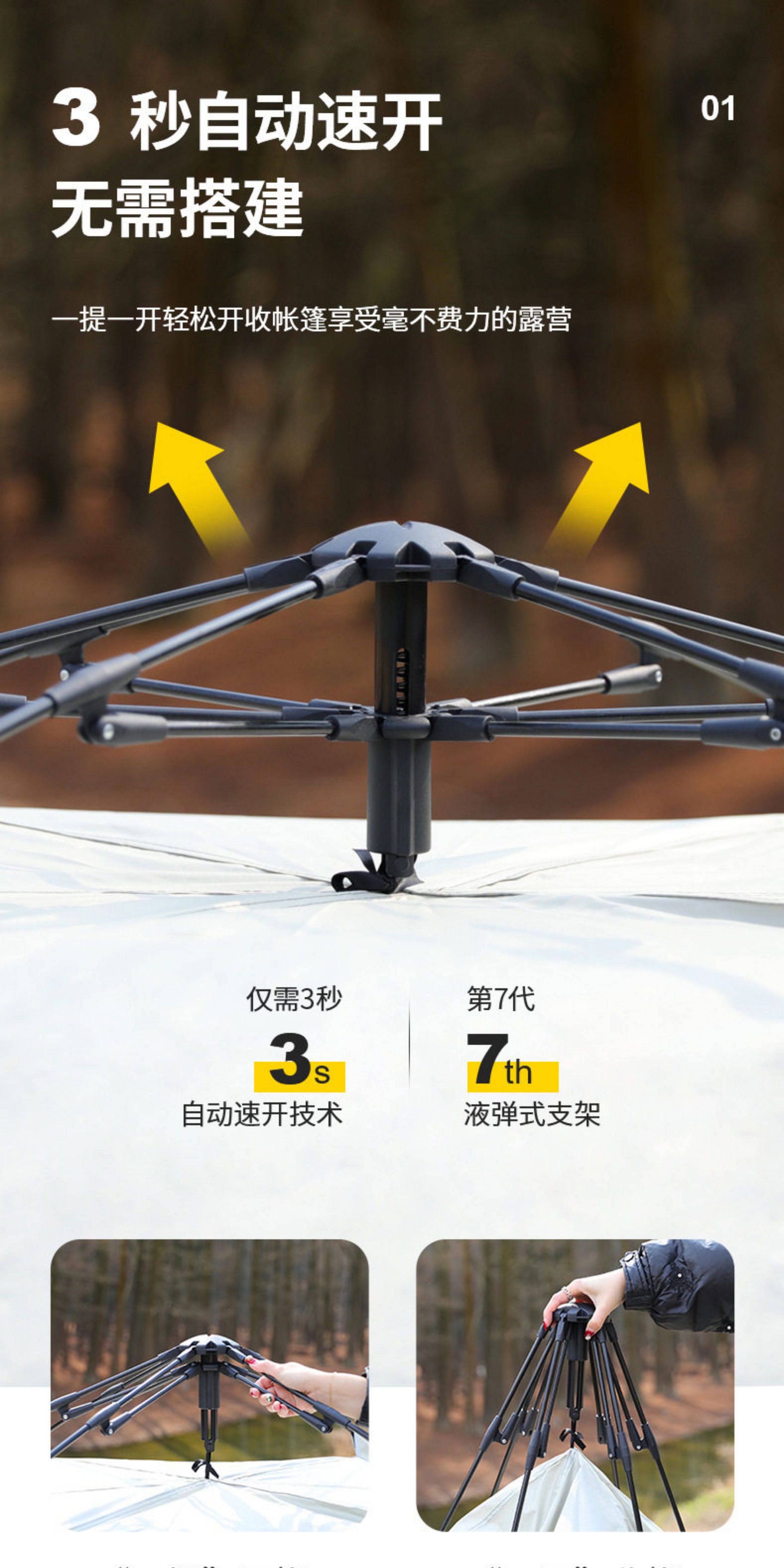 公園露營一鍵開合速開自動帳篷戶外3-4人防曬防蟲雙人單人成人
