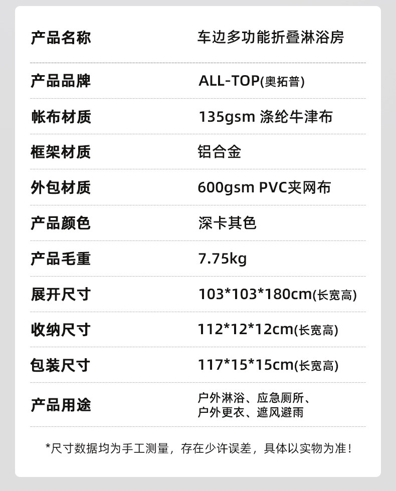 ALLTOP奧拓普戶外車邊淋浴帳車用洗澡帳篷速開更衣間露營換衣房