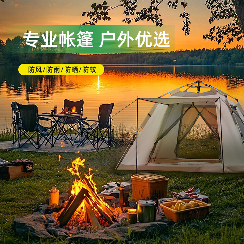 戶外帳篷可攜式全自動速開折曡野營過夜加厚禦寒防曬露營裝備全套