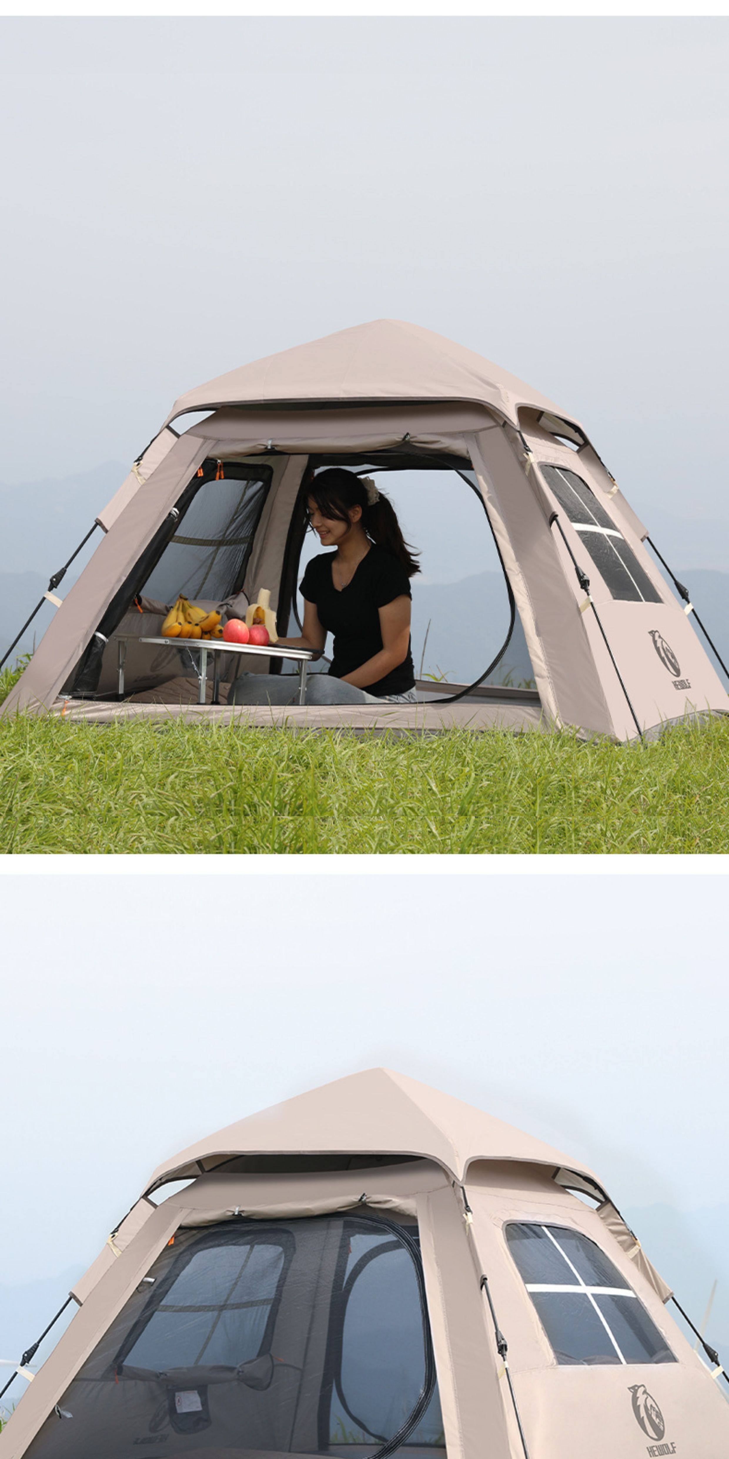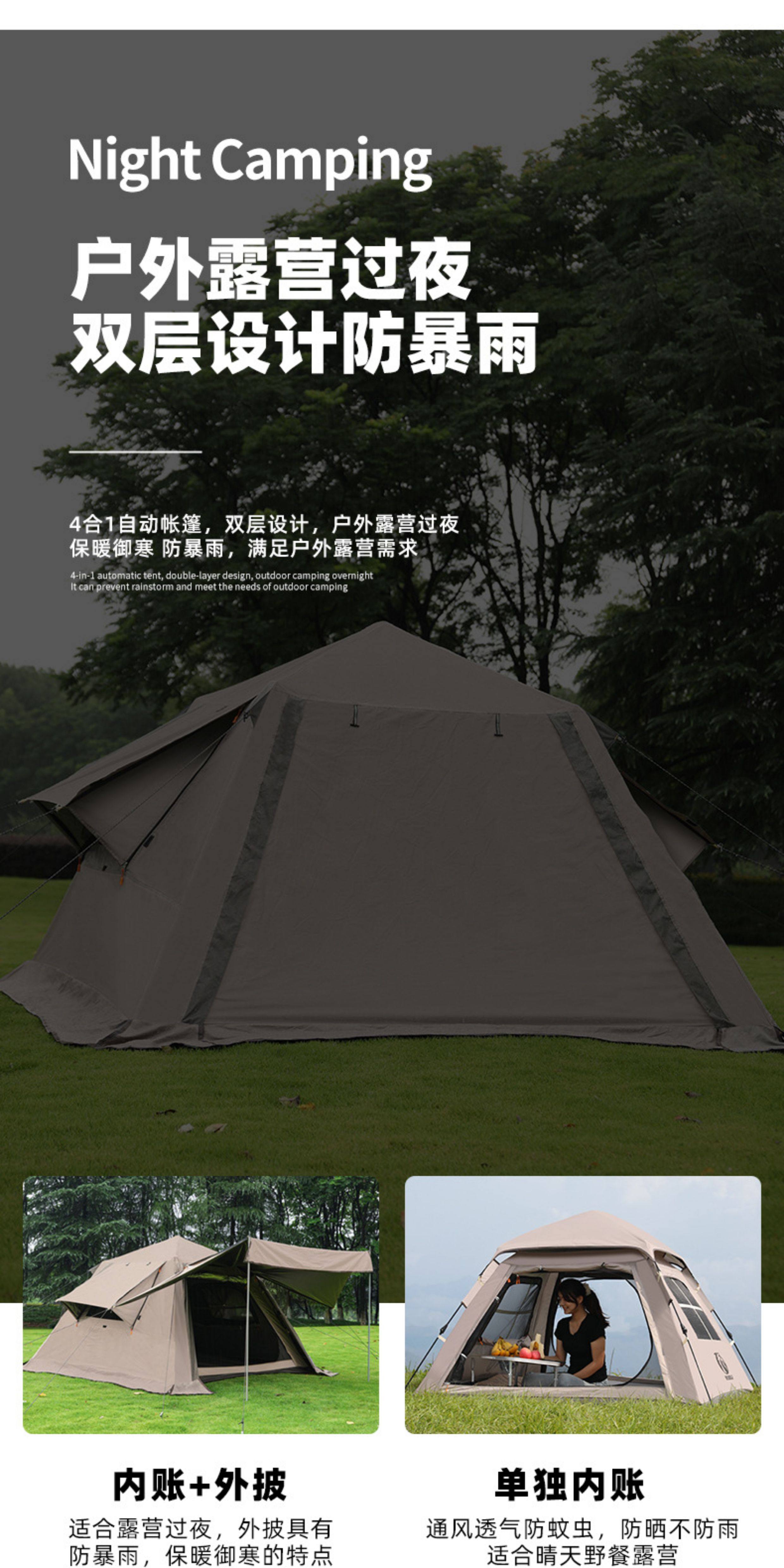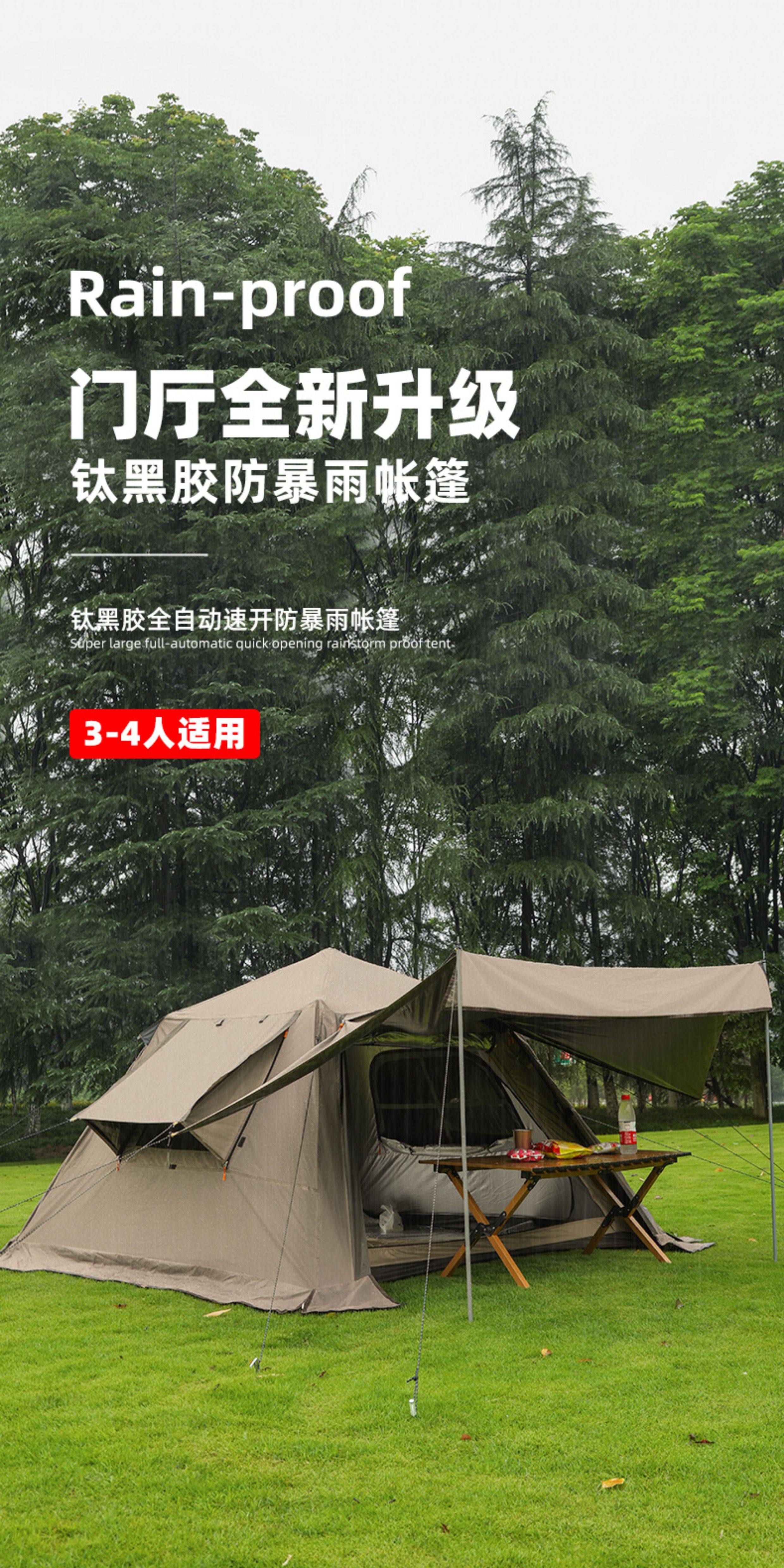 公狼戶外露營全自動速開雙層防暴雨加厚黑膠防曬野營四季天幕帳篷