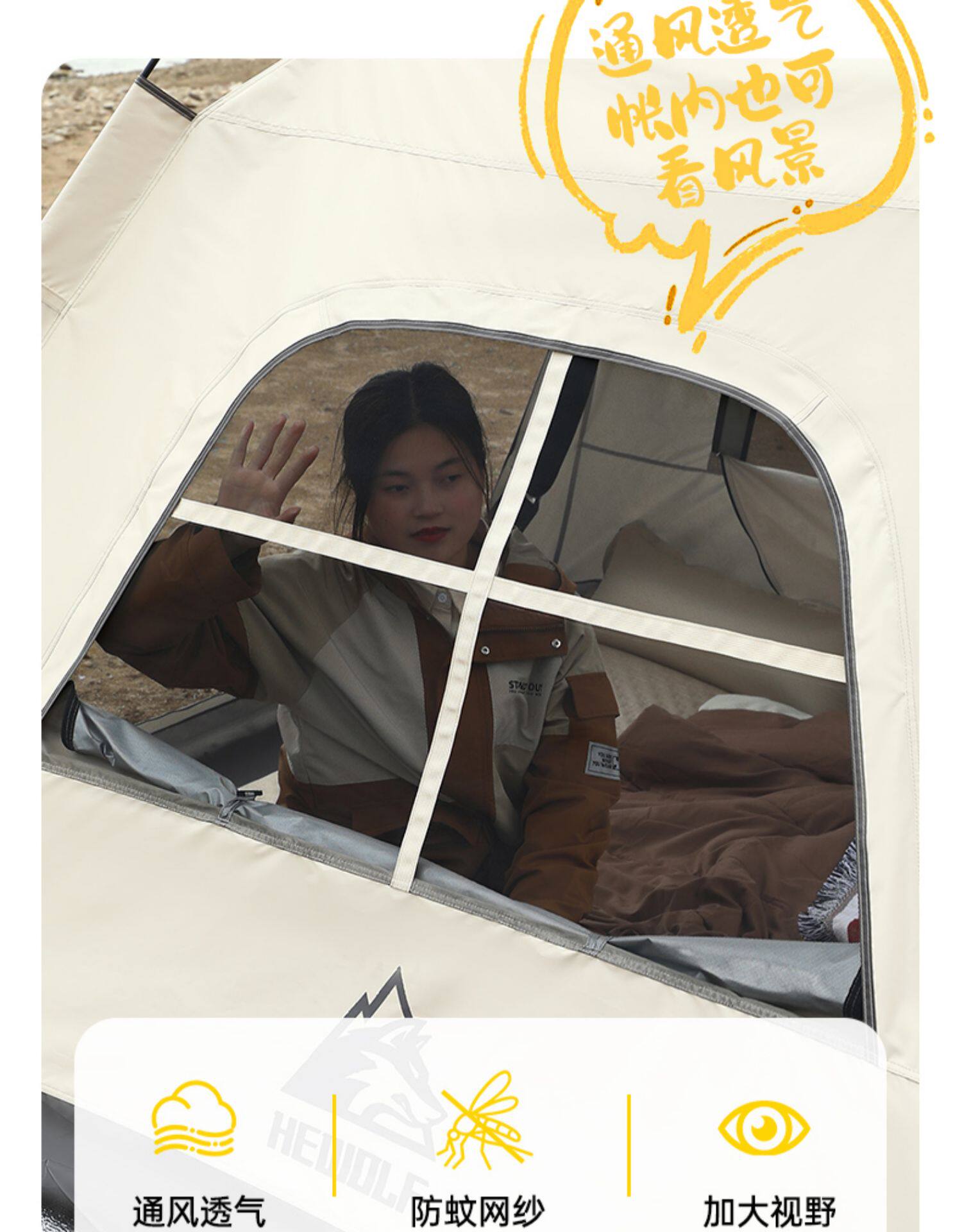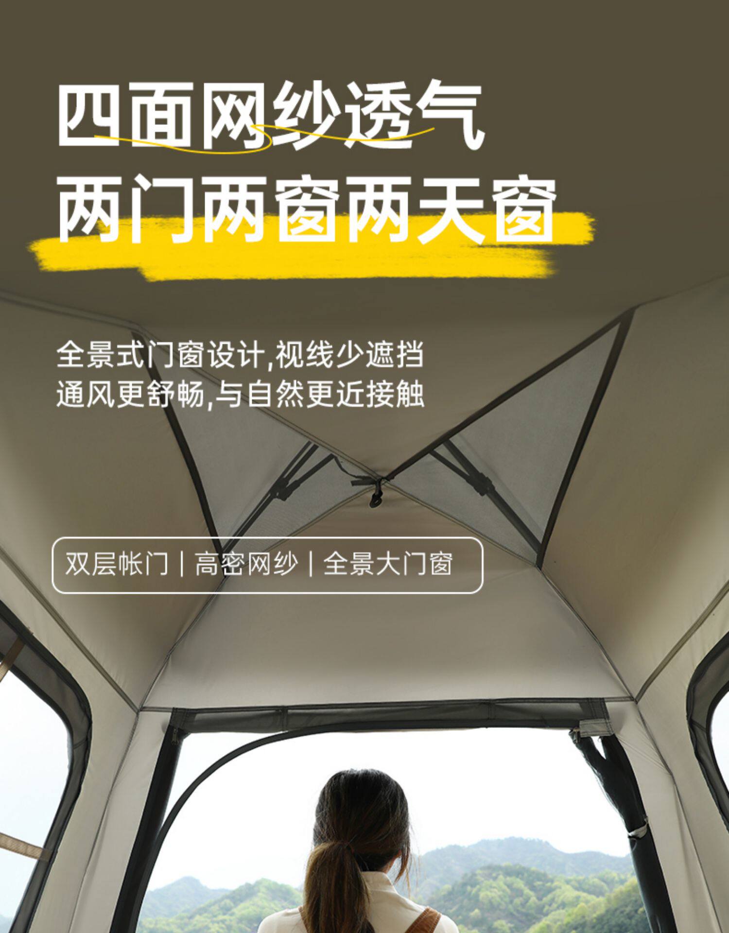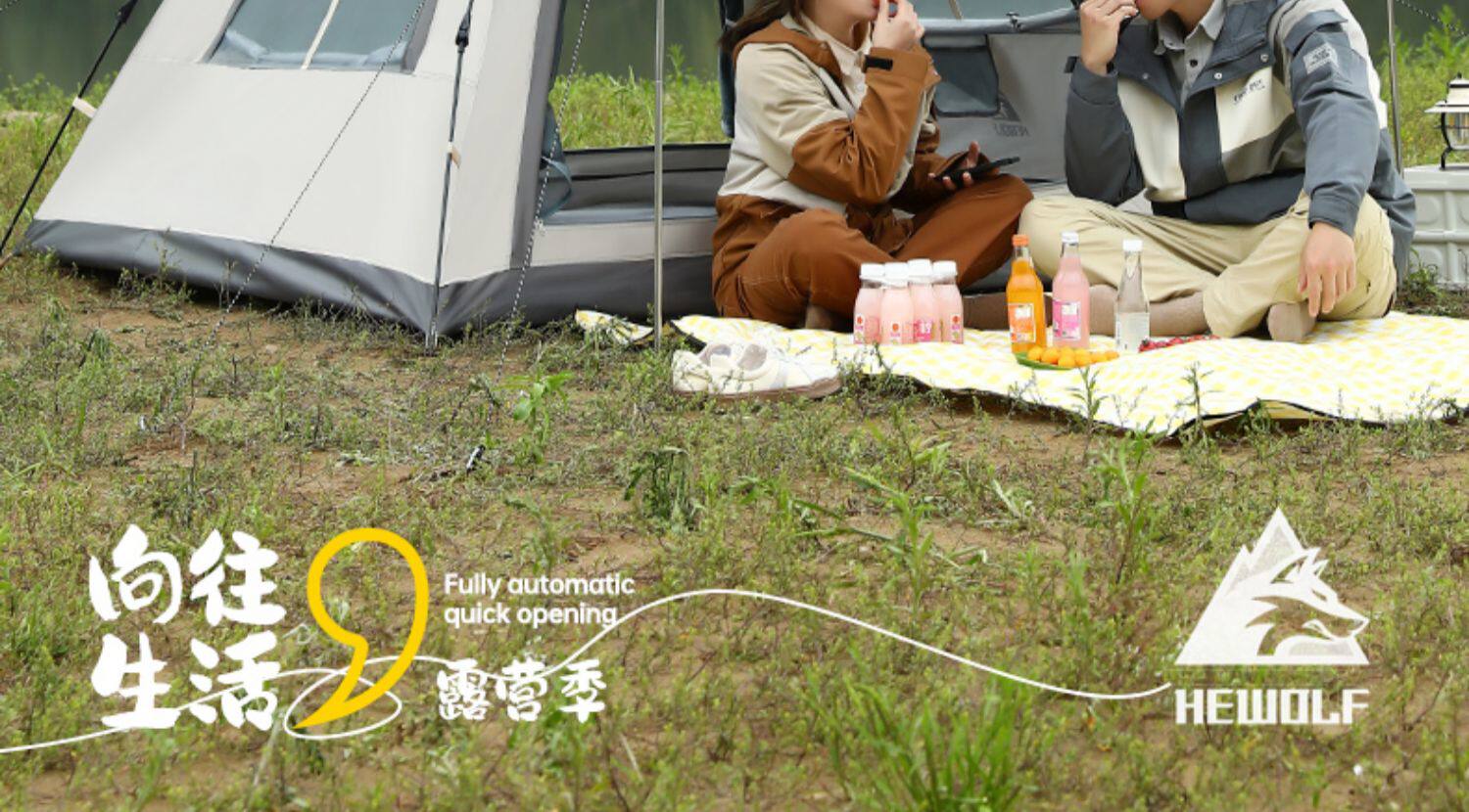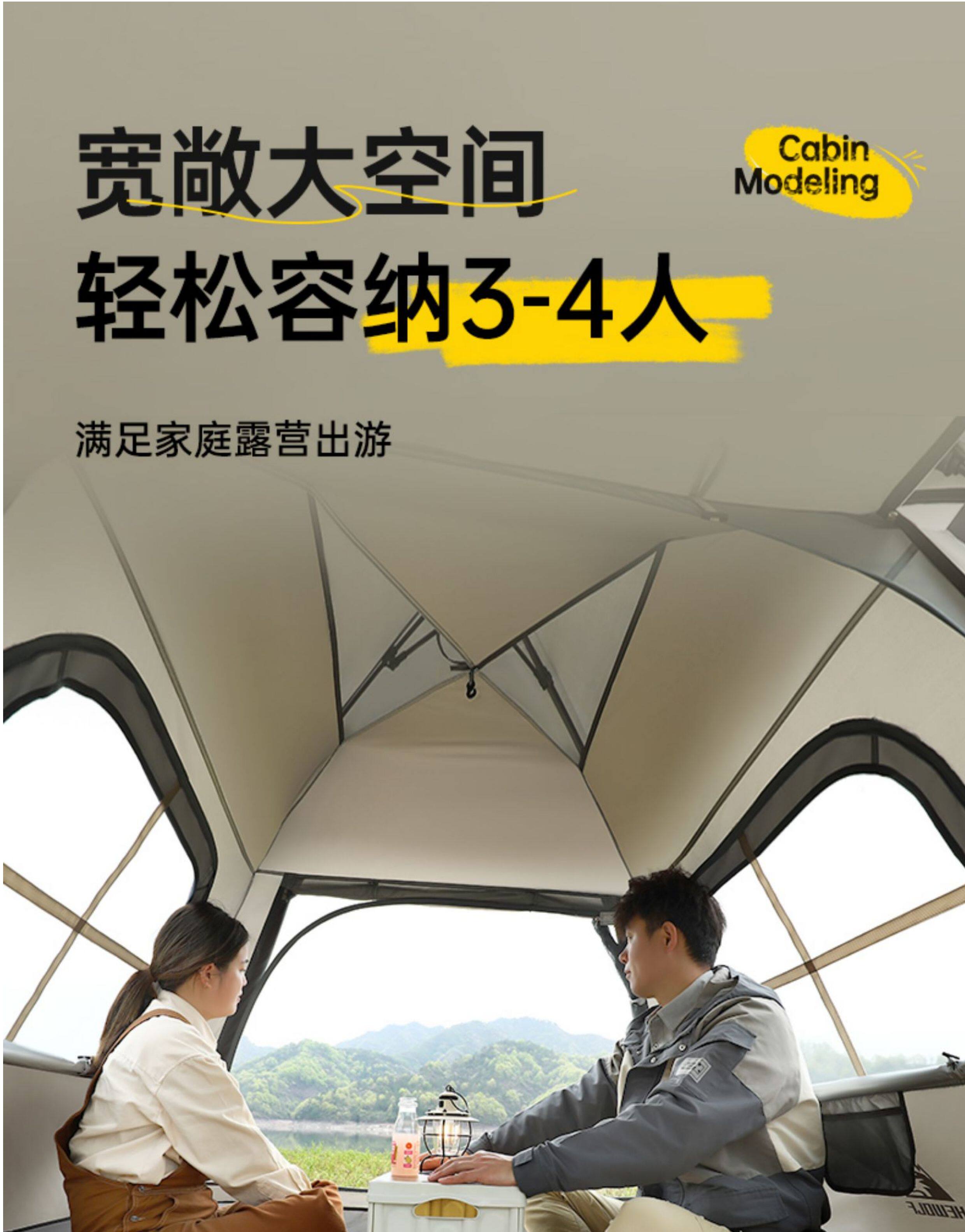 公狼戶外露營全自動速開雙層防暴雨加厚黑膠防曬野營四季天幕帳篷