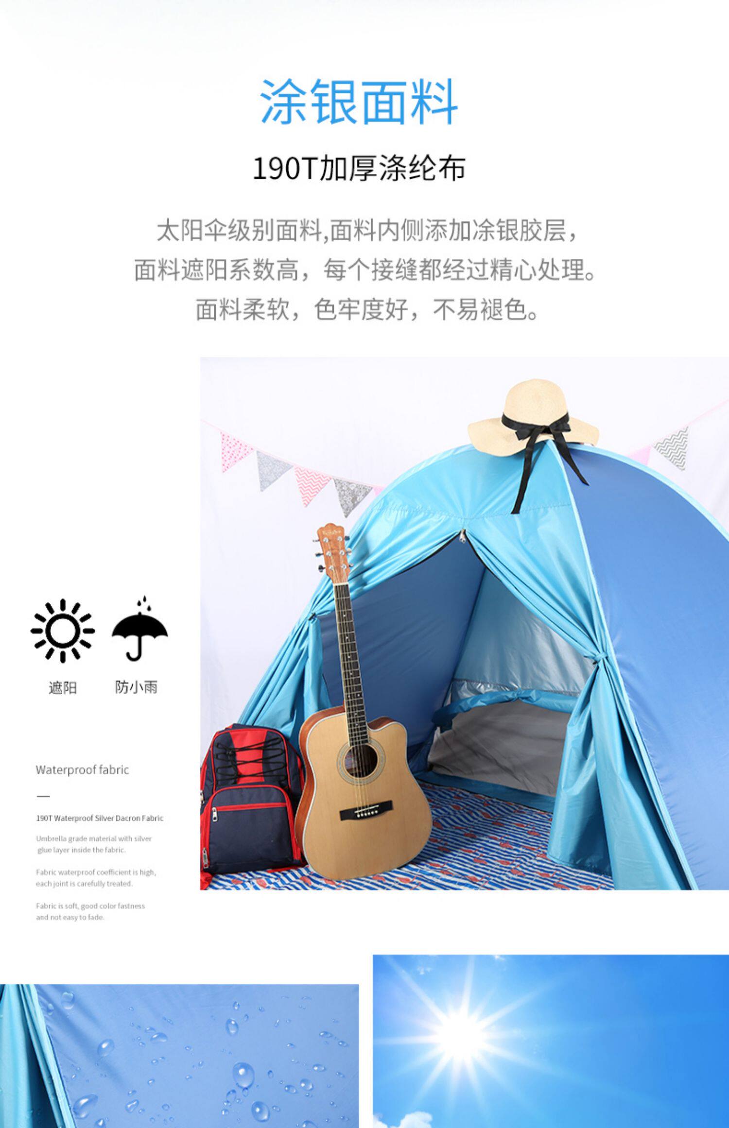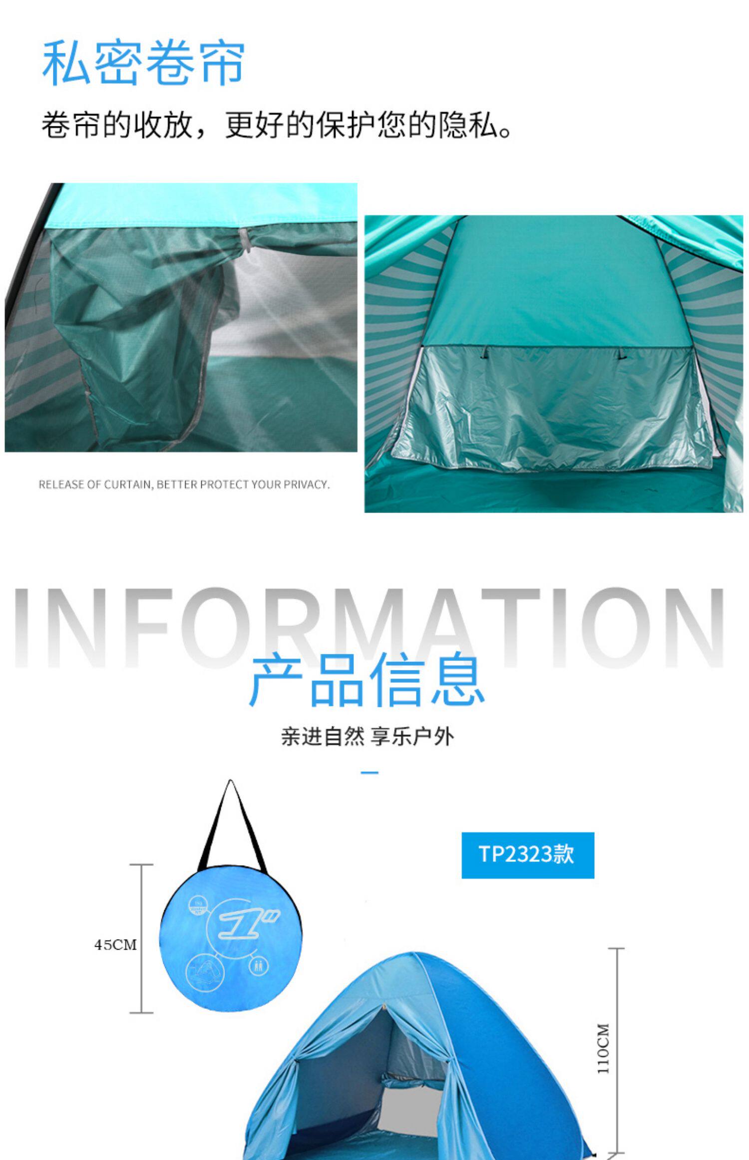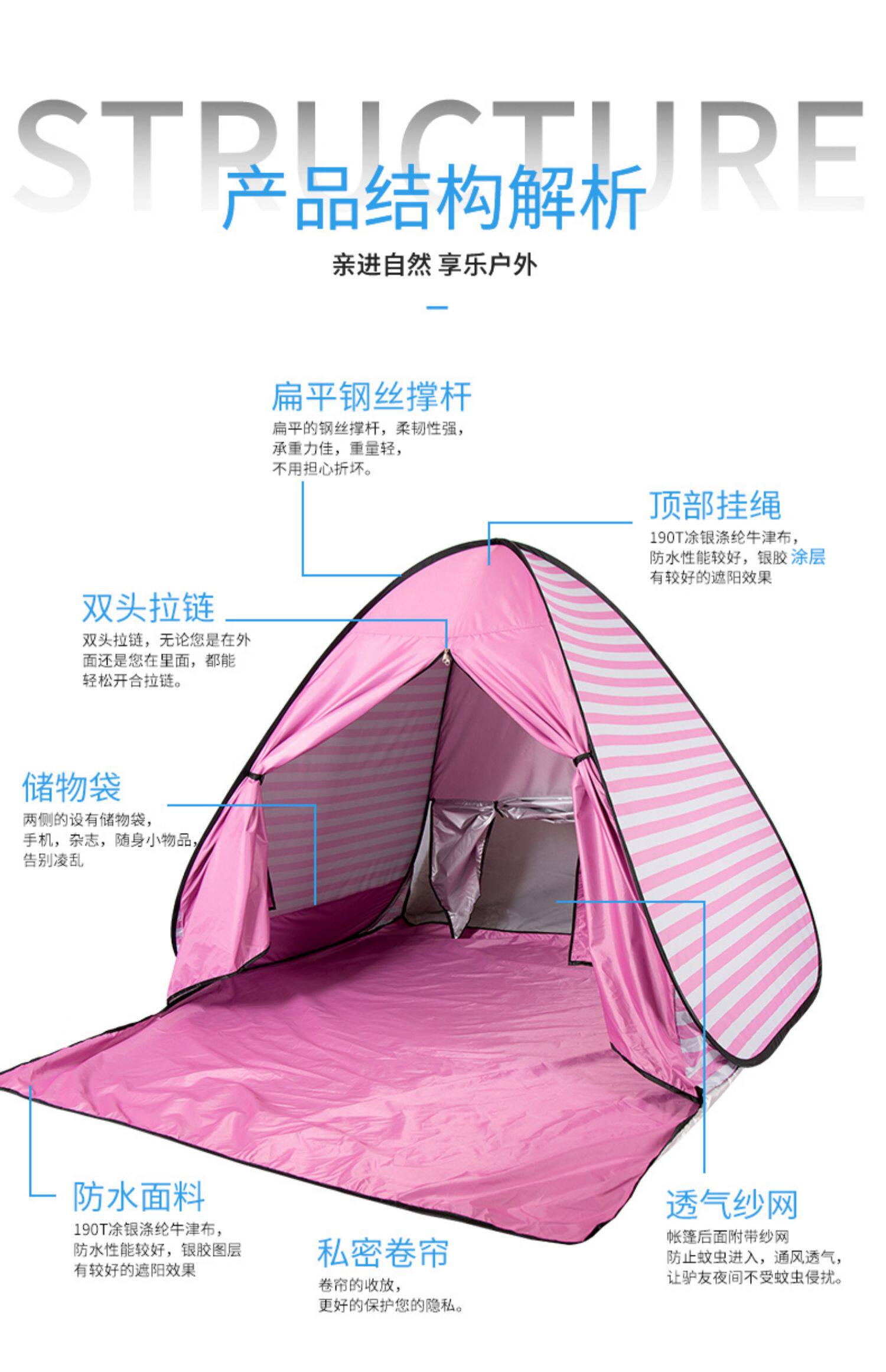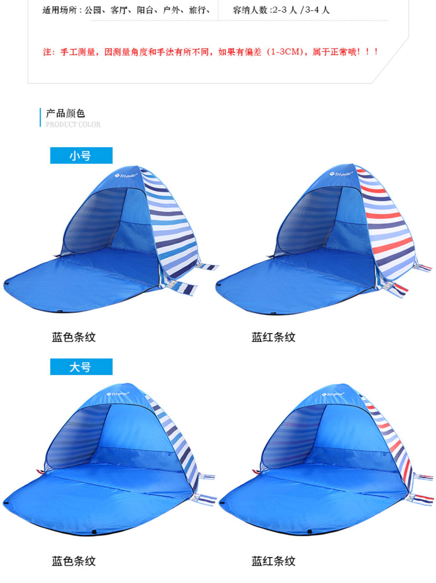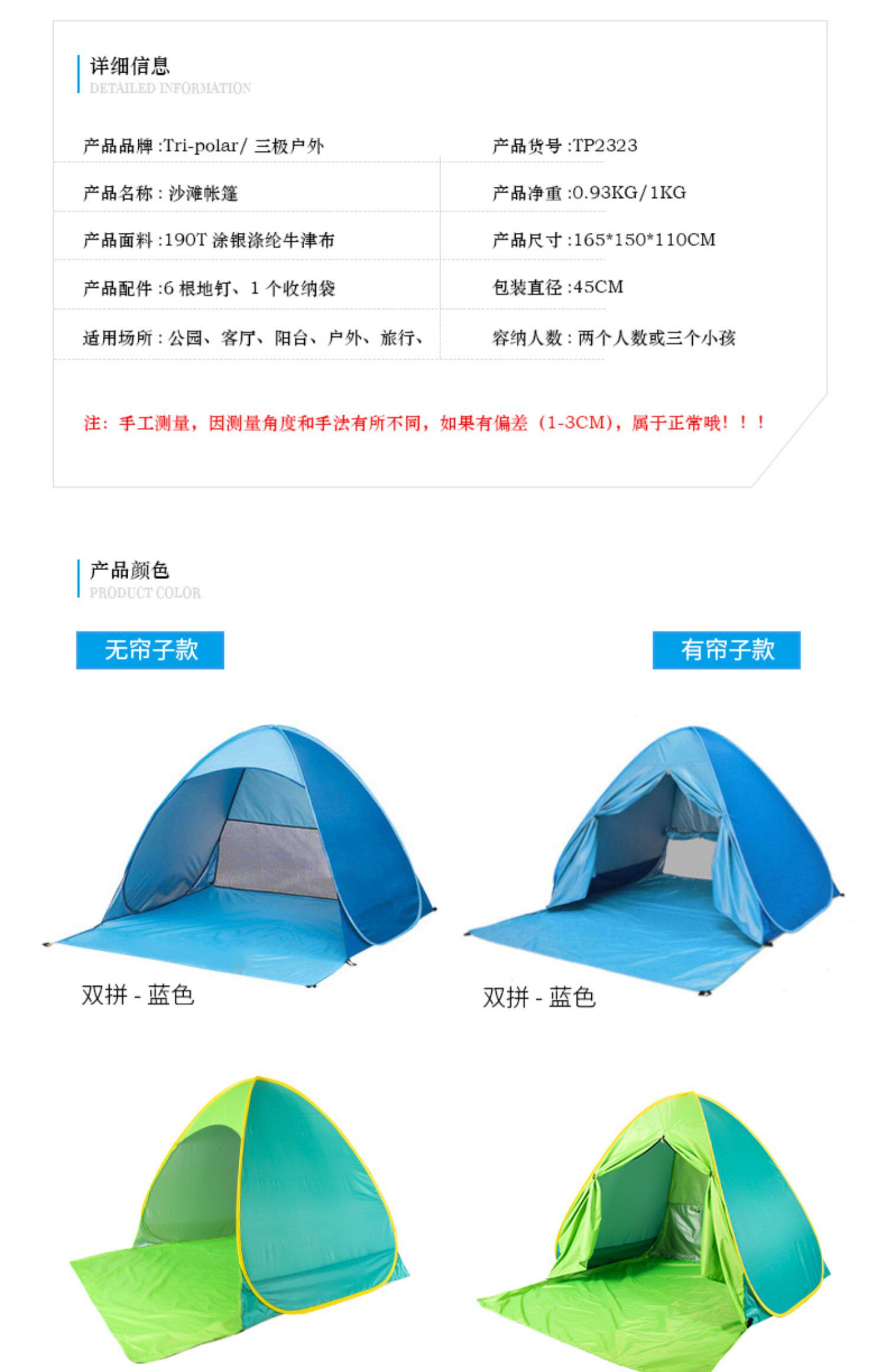 沙灘帳篷海邊戶外3-4人全自動速開公園野餐遮陽兒童室外帳篷