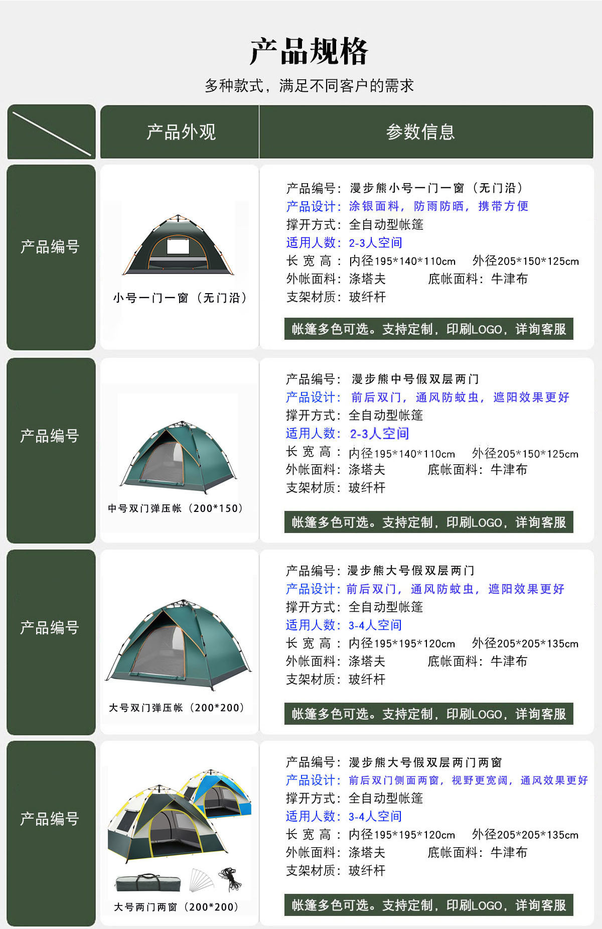 | 篷面尺寸 | 2.5~4㎡ |
