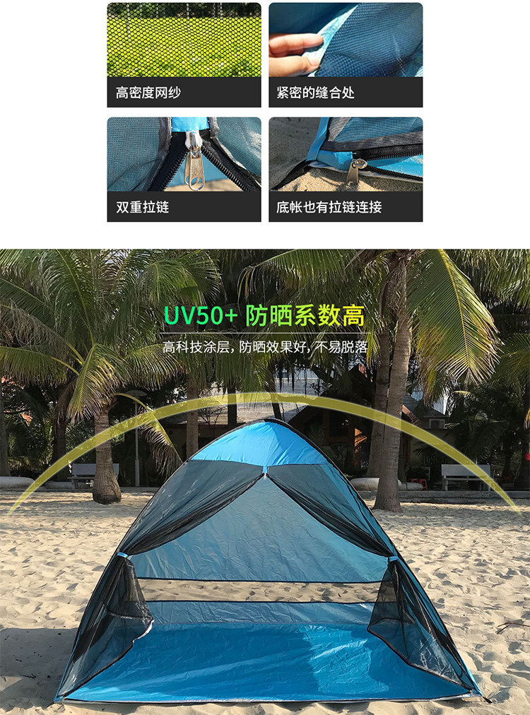 戶外全自動沙灘帳篷免搭建速開紗網防蚊防曬海邊遮陽棚釣魚帳可攜式