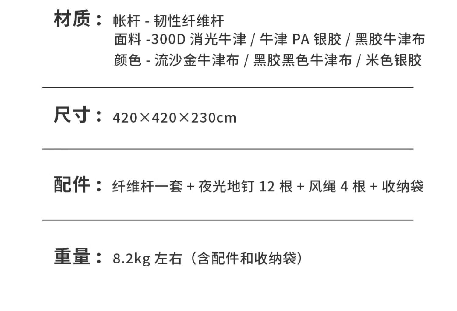 | 帳篷結搆 | 單層帳 |