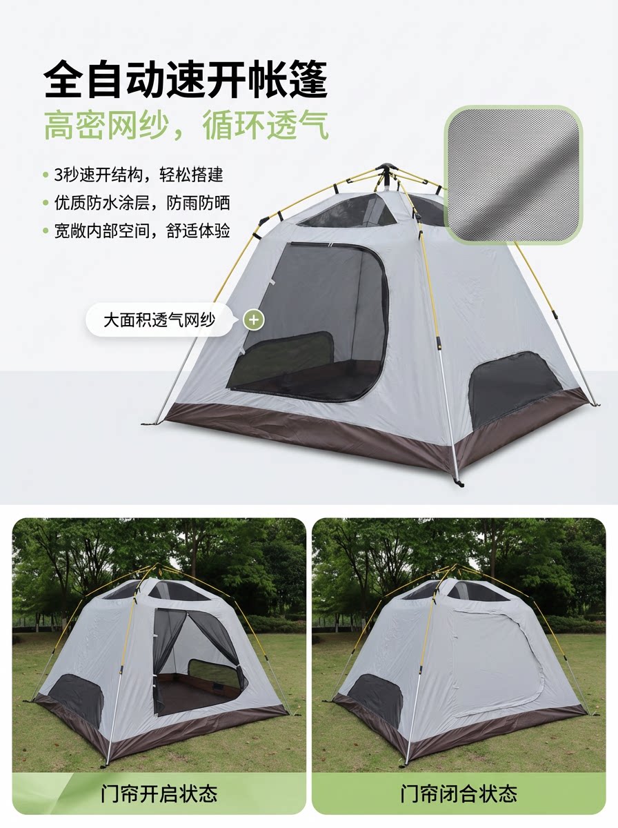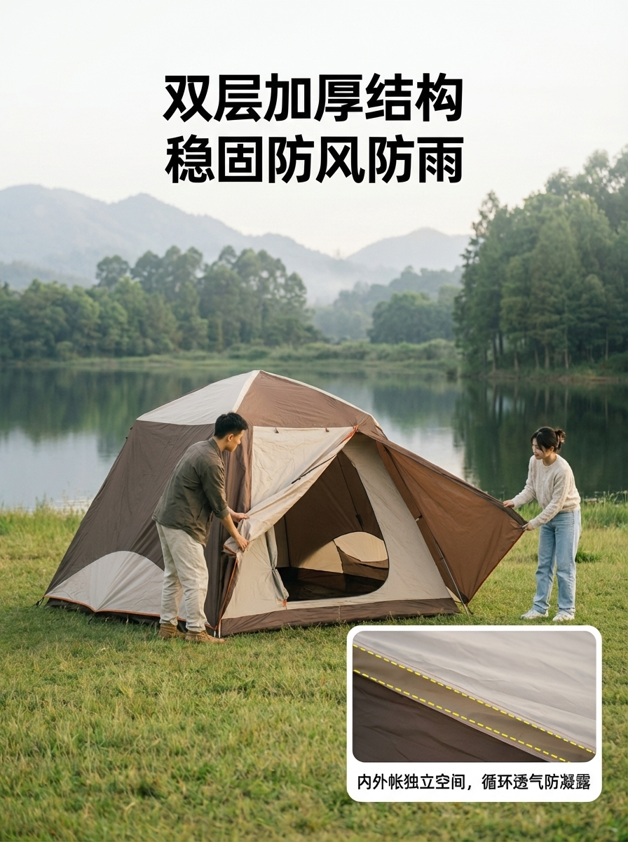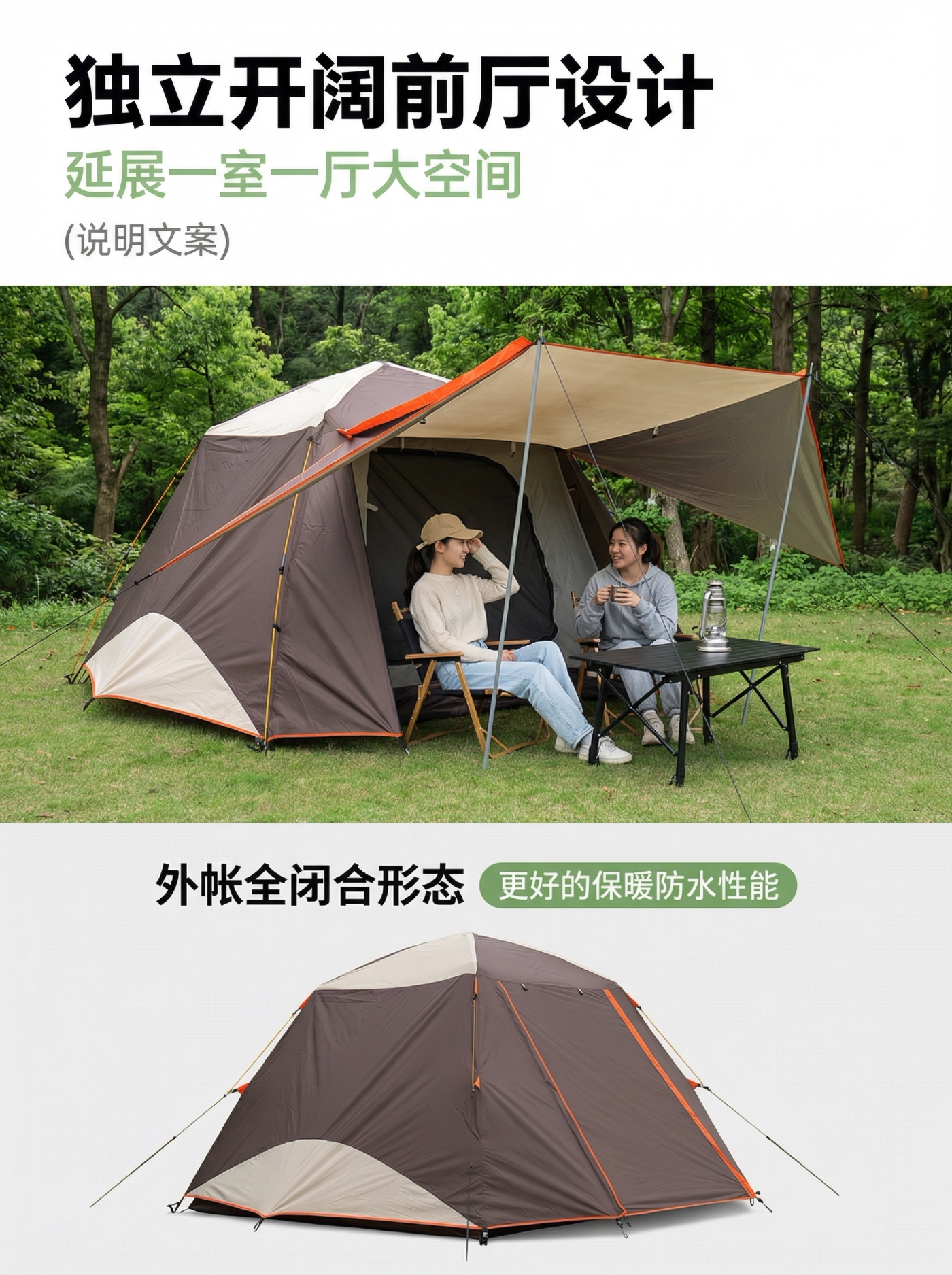 越朗雙層速開帳篷天幕一體戶外免搭建防風防雨防曬家庭露營