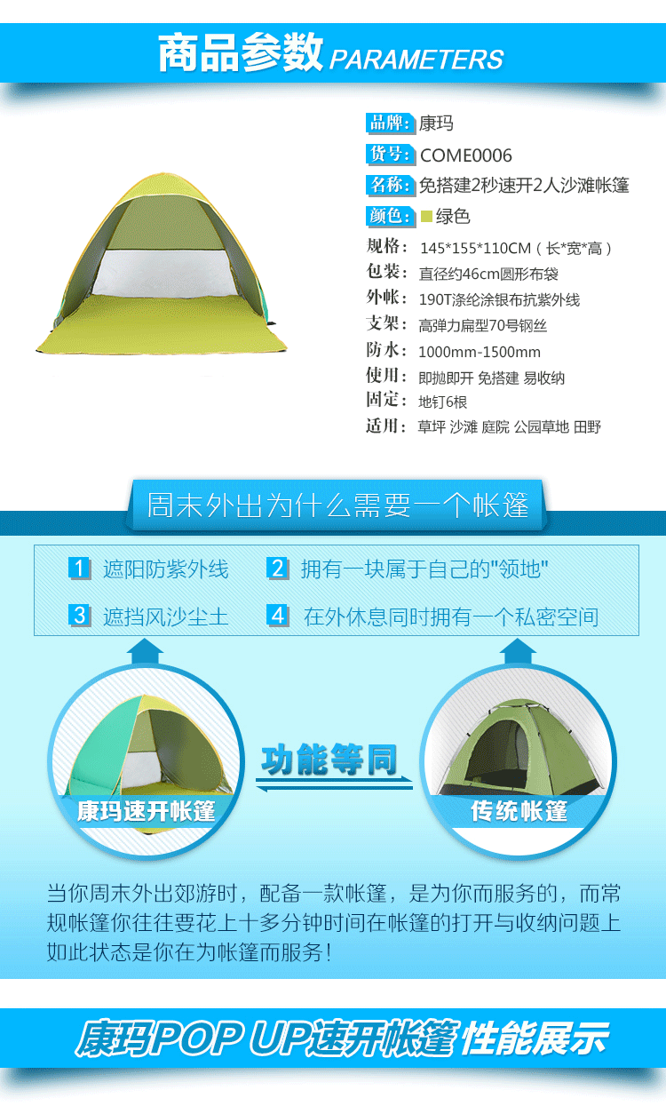 | 外帳材質 | 190T塗銀滌綸布抗UV |