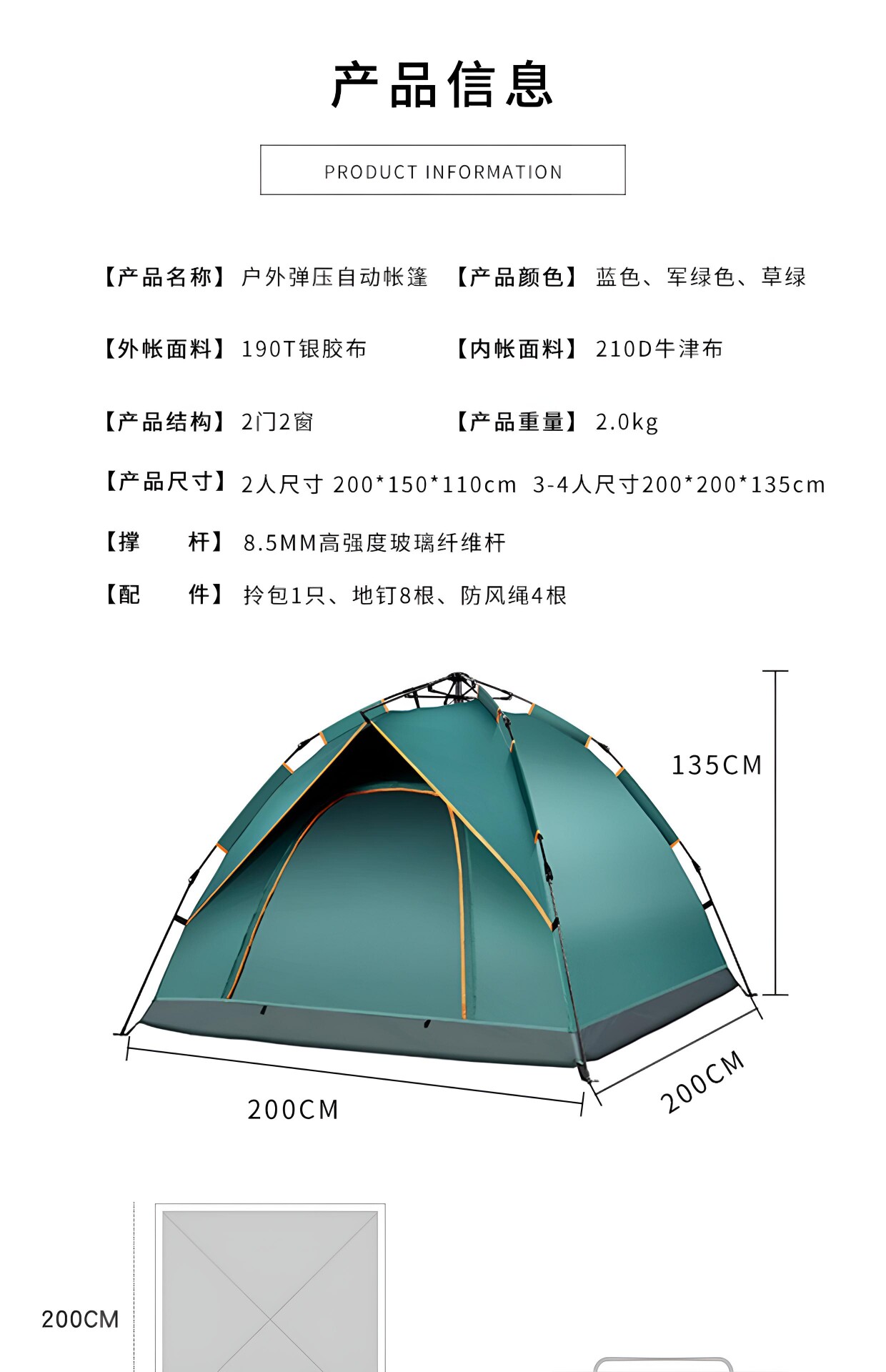 | 帳底材質 | 210D防水牛津布 |