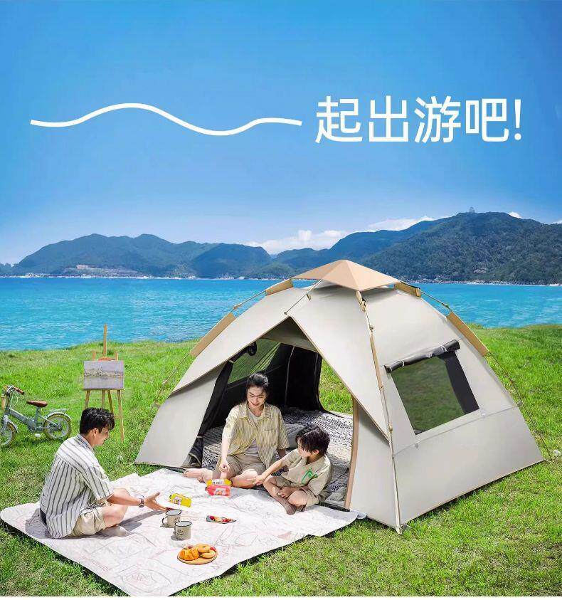 加厚黑膠帳篷戶外可攜式折疊公園露營野營過夜全自動速開沙灘室內