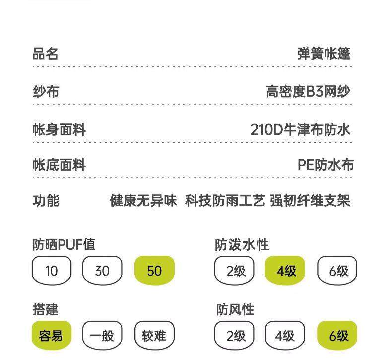 | 帳底防水指數(mm) | 2000mm |