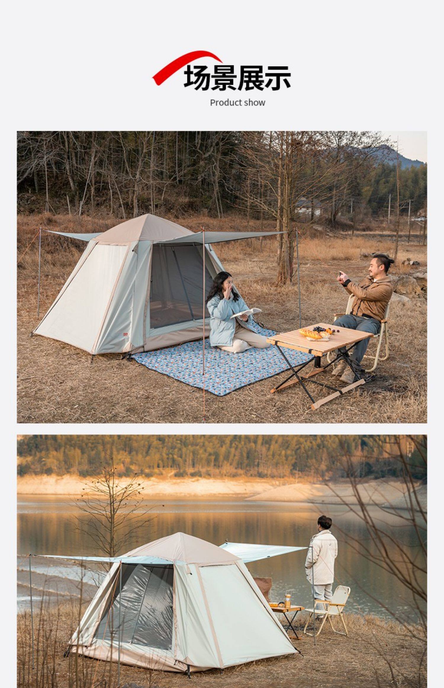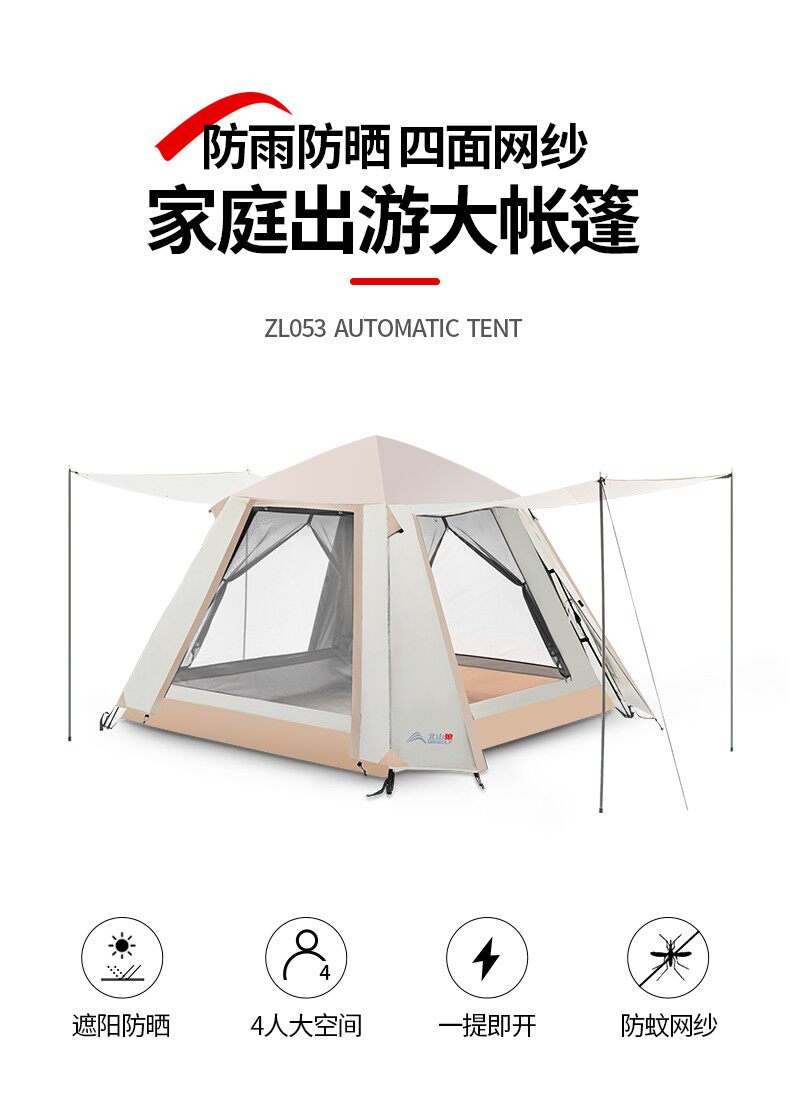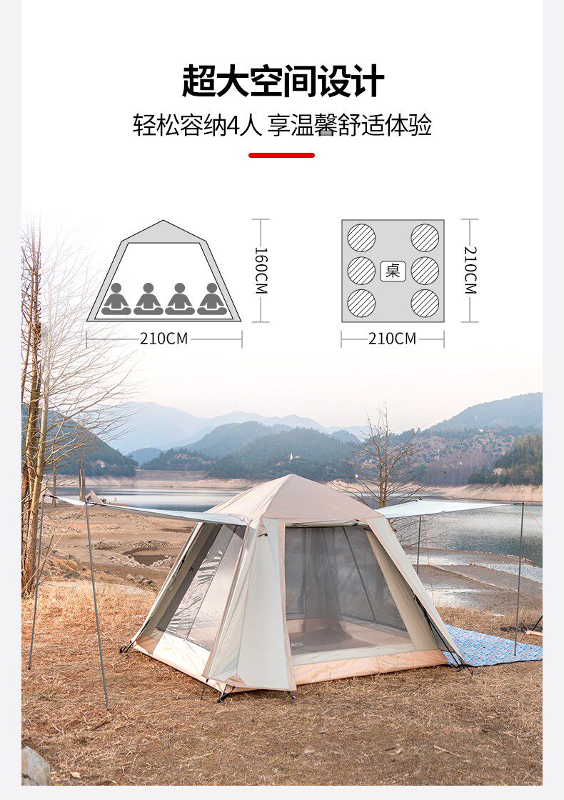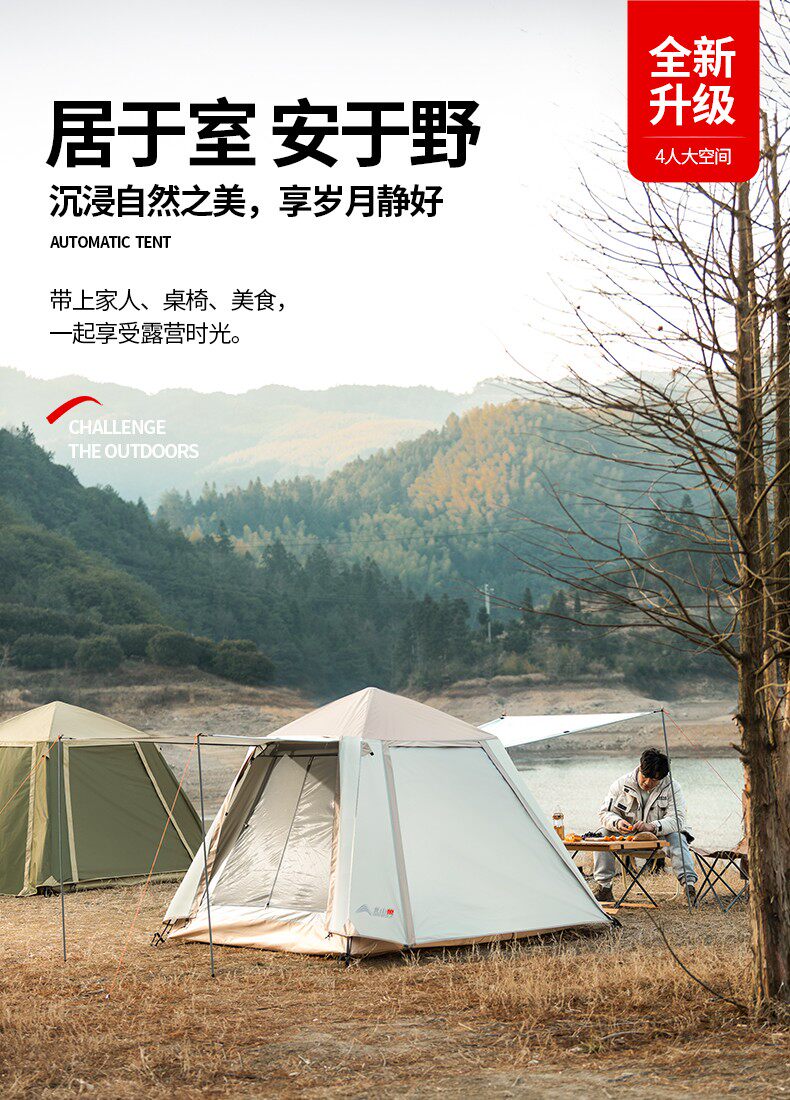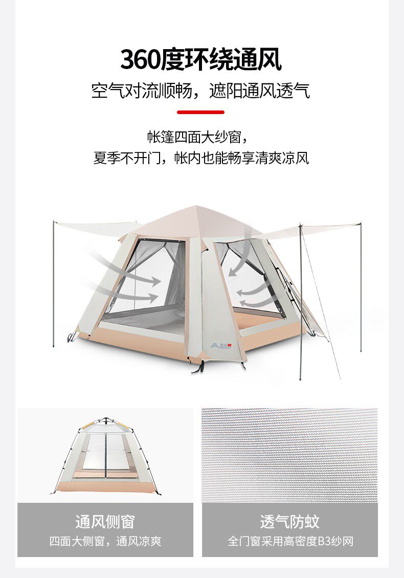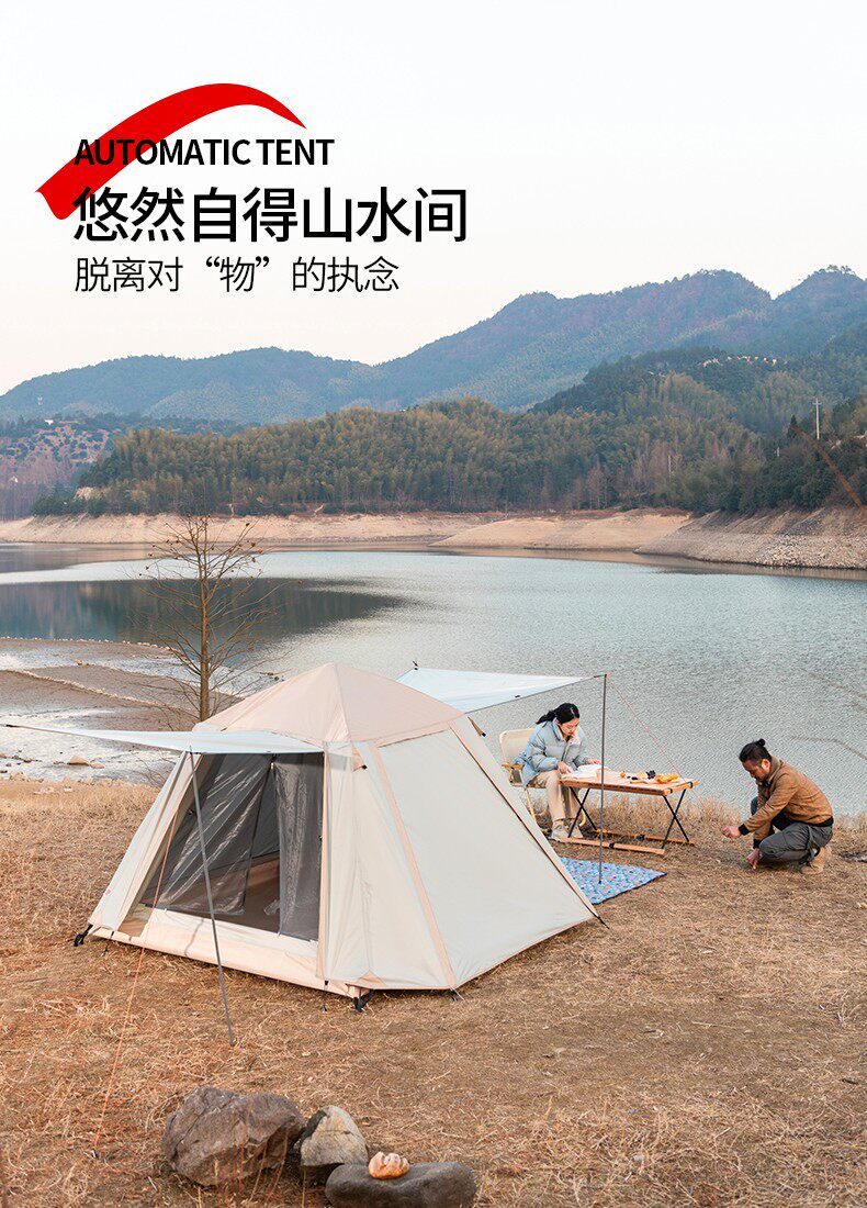 韶光3-4人全自動帳篷戶外露營可攜式折疊式野營沙灘防曬防雨雙層