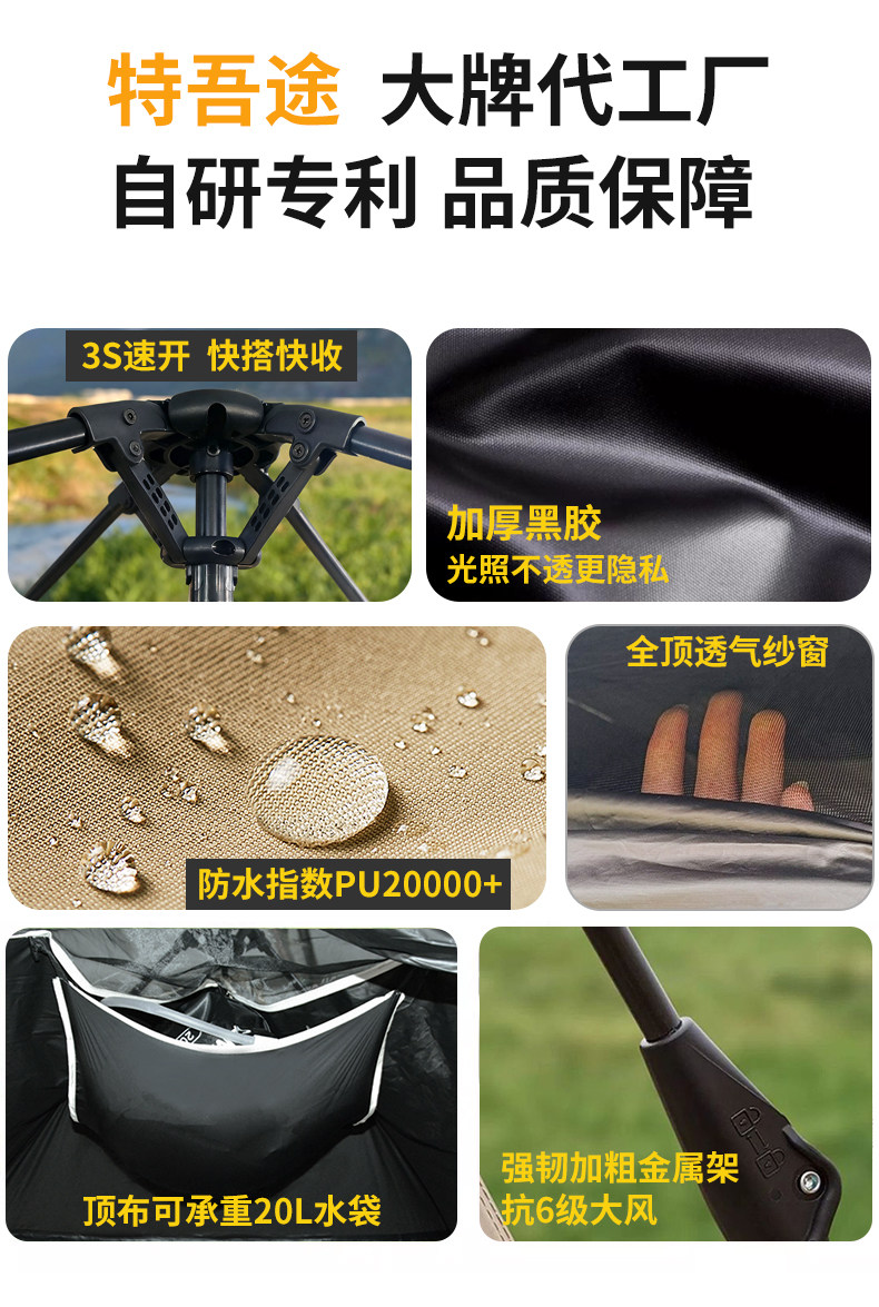 戶外洗澡保暖帳篷換衣隱私防透光防水防曬釣魚帳篷自動速開大空間
