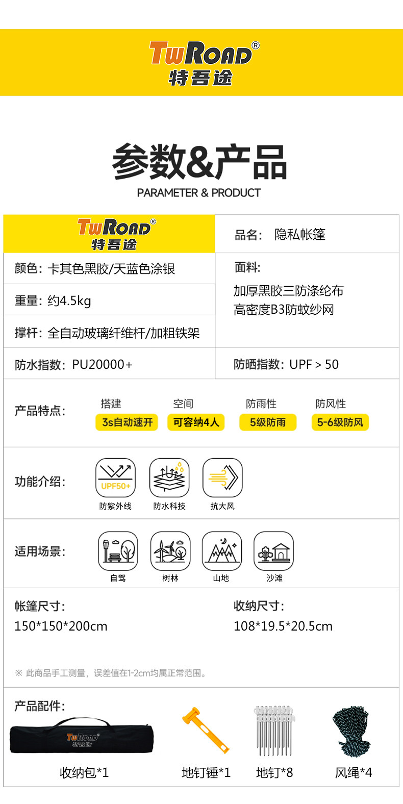 | 外帳材質 | 三防黑膠滌綸布 |