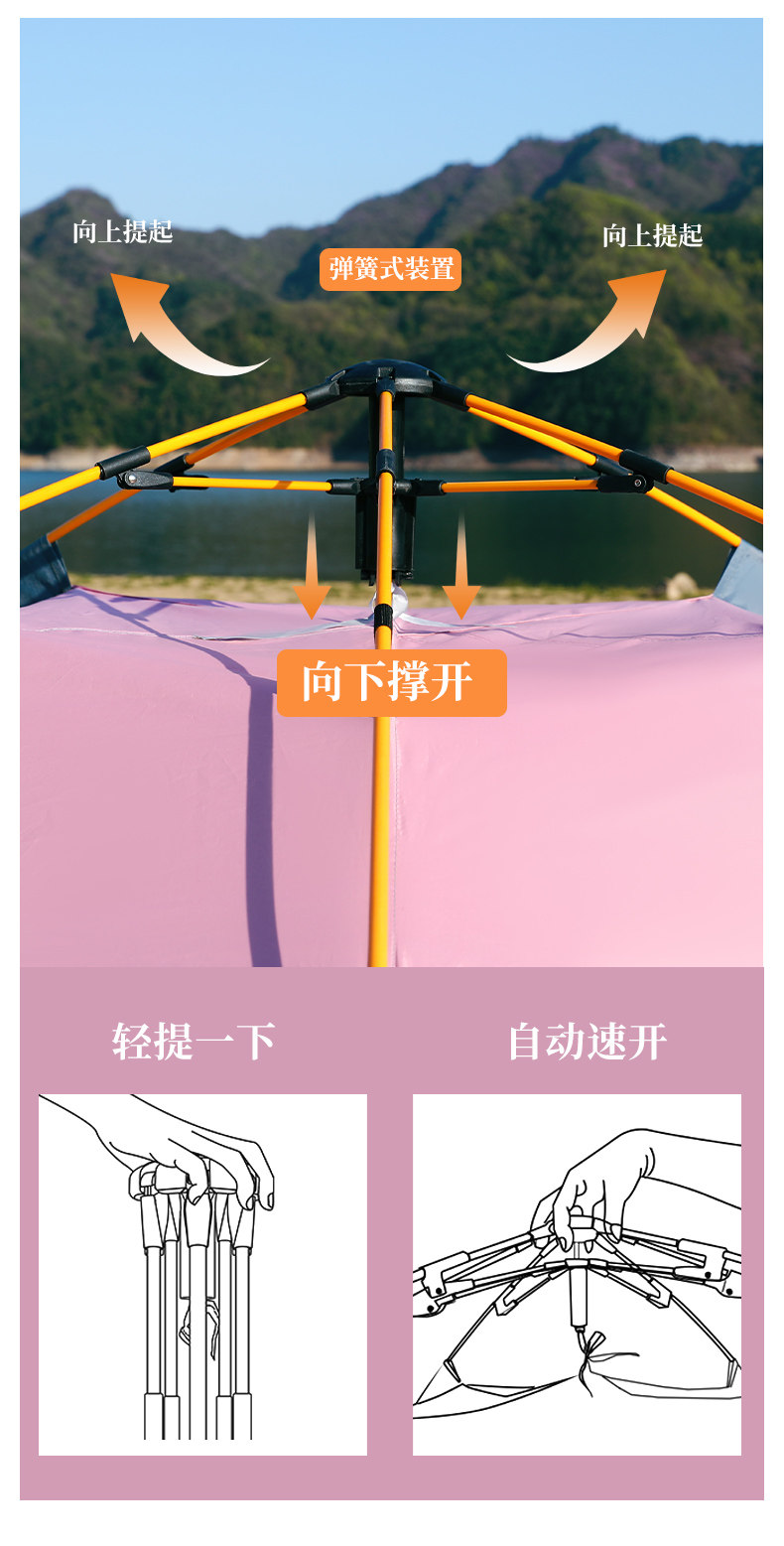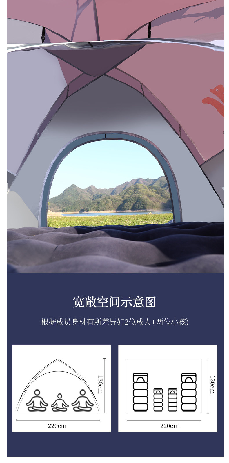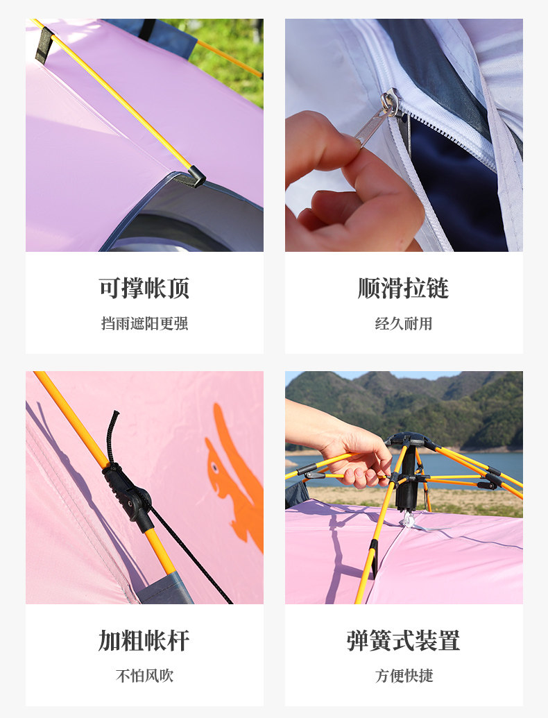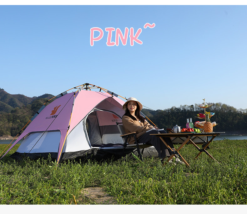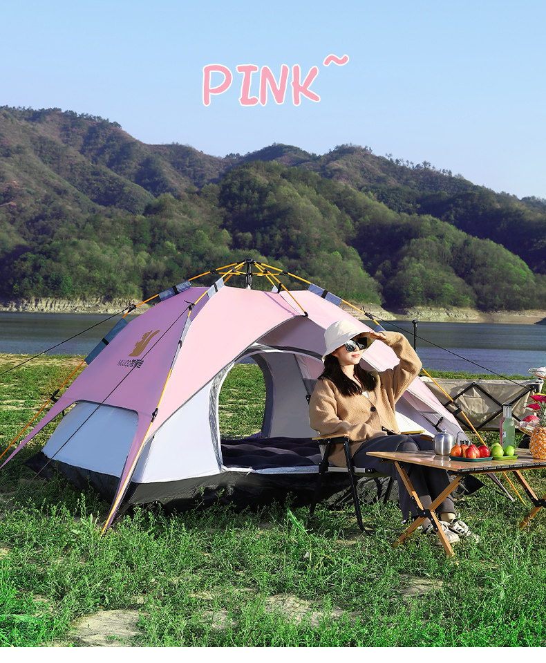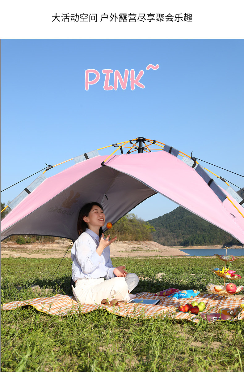 戶外露營粉色公園帳篷家庭野營野餐兒童自動速開可攜式防雨真雙層