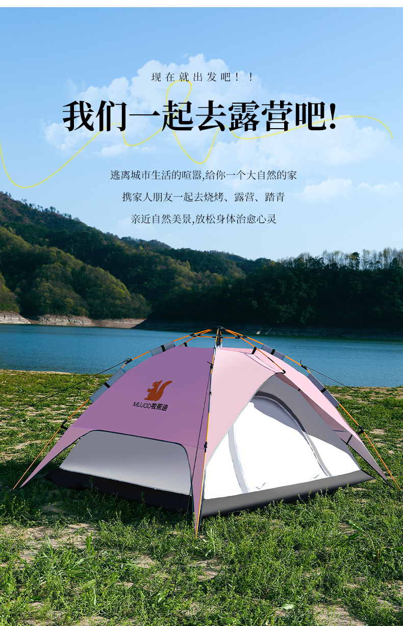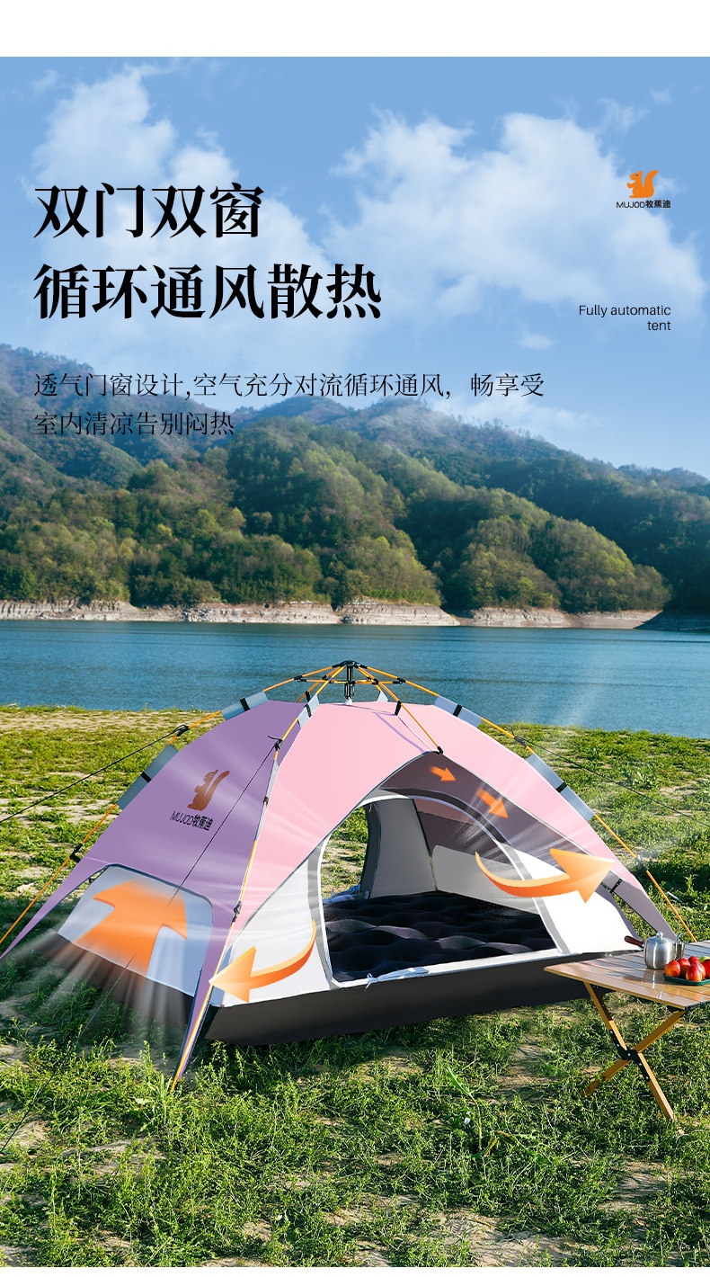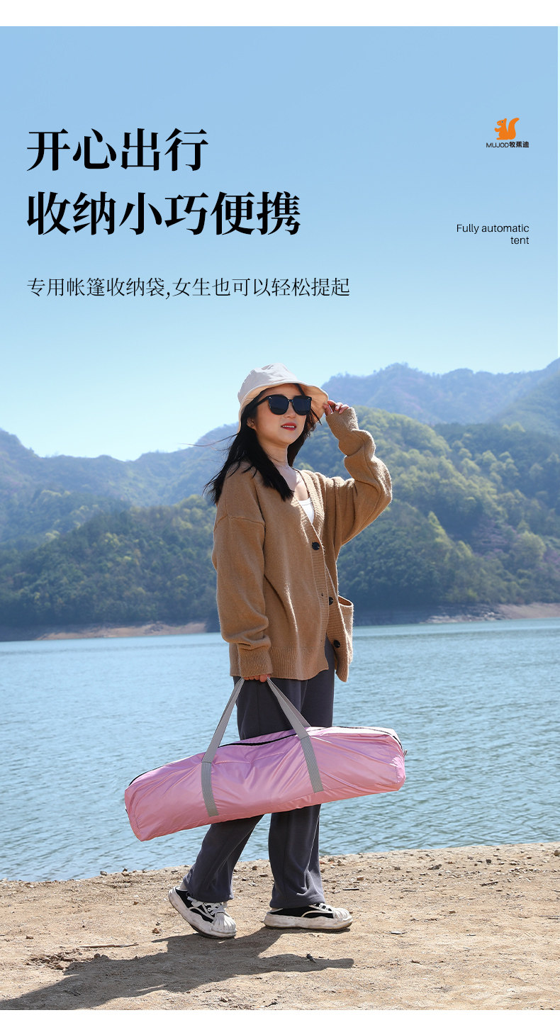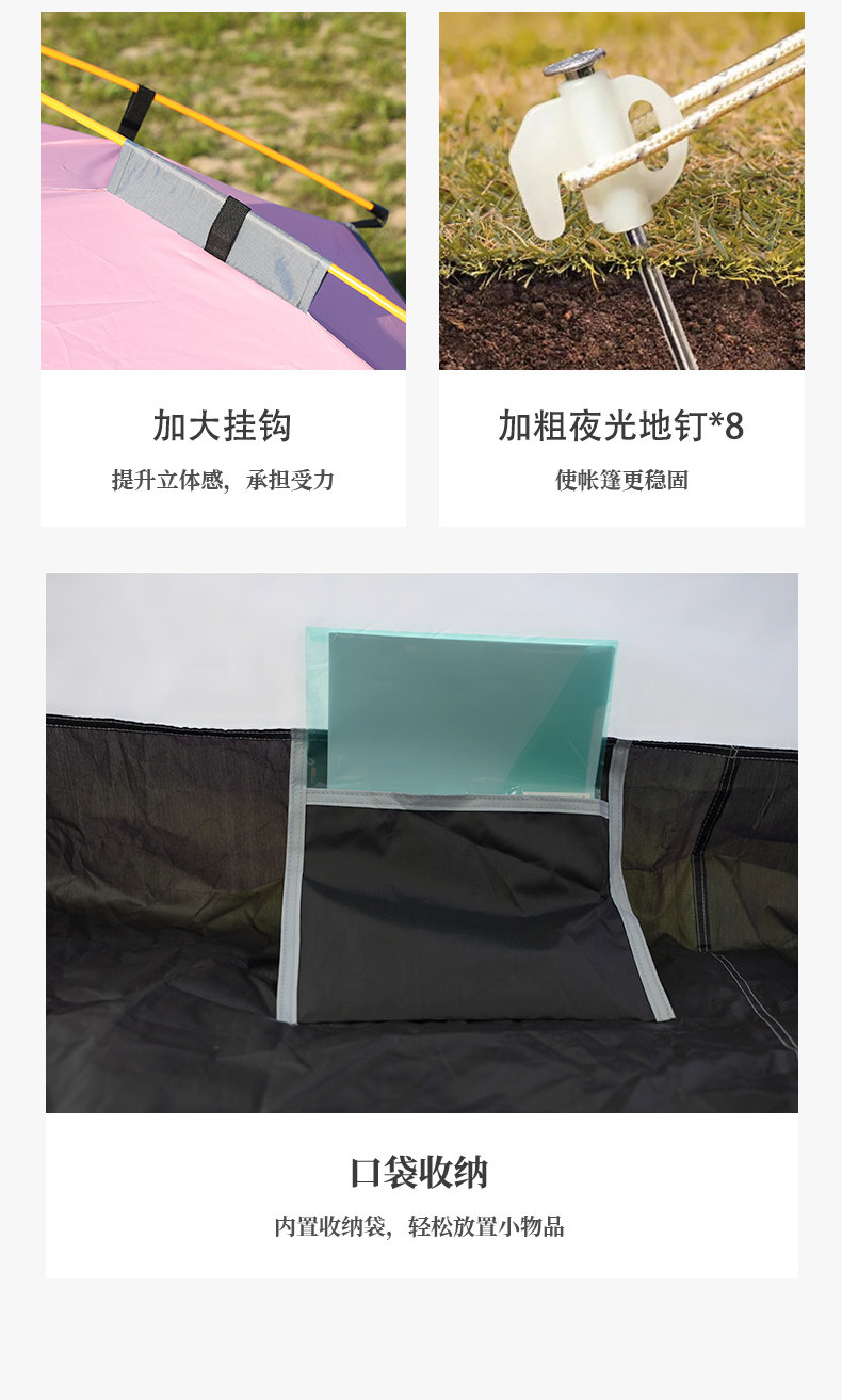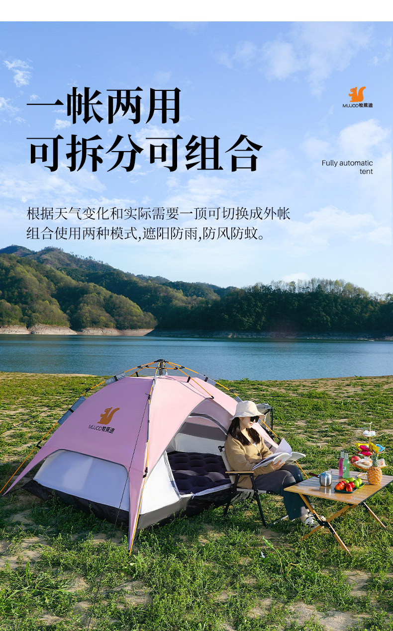 戶外露營粉色公園帳篷家庭野營野餐兒童自動速開可攜式防雨真雙層