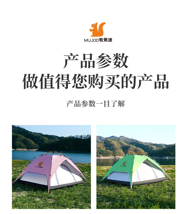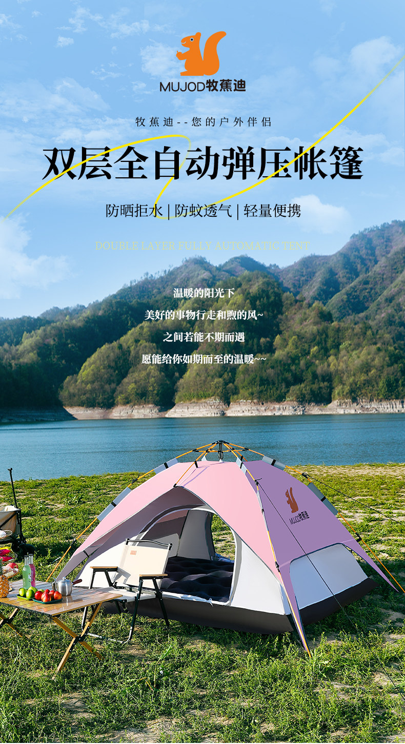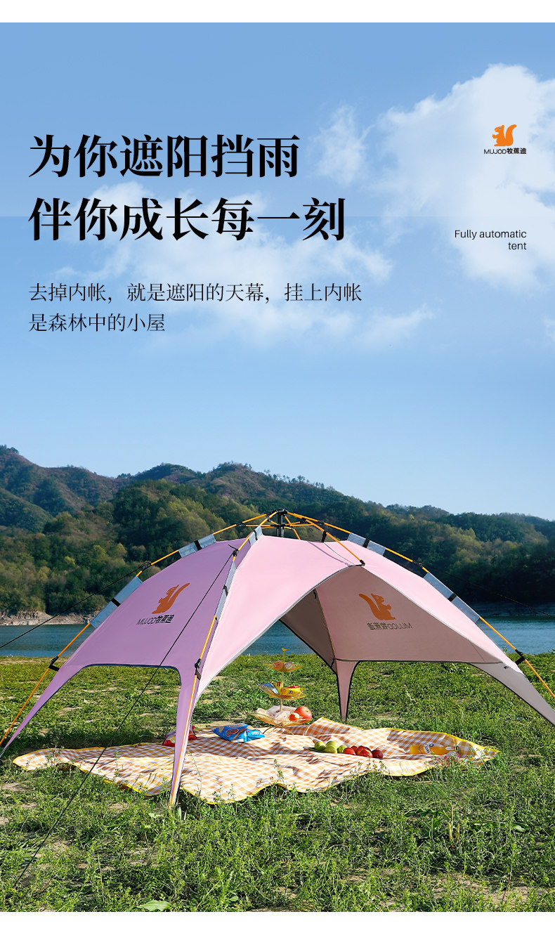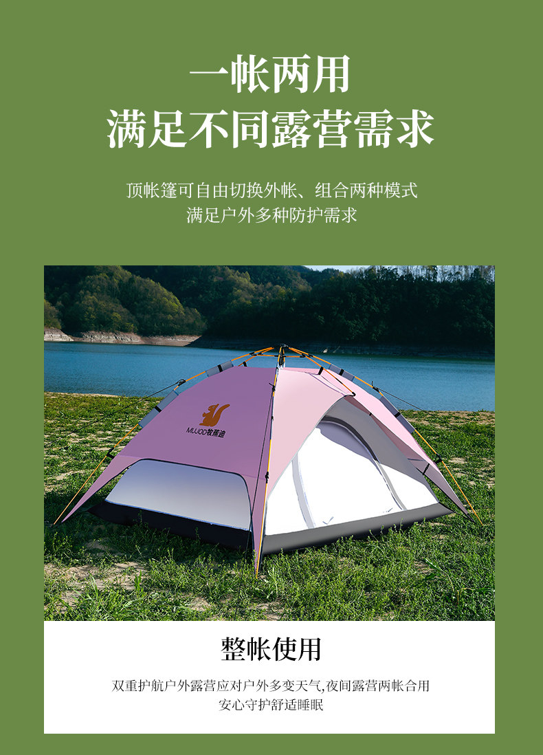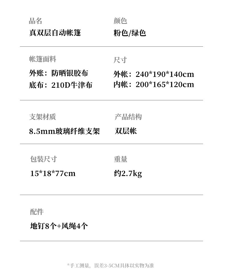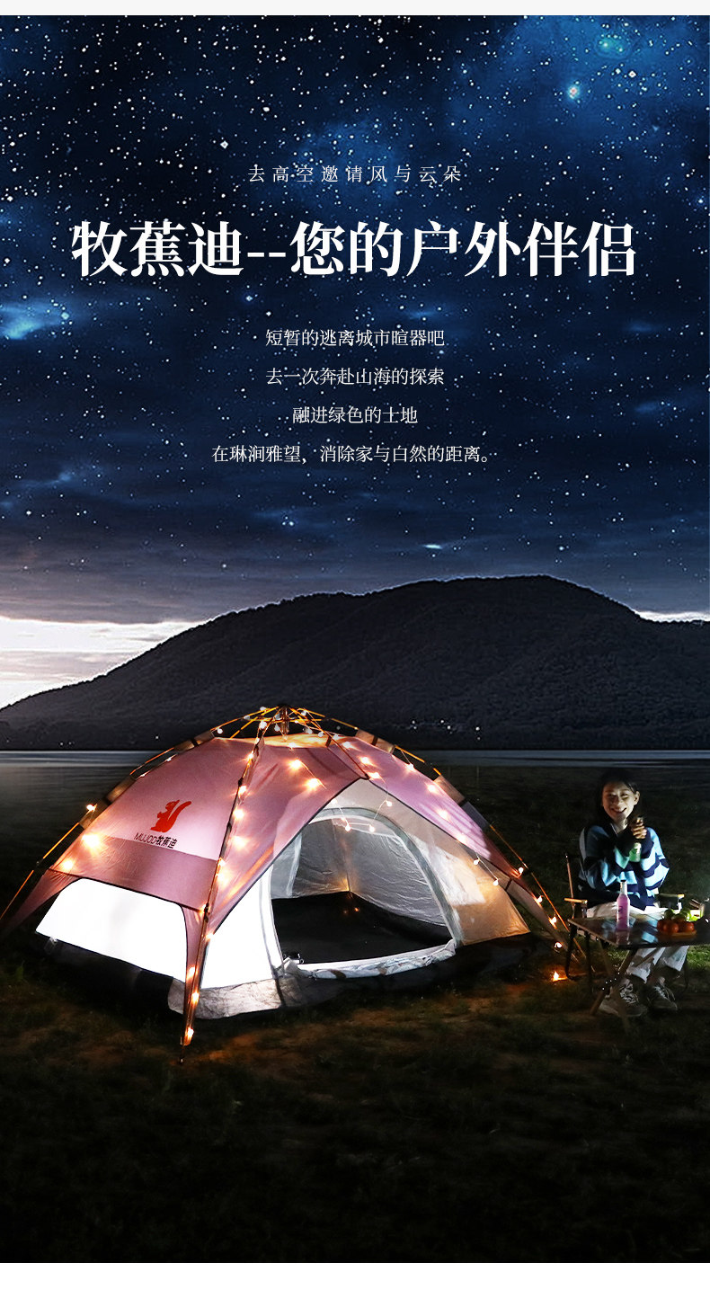 戶外露營粉色公園帳篷家庭野營野餐兒童自動速開可攜式防雨真雙層