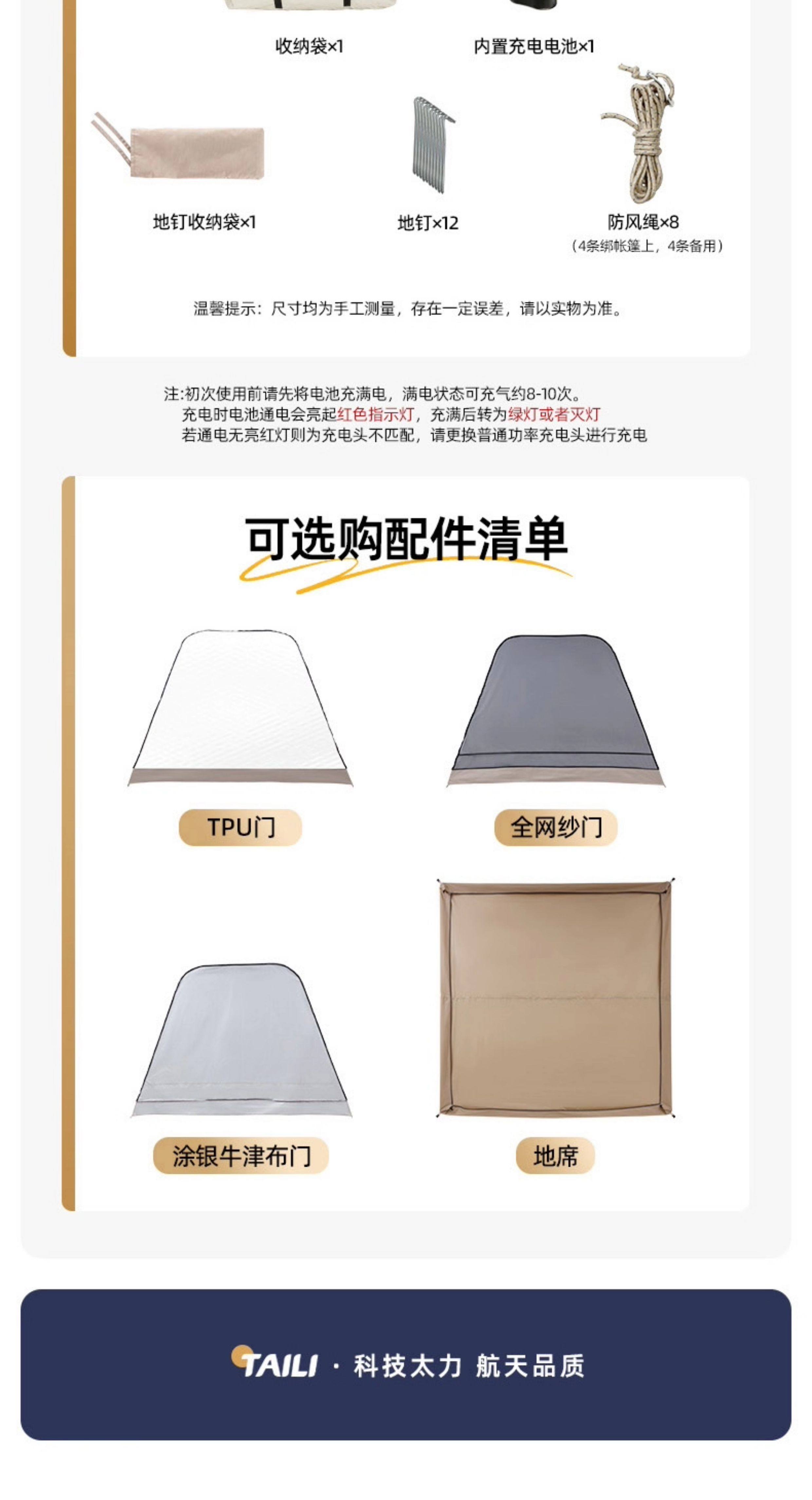 太力四季天幕帳自動充氣帳篷戶外露營裝備免搭建遮陽防曬風雨速開
