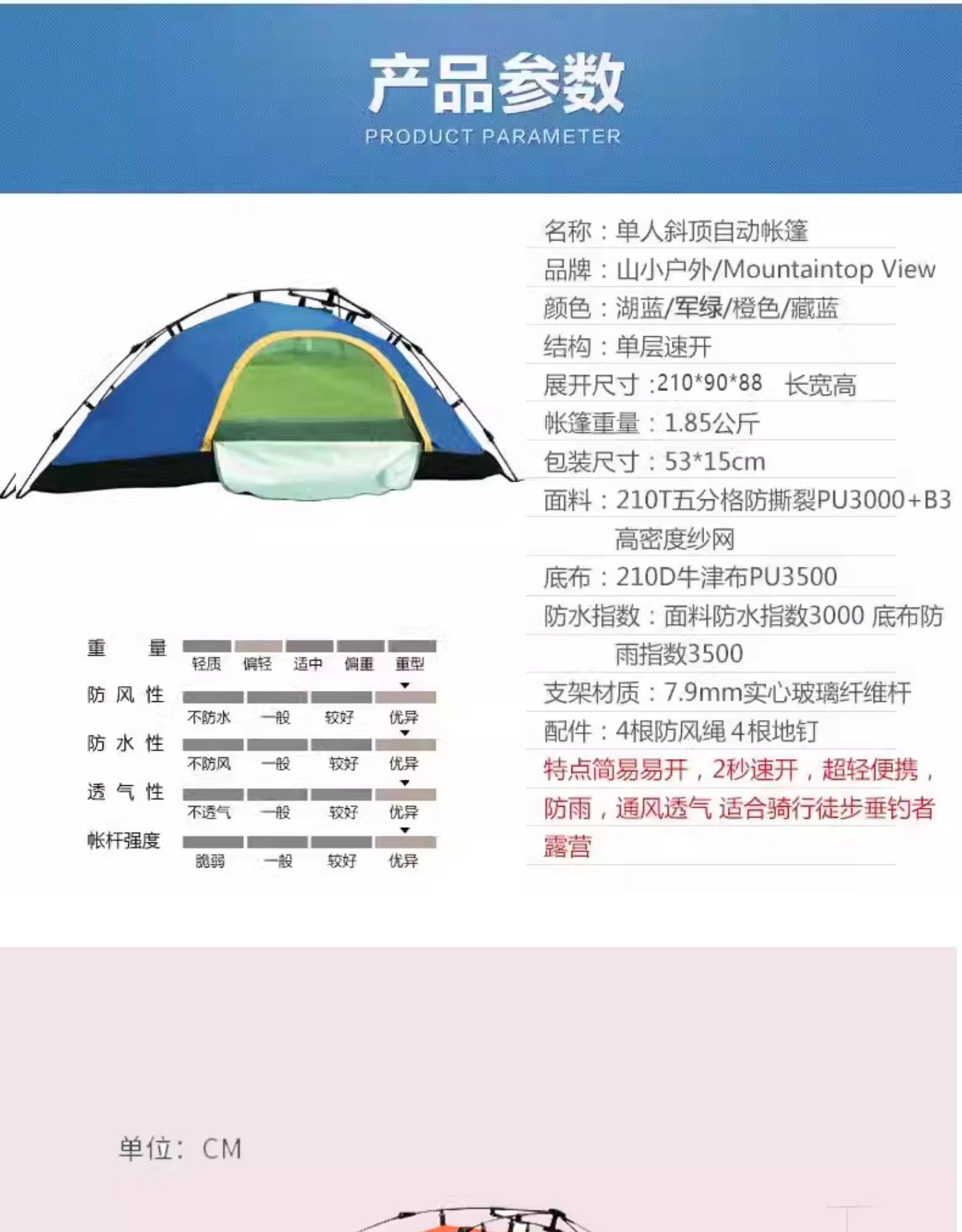| 篷面尺寸 | 1.5~2.5㎡ |