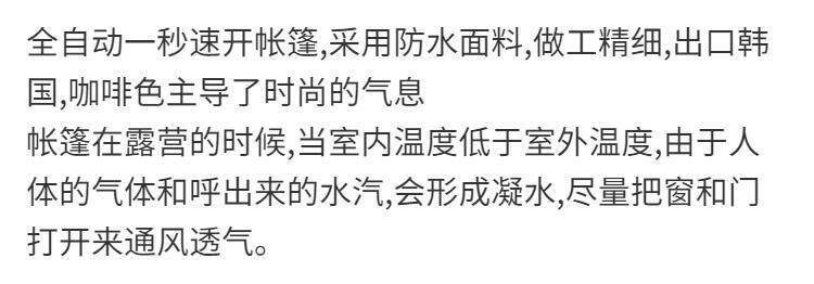 。帳篷一鍵開合野外防雨戶外野營加厚全自動一秒速開3-4人露營裝