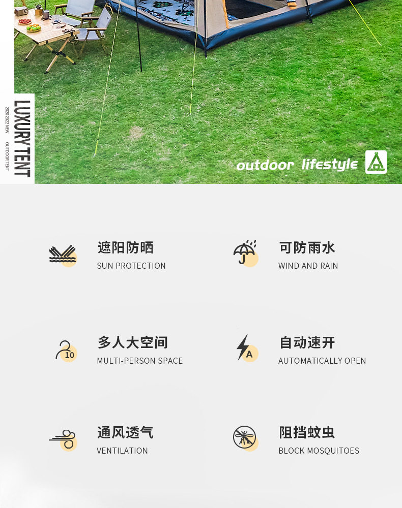 戶外露營免搭建速開多功能帳篷防水防潮雙層帳可折曡野營遮陽棚