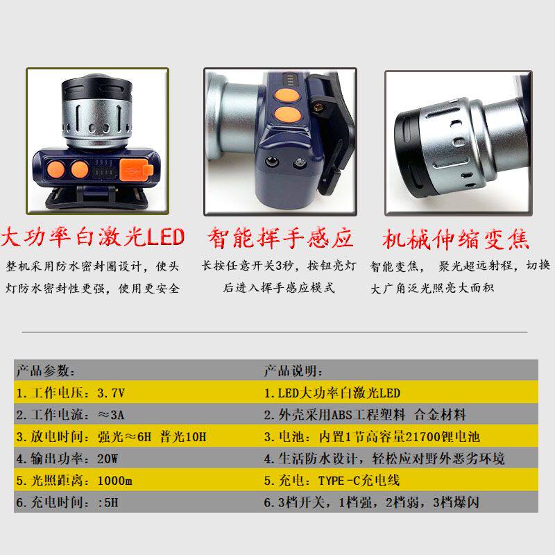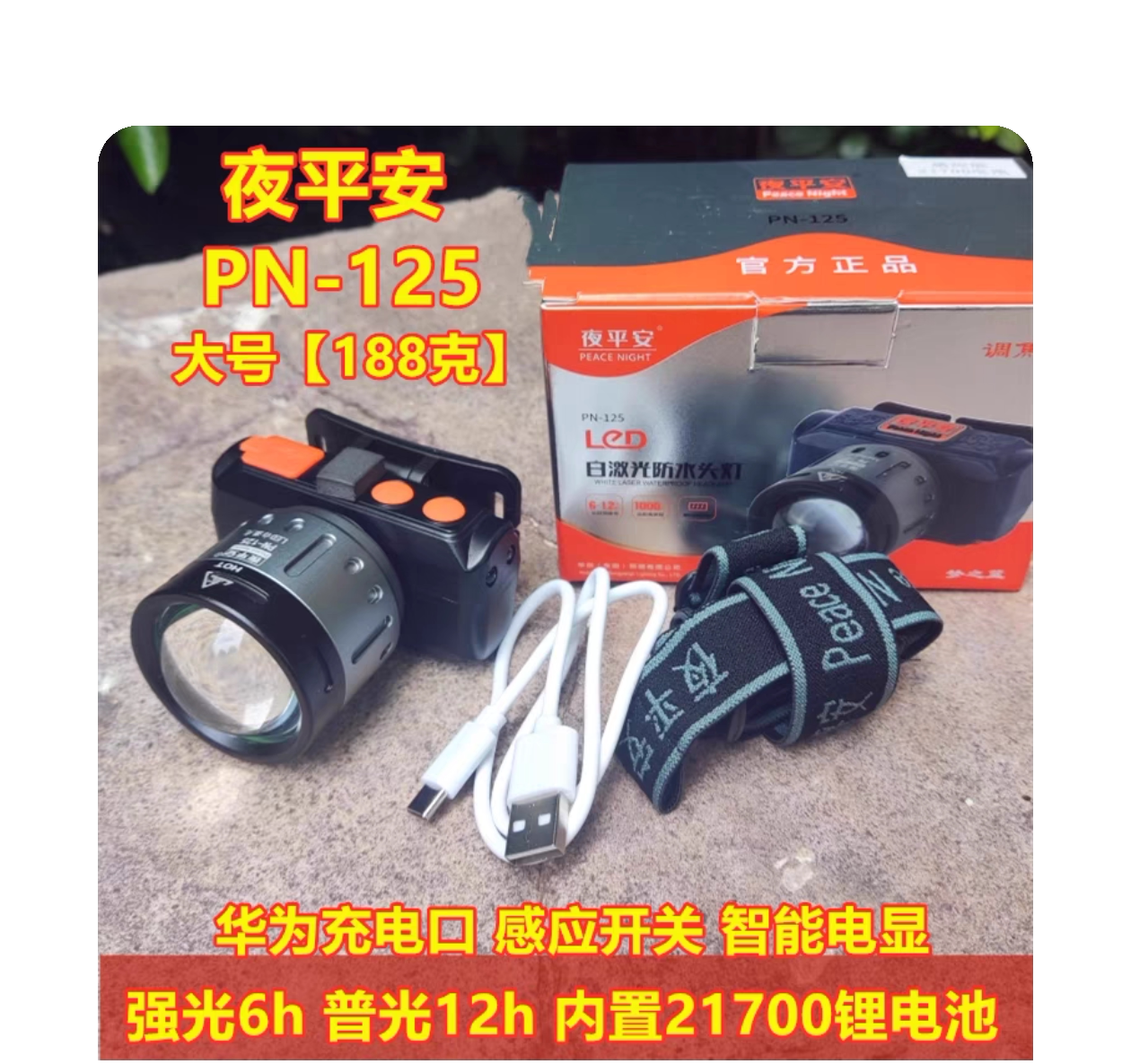 夜平安125LED強光頭燈戶外高亮度遠射超亮釣魚頭戴式感應防爆頭燈