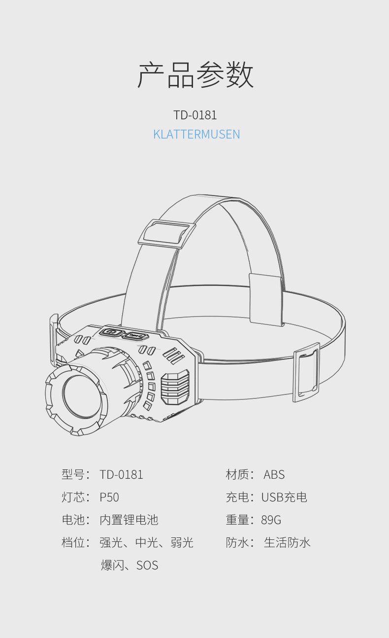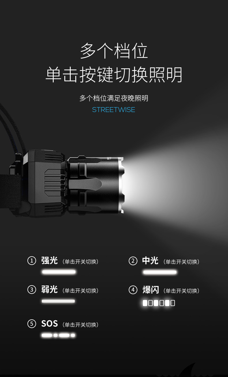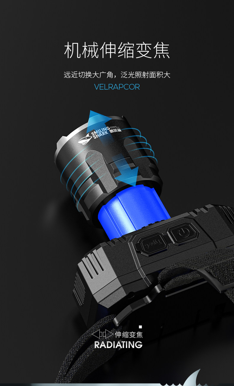 變焦頭戴式強光頭燈充電超亮長續航手電夜釣魚登山專用戶外照明燈