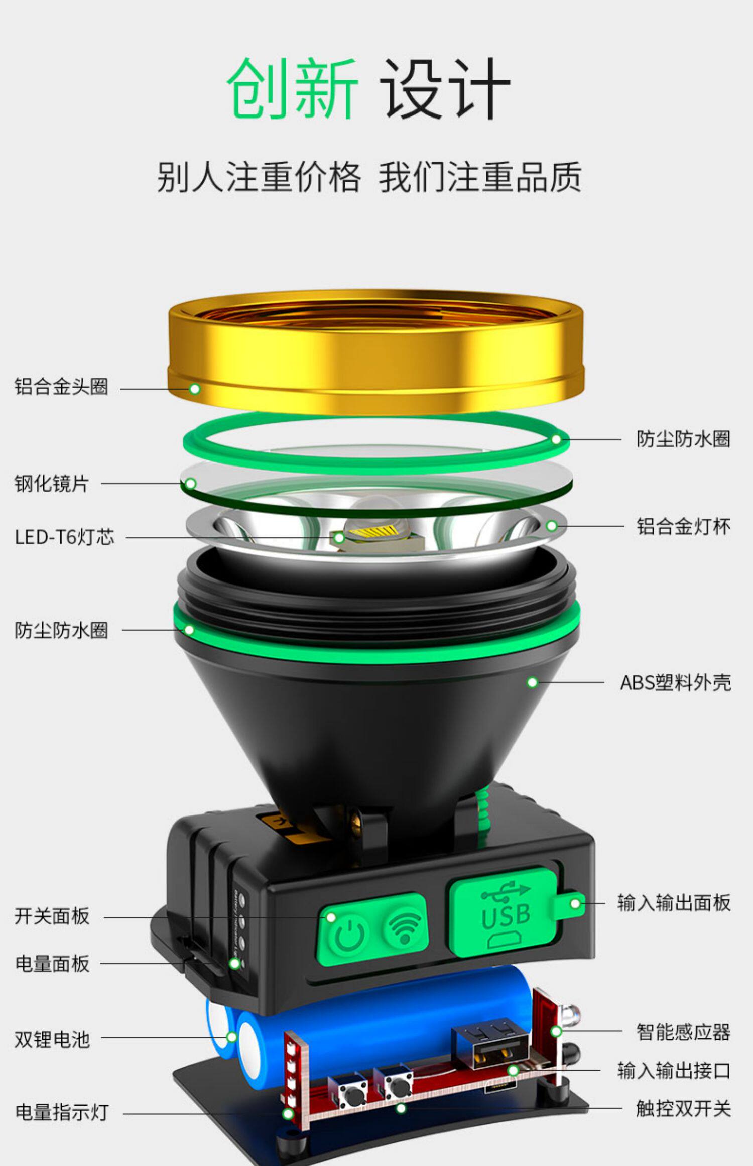 海瓦頭燈強光充電超亮頭戴式照明燈釣魚專用戶外礦燈手電筒長續航