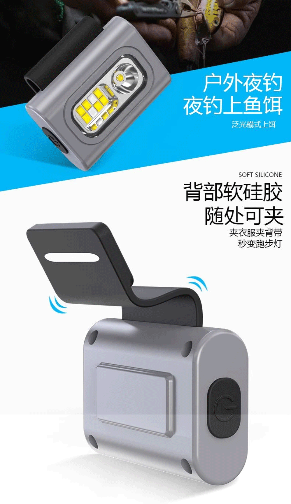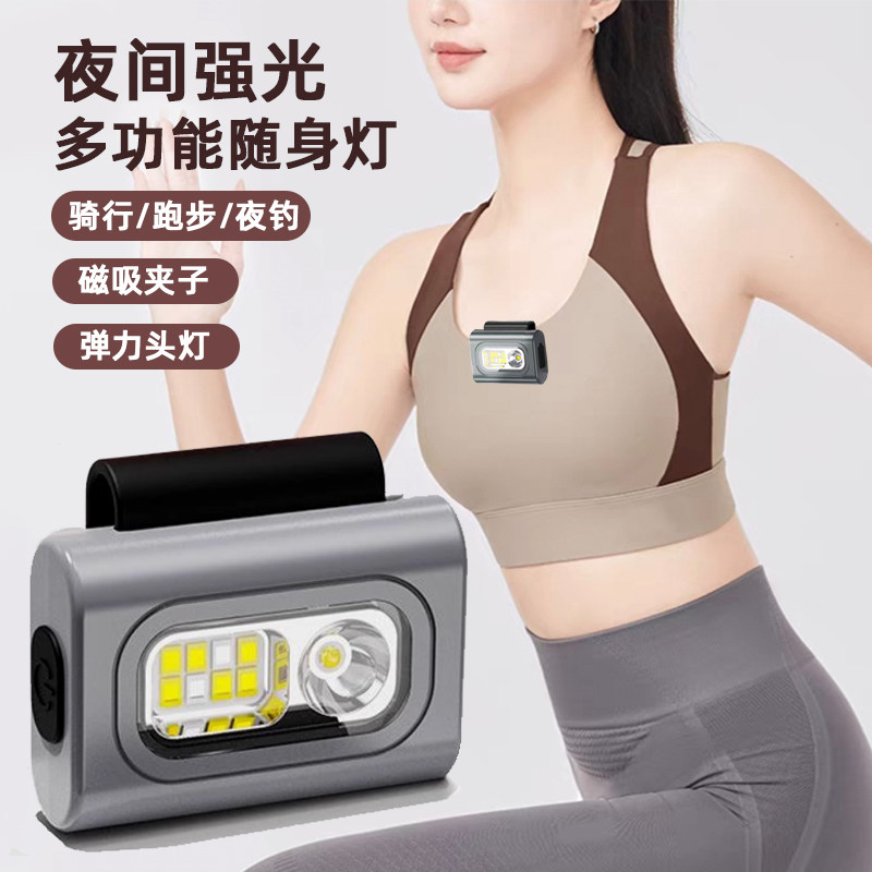 頭燈強光戶外夜跑燈多功能可充電釣魚專用可攜式衣夾燈手電筒跑步燈