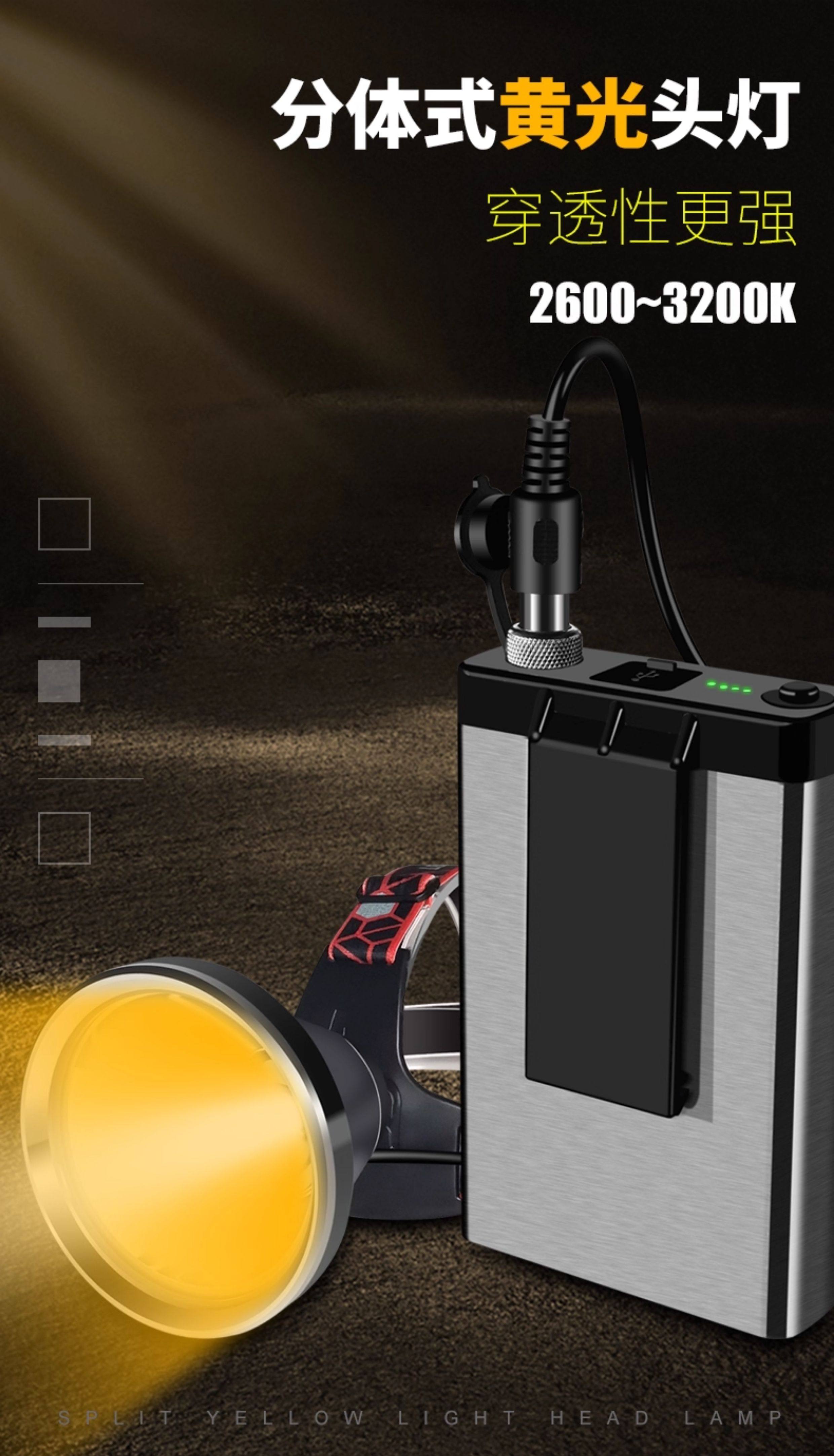 侶字12v頭燈黃光超亮遠射戶外照明強光黃鱔螞蝗金蟬led分體專用燈