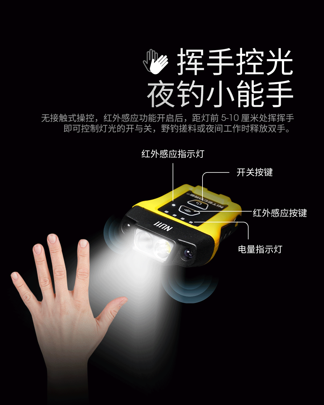 奈特科爾NU11智能感應帽夾燈夜釣戶外頭燈超亮長續航充電燈釣魚燈