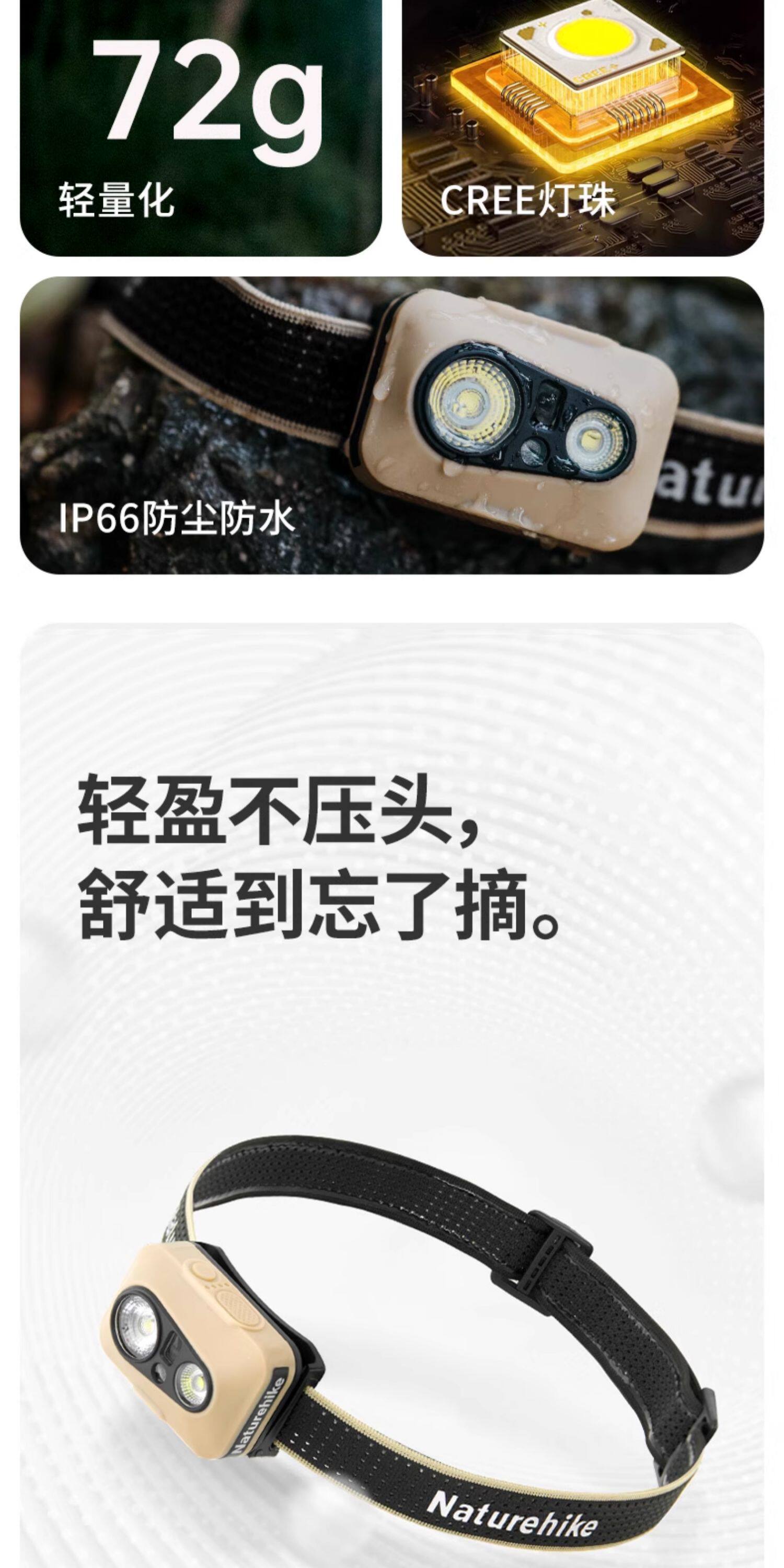 挪客頭燈戶外登山超長續航超輕強光充電鋰電頭戴式照明燈釣魚燈