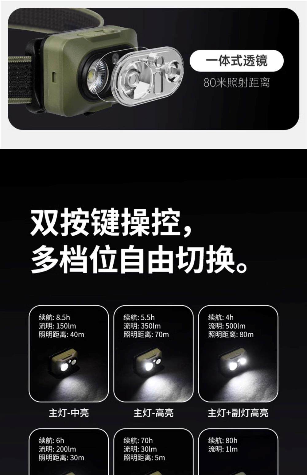 挪客頭燈戶外登山頭戴式強光頭燈超長續航徒步登山防水釣魚越野跑