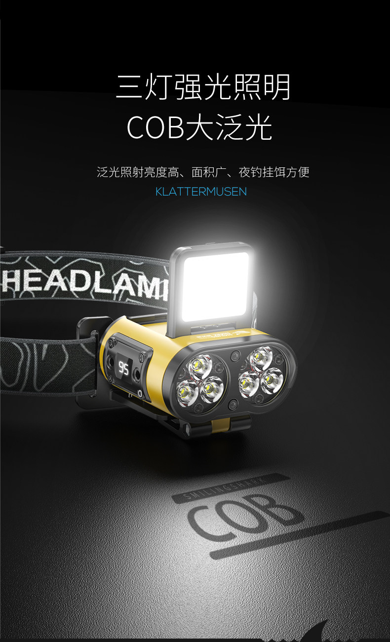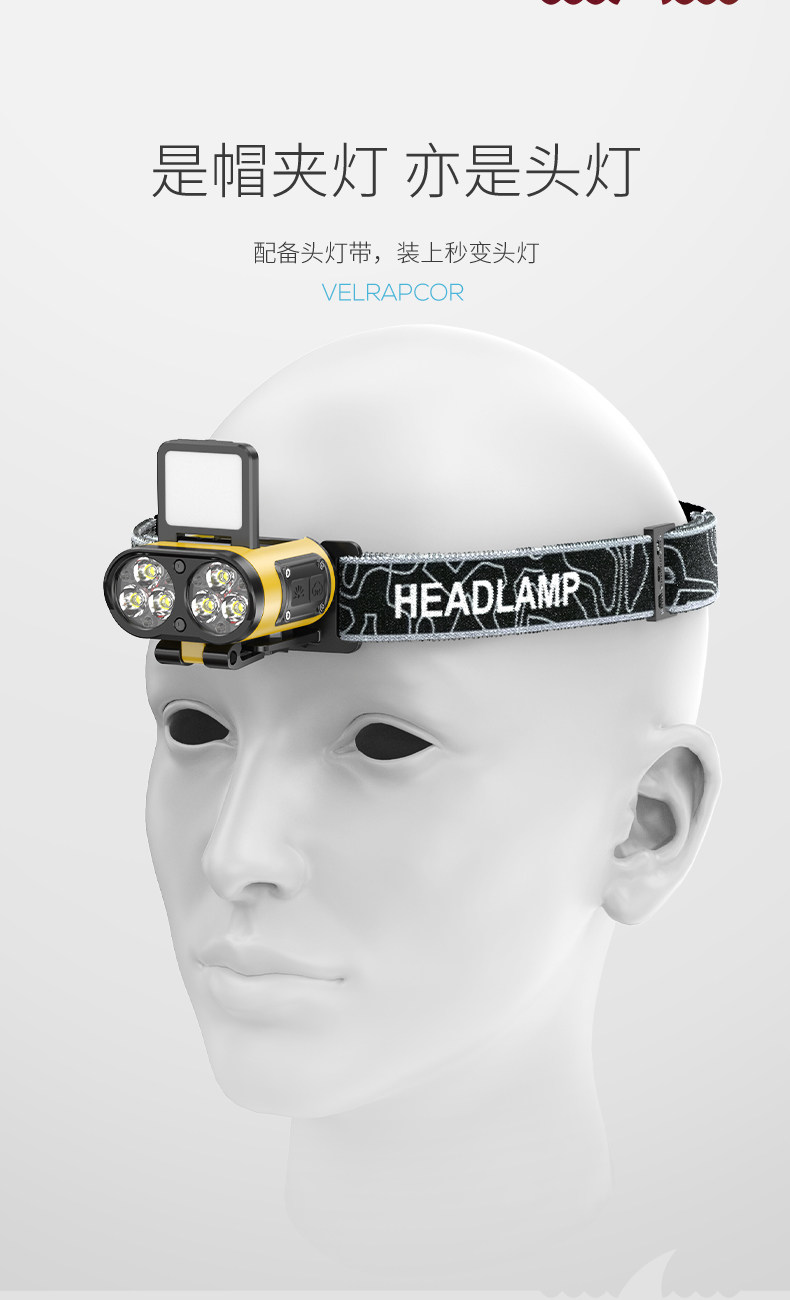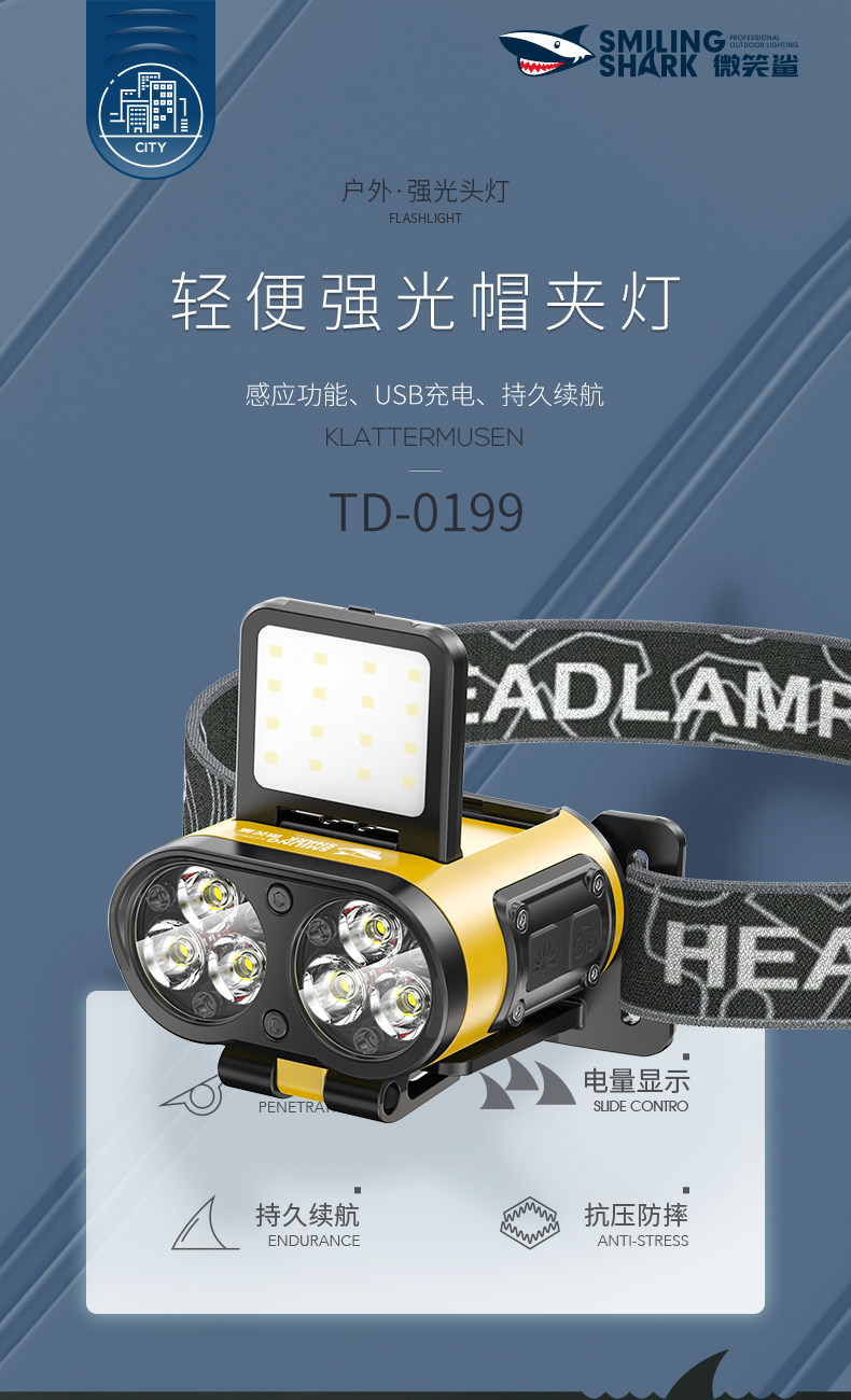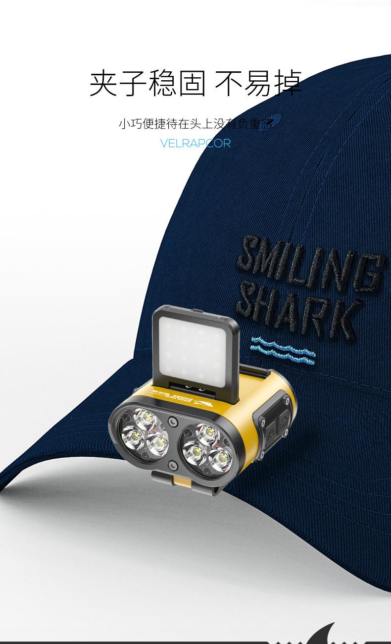 微笑鯊強光頭燈新款感應帽夾燈超亮長續航戶外徒步登山夜釣魚專用