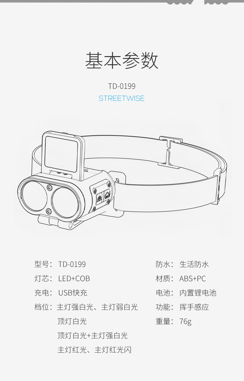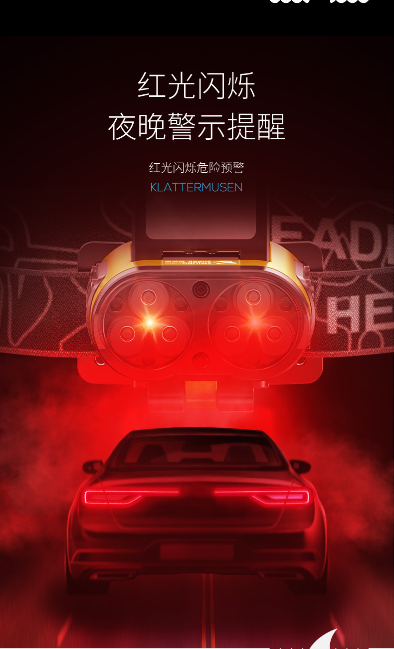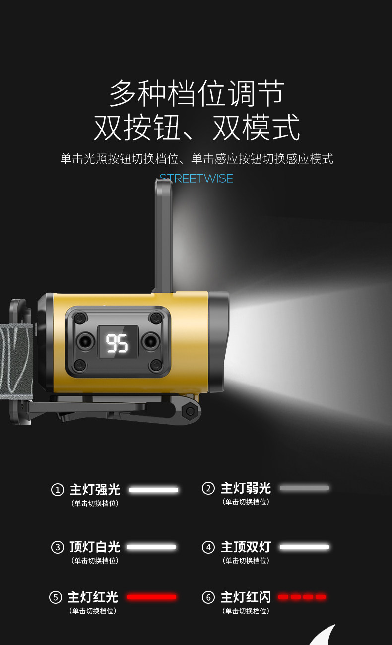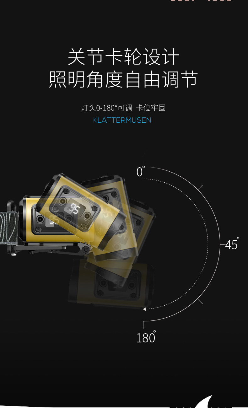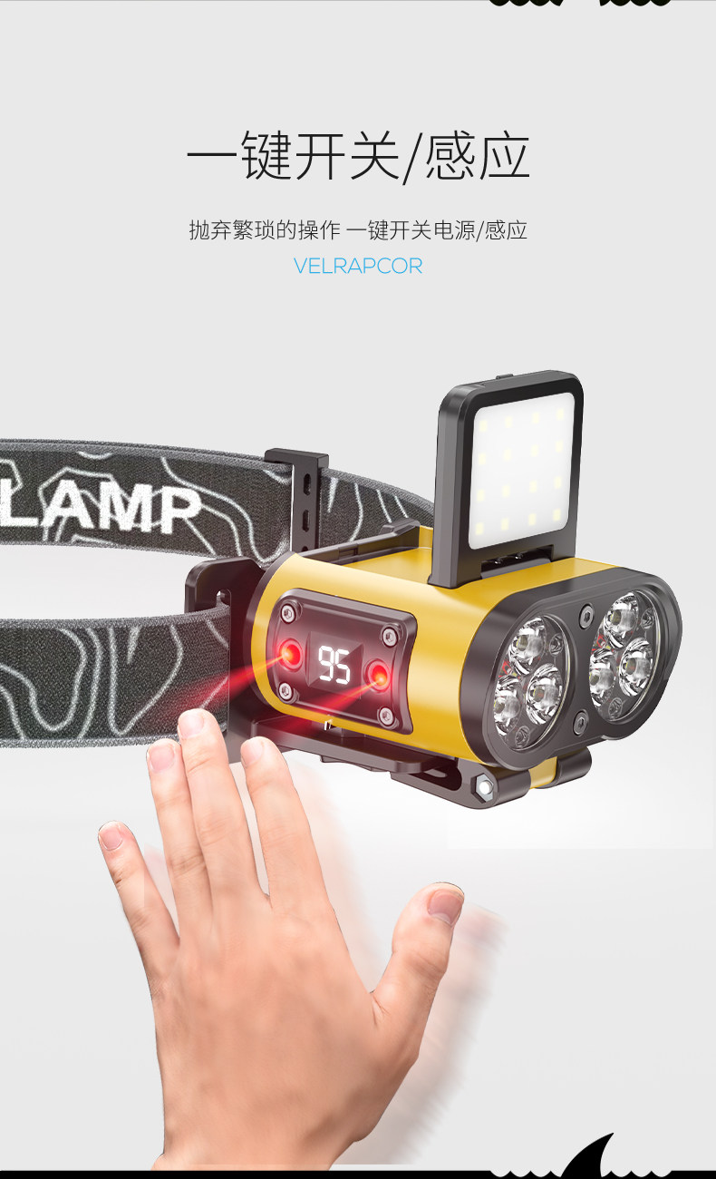 微笑鯊強光頭燈新款感應帽夾燈超亮長續航戶外徒步登山夜釣魚專用