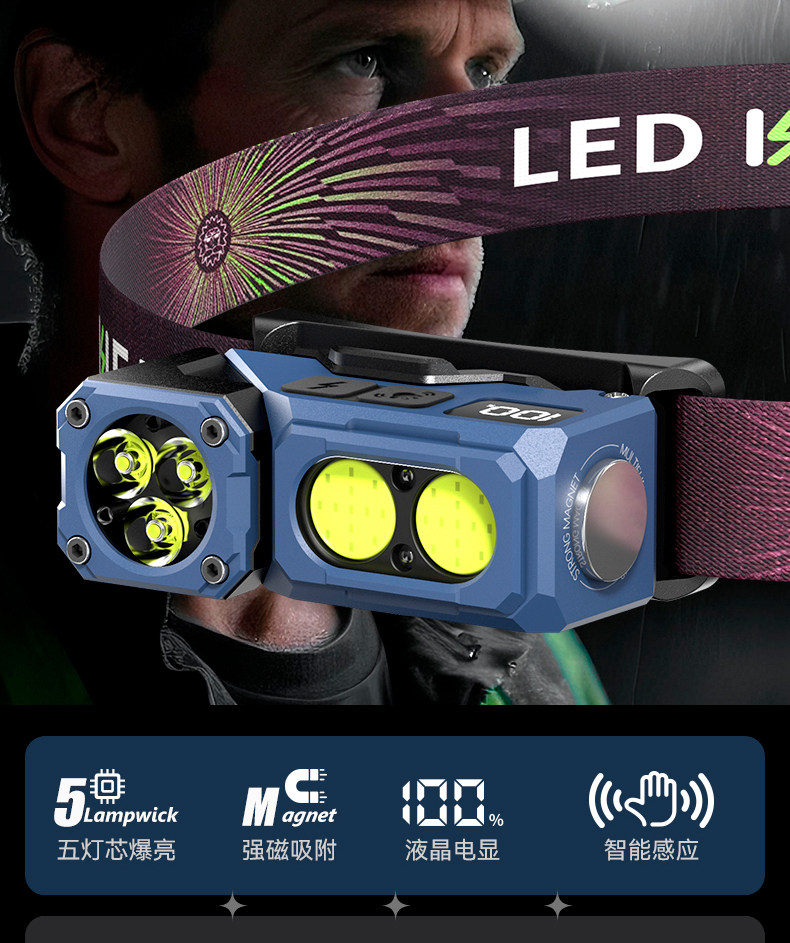 銘久2026新款頭燈強光超亮頭戴式感應夜釣釣魚專用戶外登山照明燈