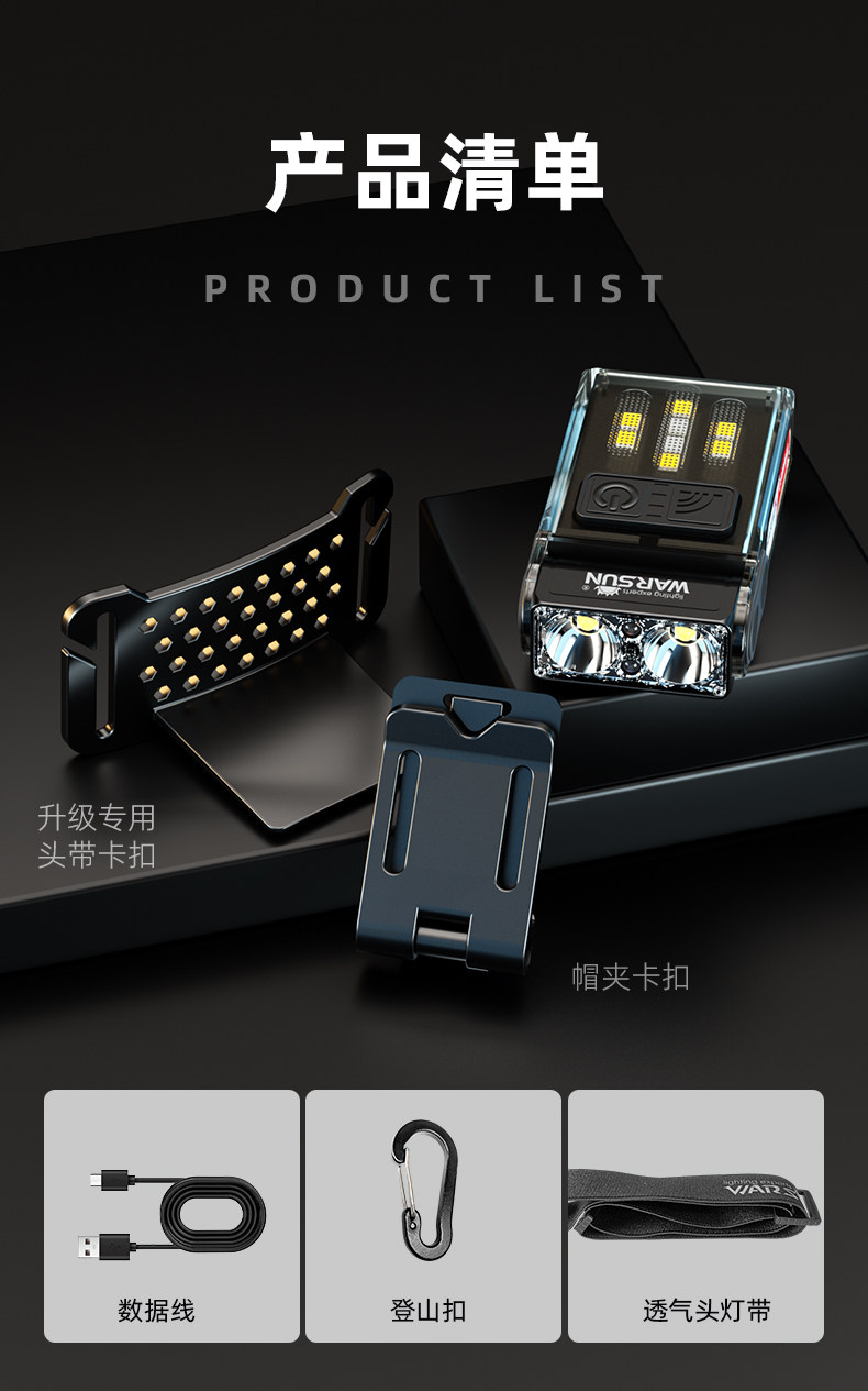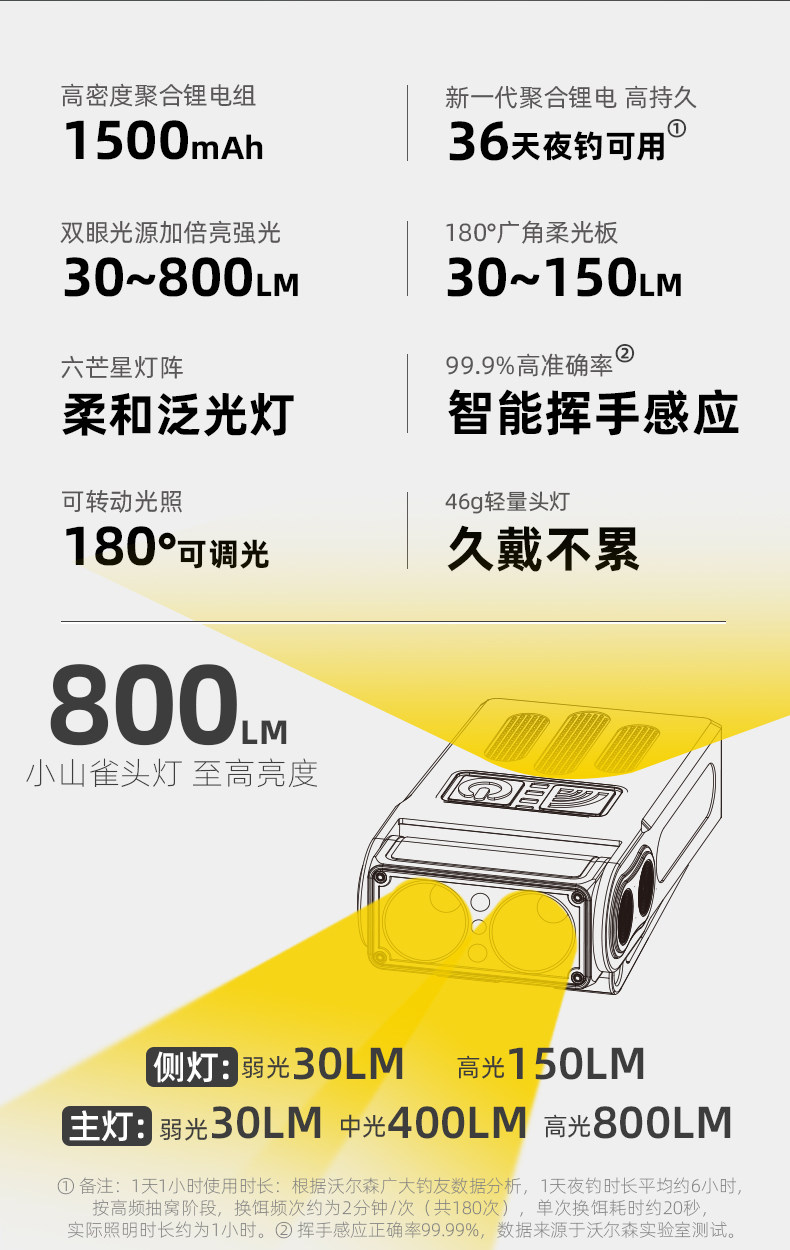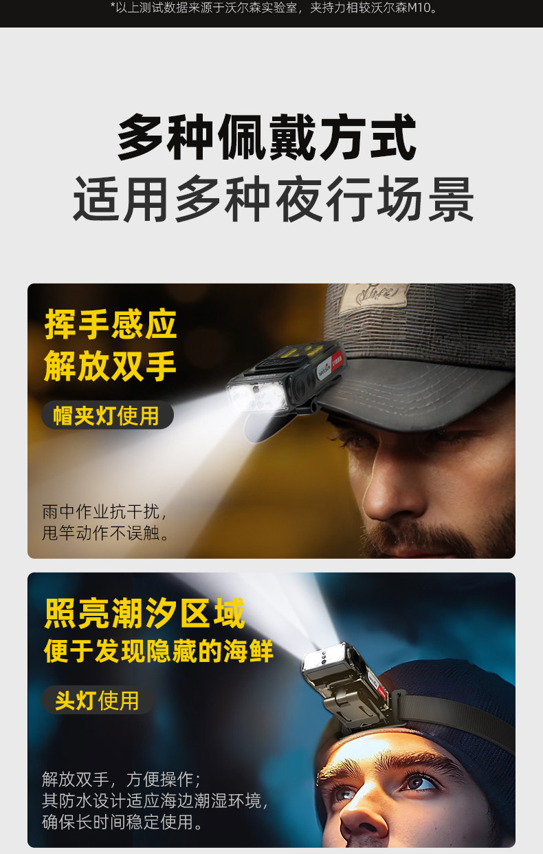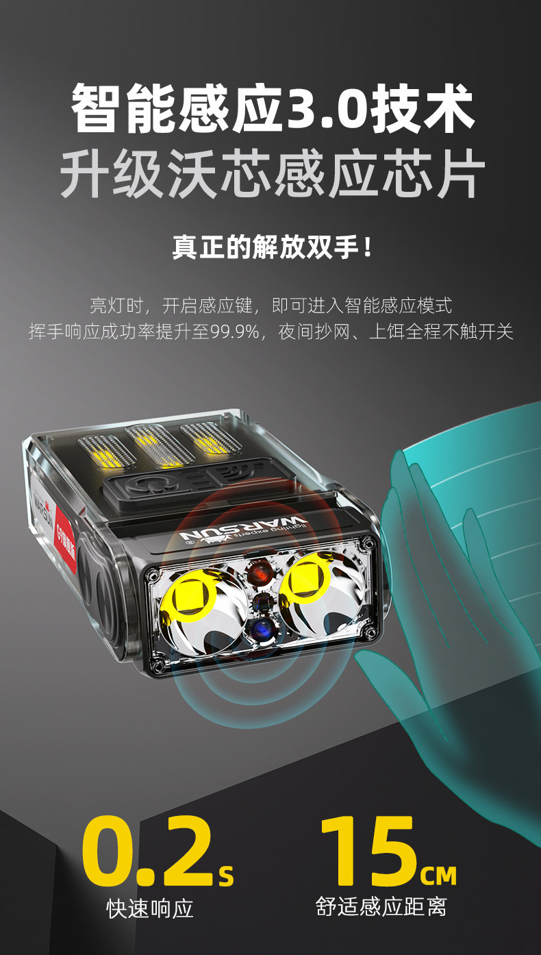 沃爾森小山雀夜釣頭燈強光超亮充電超長續航釣魚專用感應帽夾燈