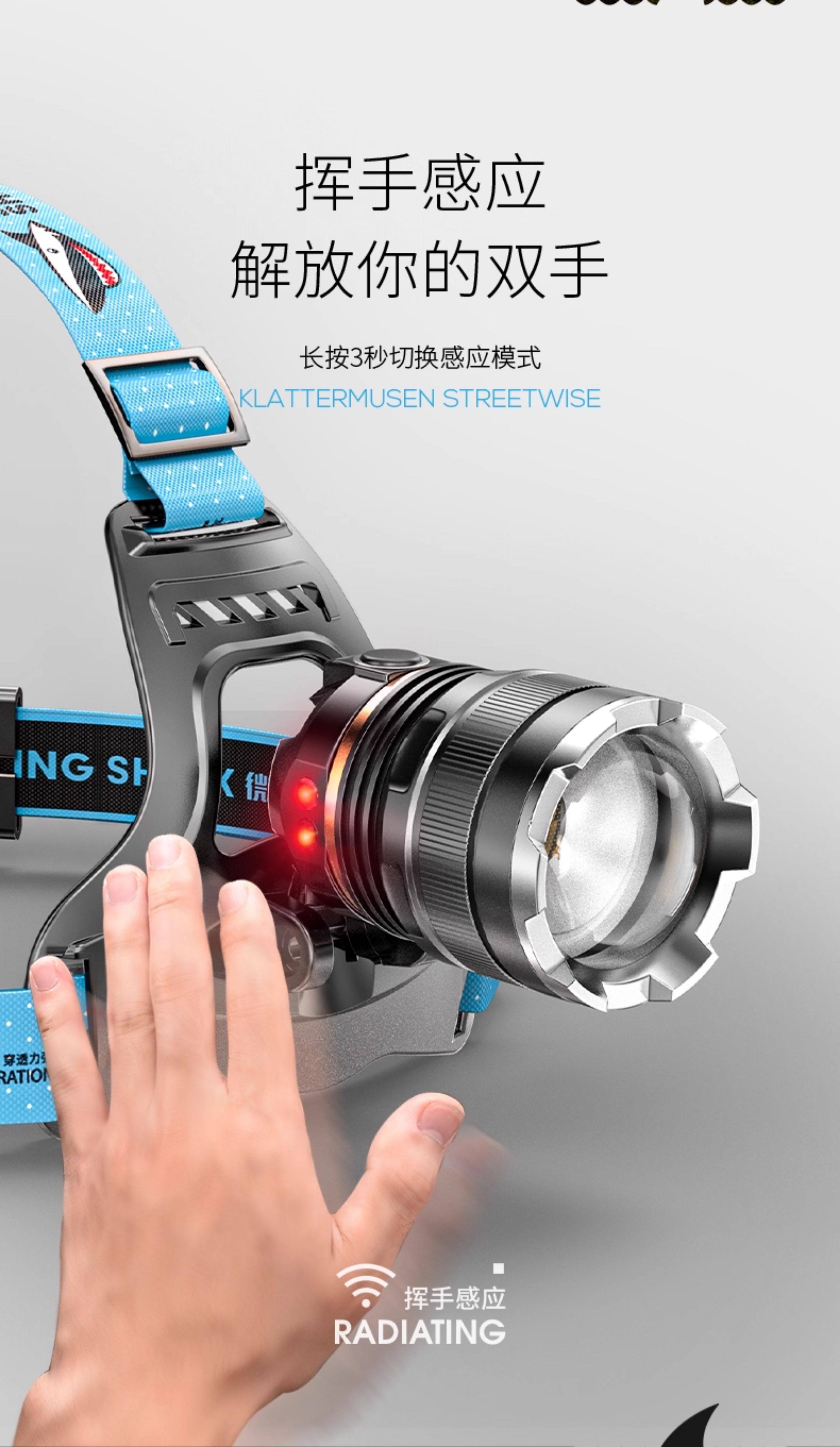 頭燈強光戶外充電釣魚專用頭戴式夜釣感應超亮52000超長續航礦燈