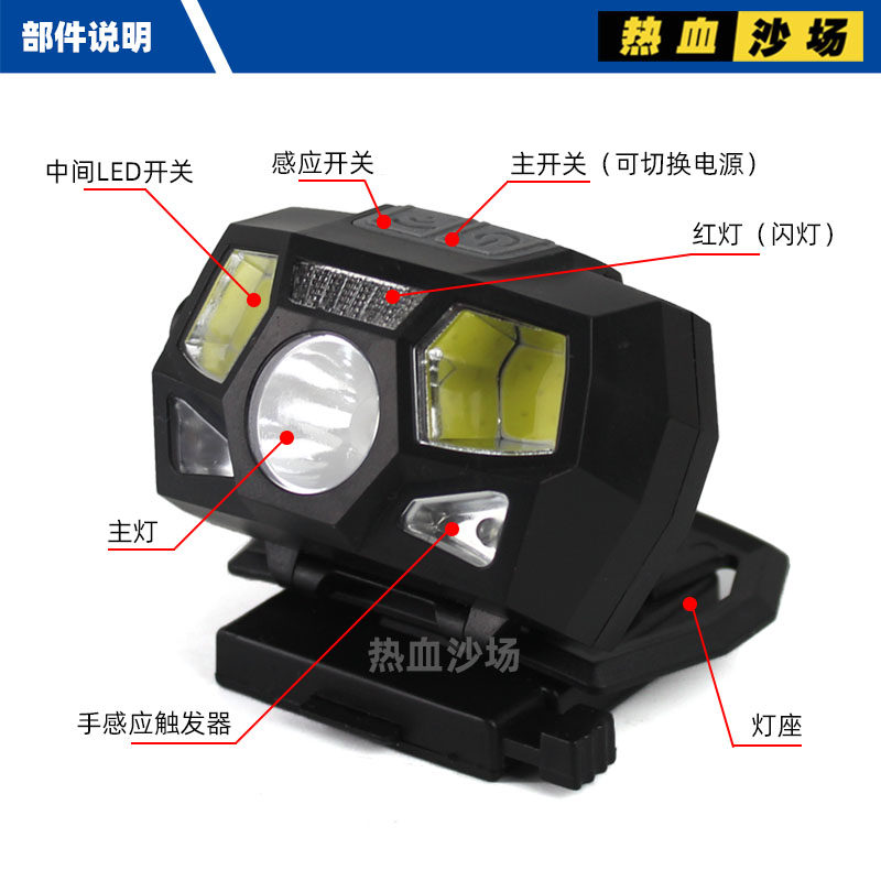 戰術頭盔頭燈 多檔位 XPE+COB強光防水設計揮手感應信號燈USB充電