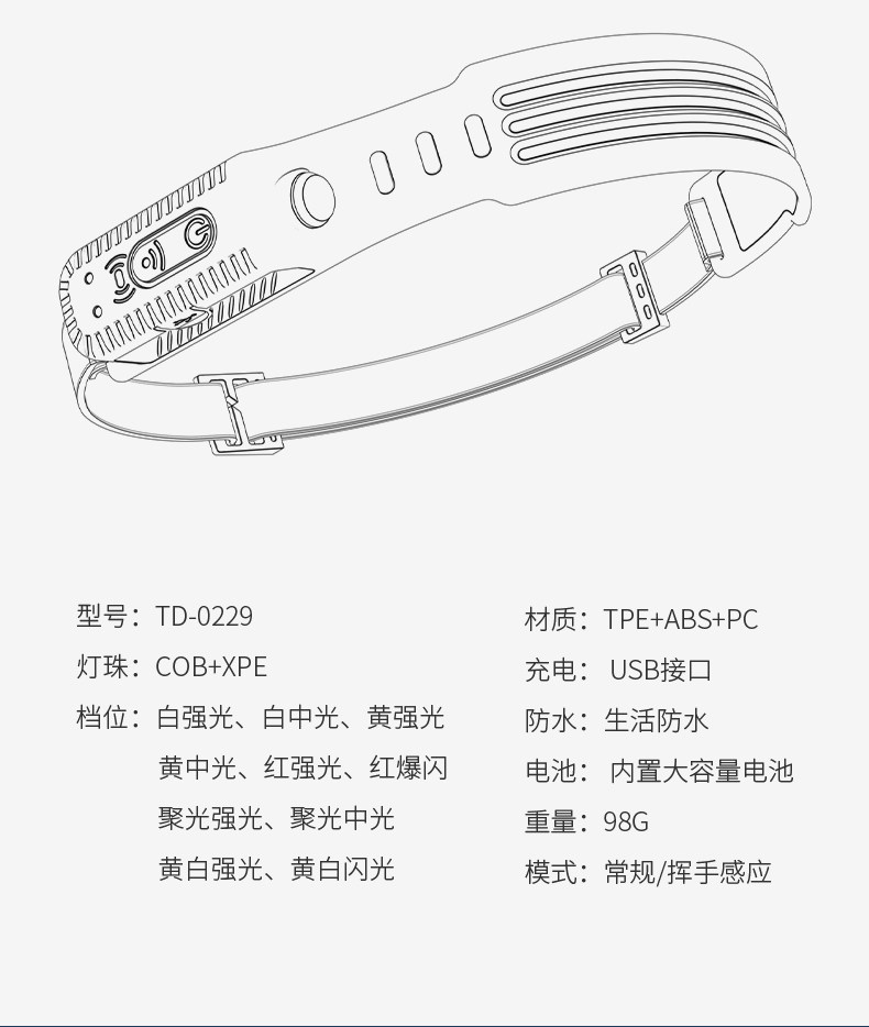新型超亮強光頭燈超輕感應超長續航戶外徒步登山爬山頭戴式照明燈