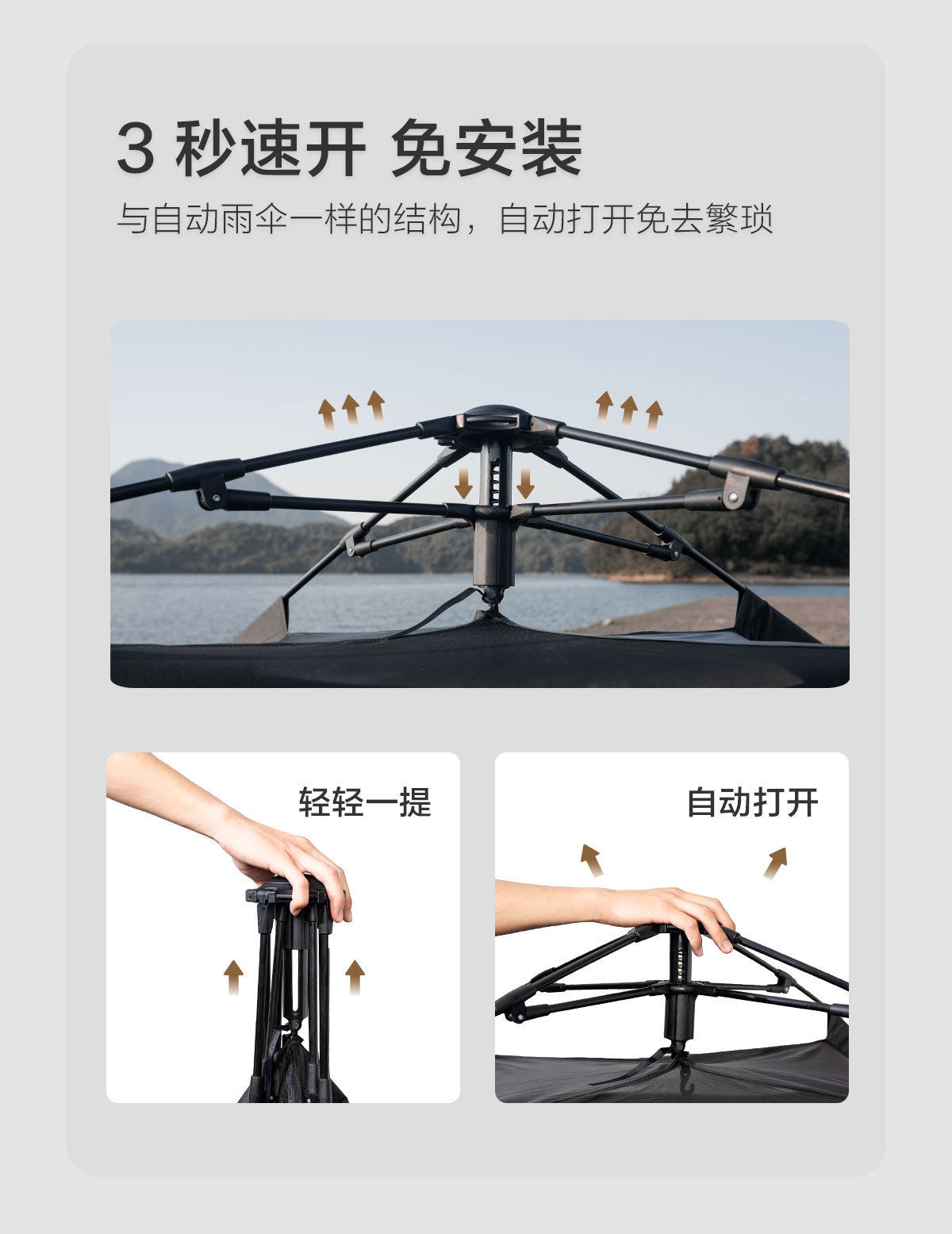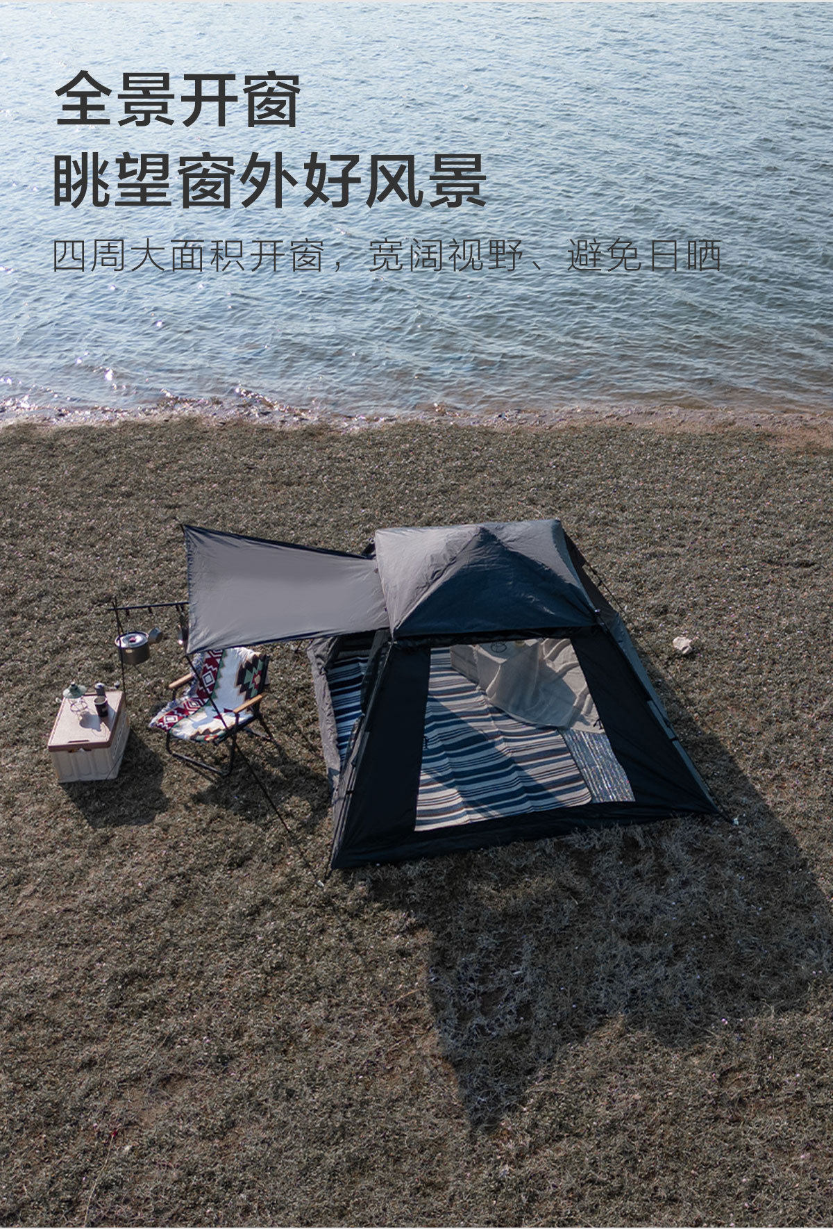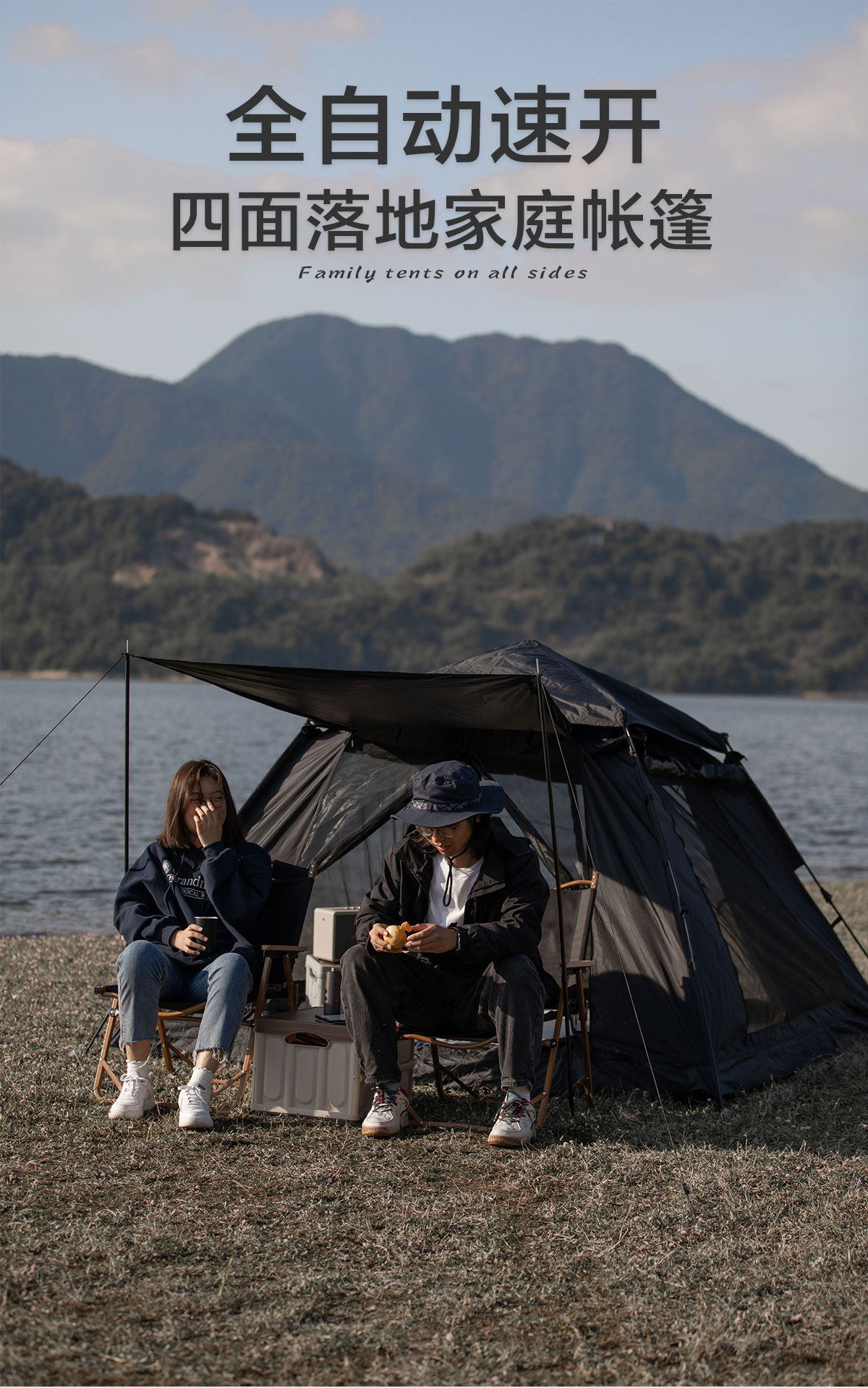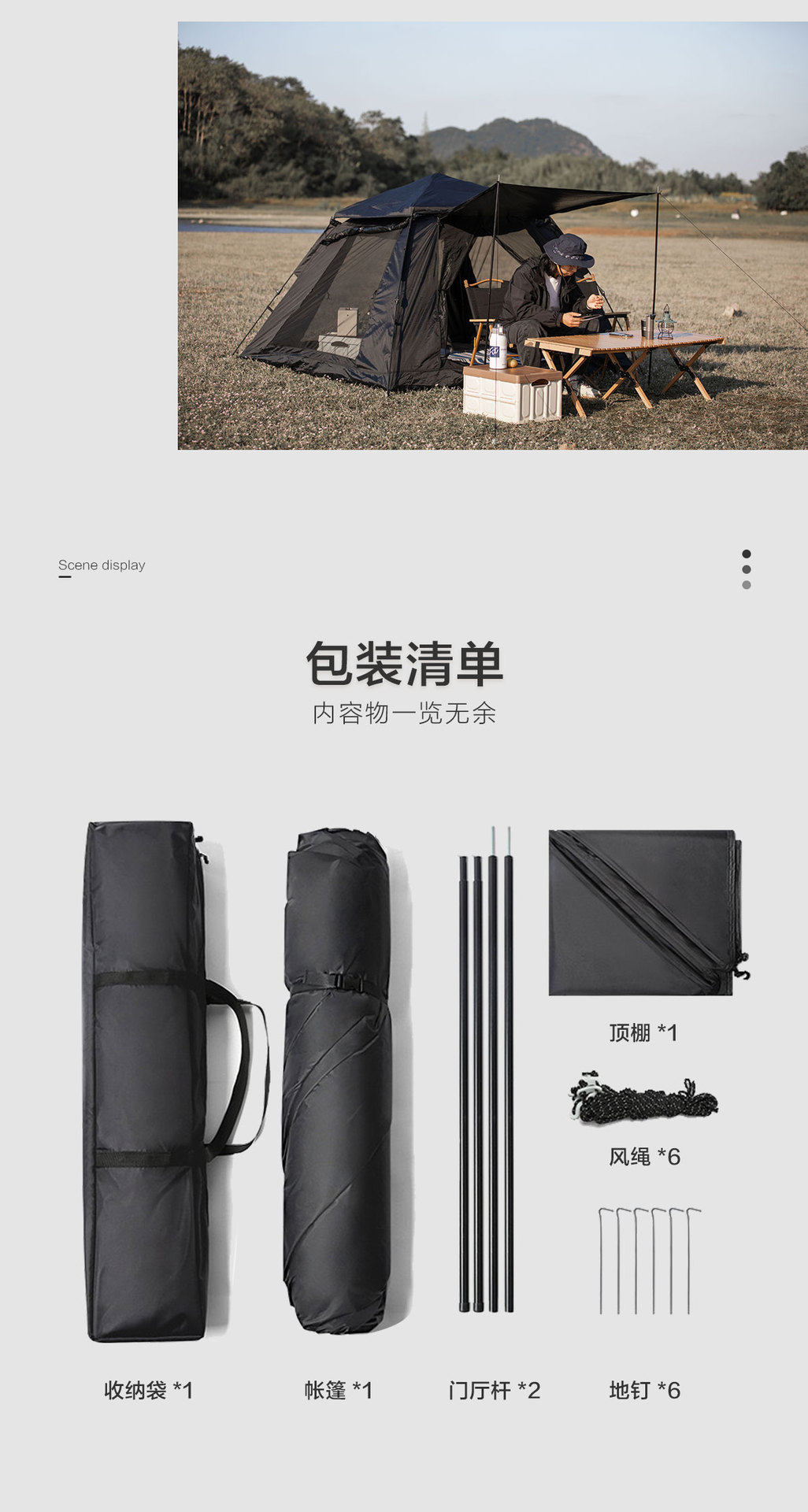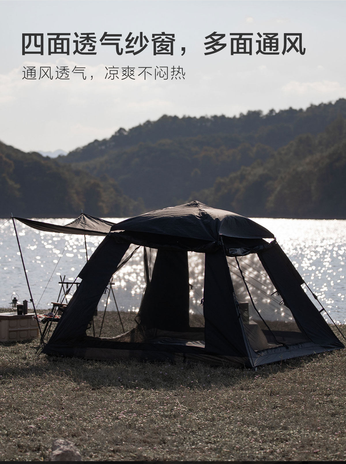戶外露營帳篷天幕黑膠防雨防曬可攜式折疊自動雙三人速開小帽帳