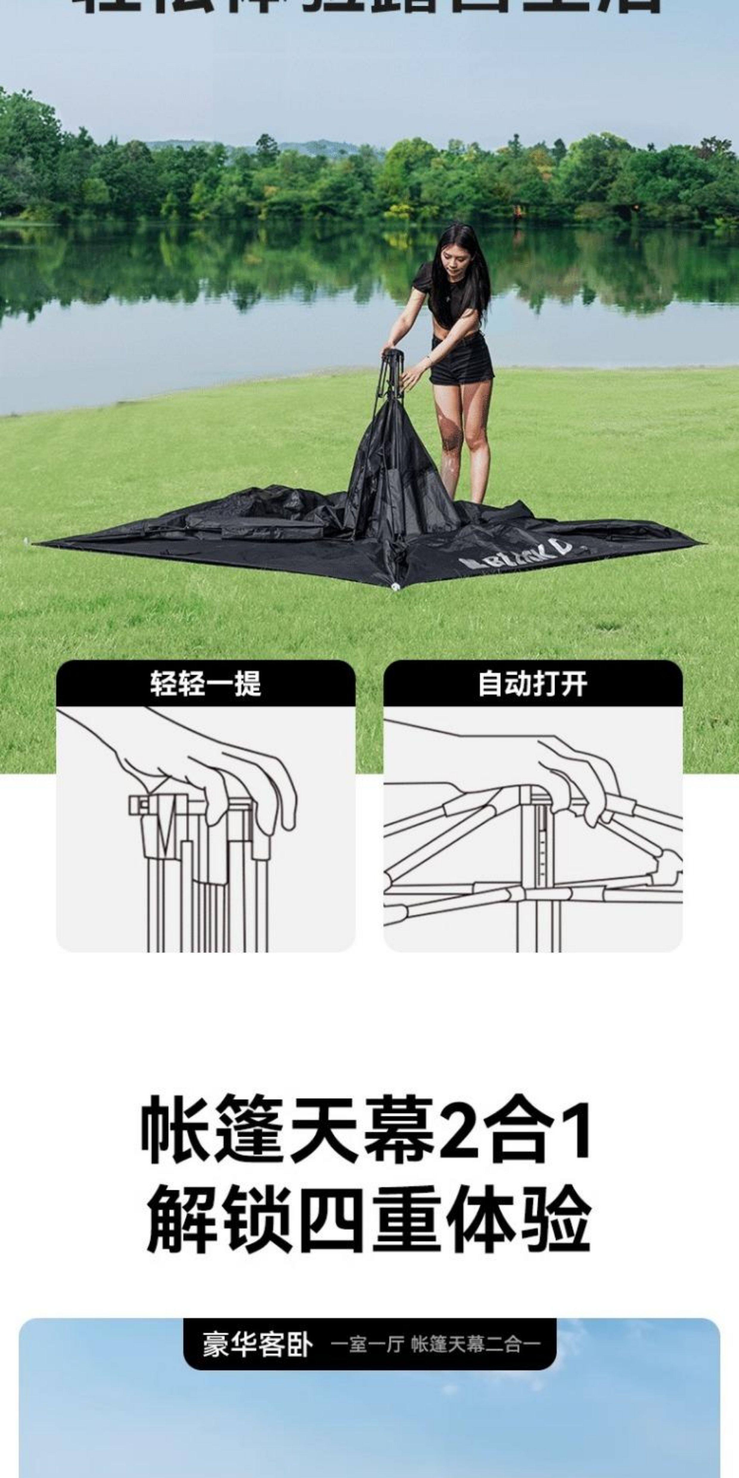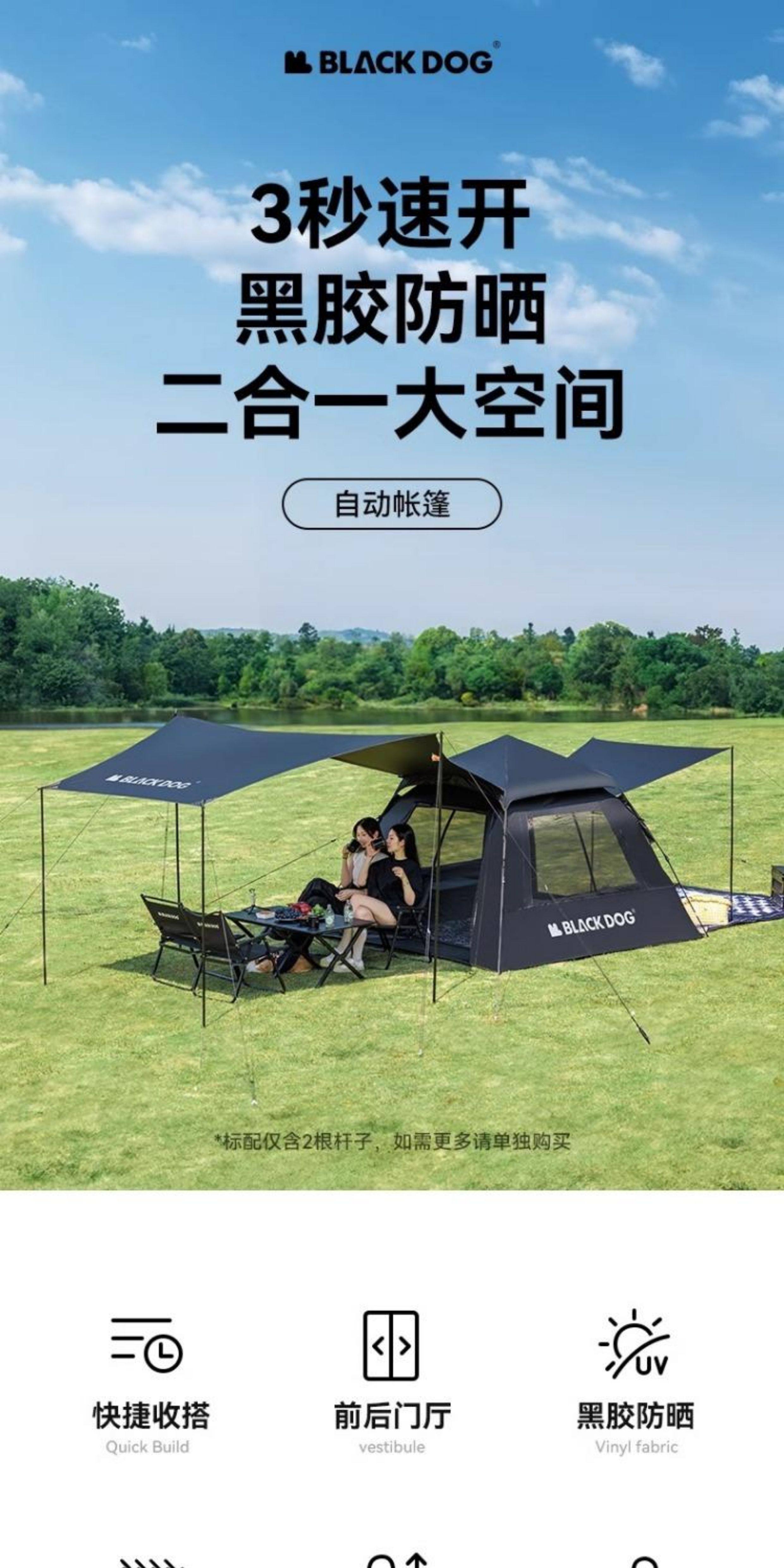 BLACKDOG黑狗露營閒居帳篷戶外野營過夜防雨防曬折疊速開露營裝備