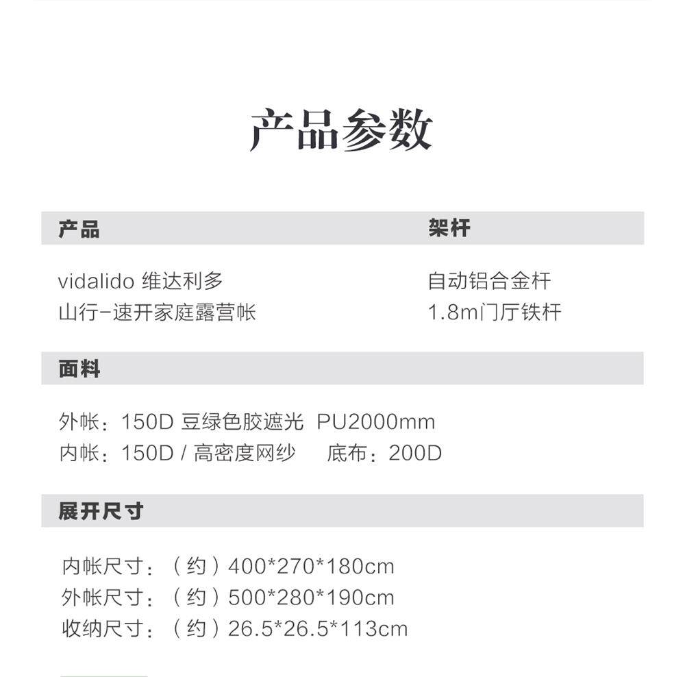 vidalido維達利多山行自動速開帳篷戶外露營一室一廳屋脊帳鋁合金