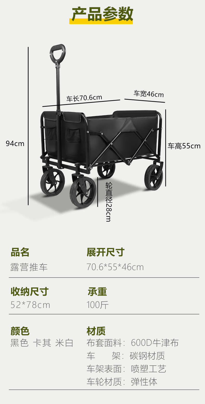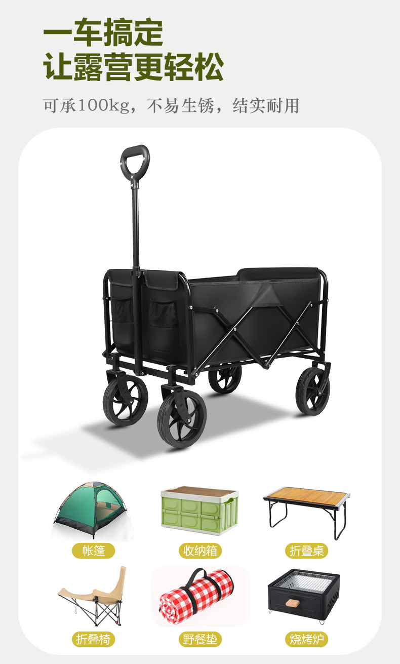 露營推車推拉一體兒童可躺戶外折疊野餐營地推車野營拖車擺攤大型