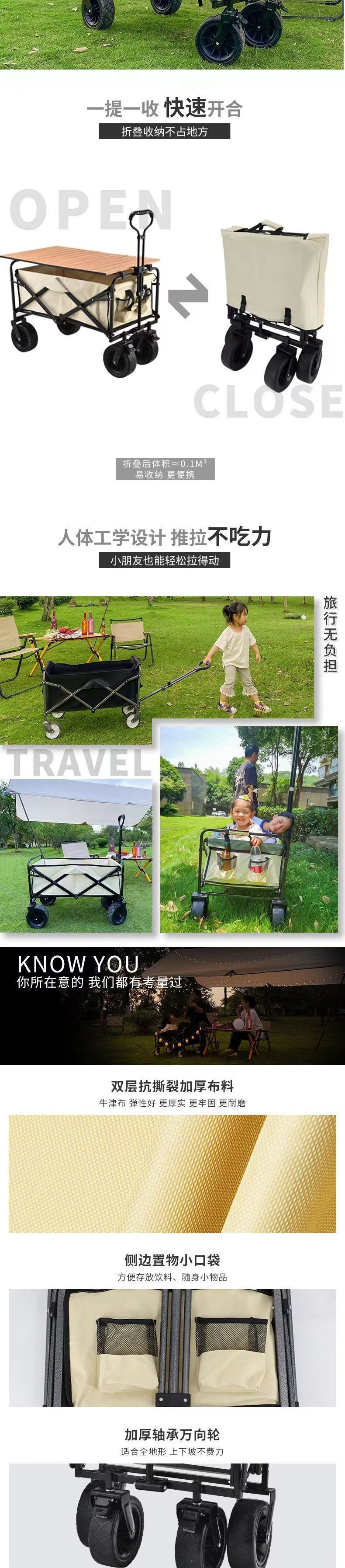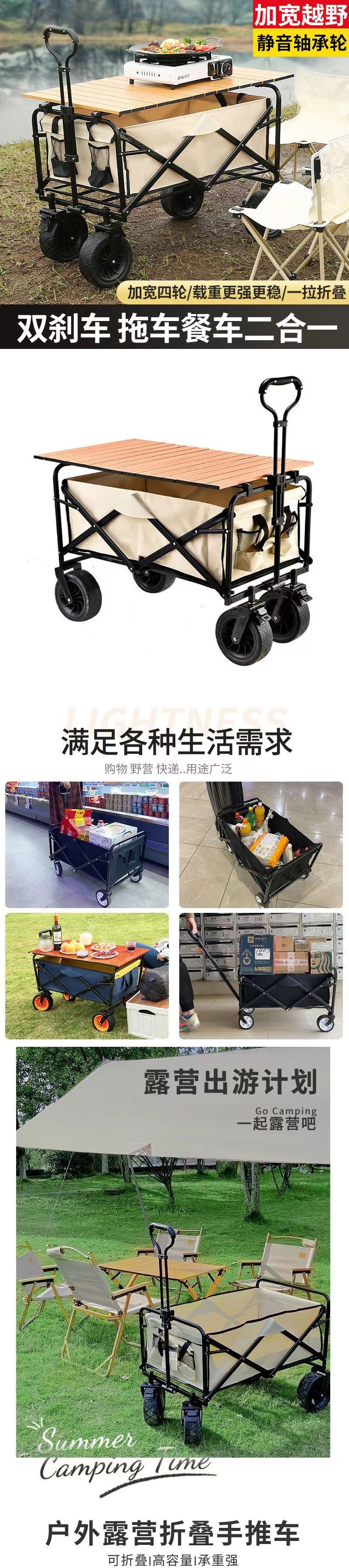 露營車推車營地拖車手拉車擺攤手推拉桿車野營折疊拖車戶外野2024