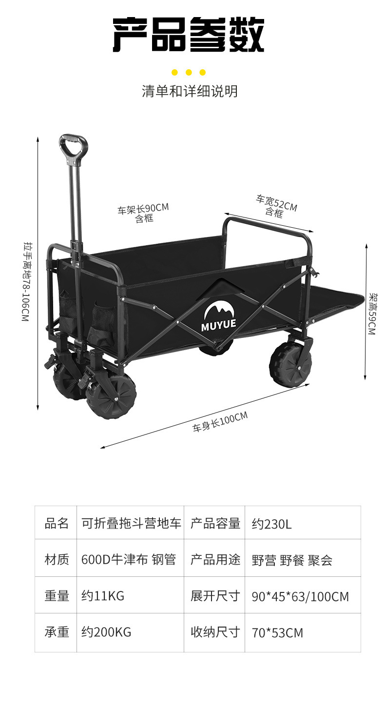 露營推車可折疊戶外手推野餐車可攜式營地拖車拉桿多功能野營擺攤車