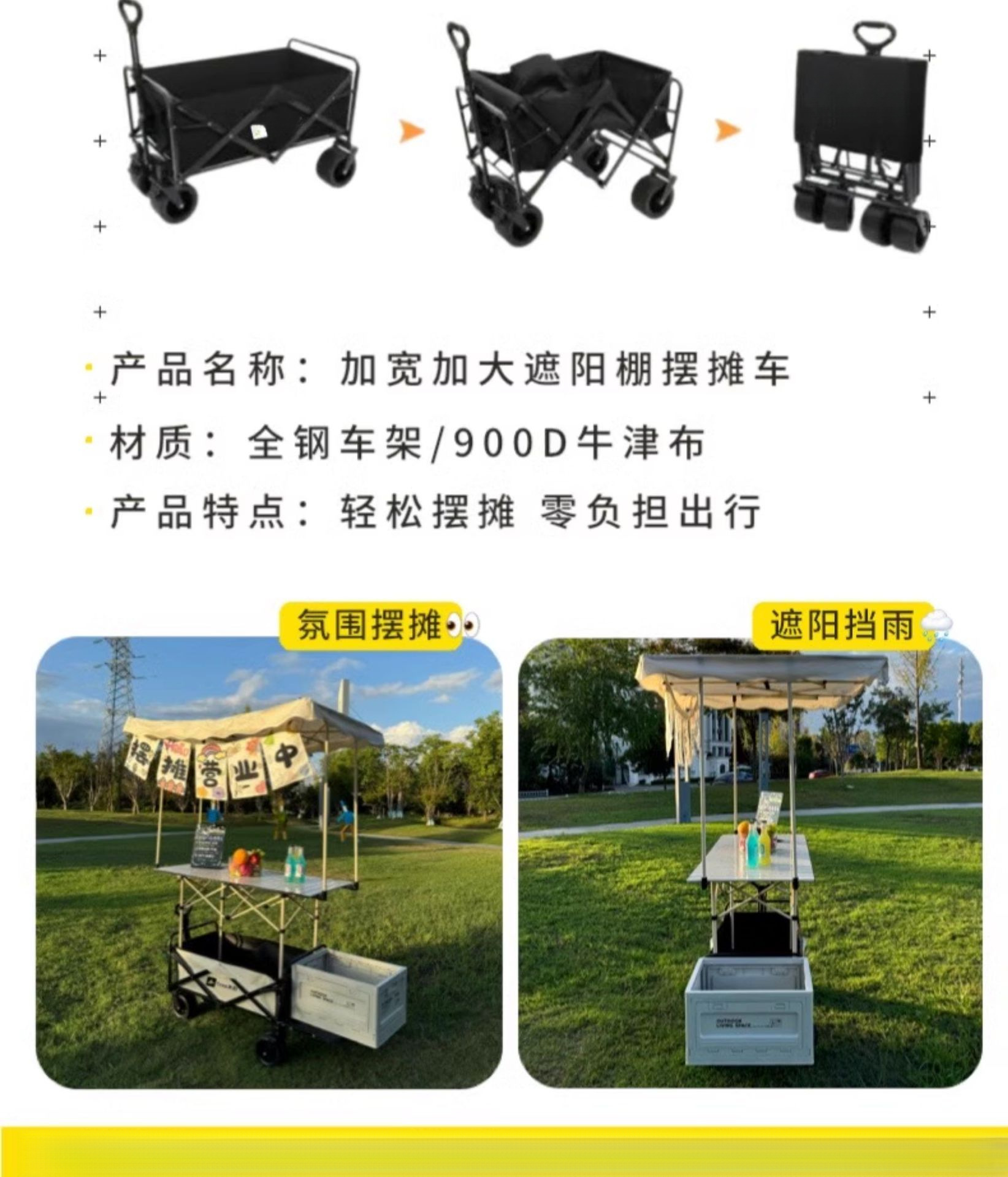 擺攤小推車遮陽棚折疊露營車夜市擺地攤可升降桌子專用出攤擺攤車